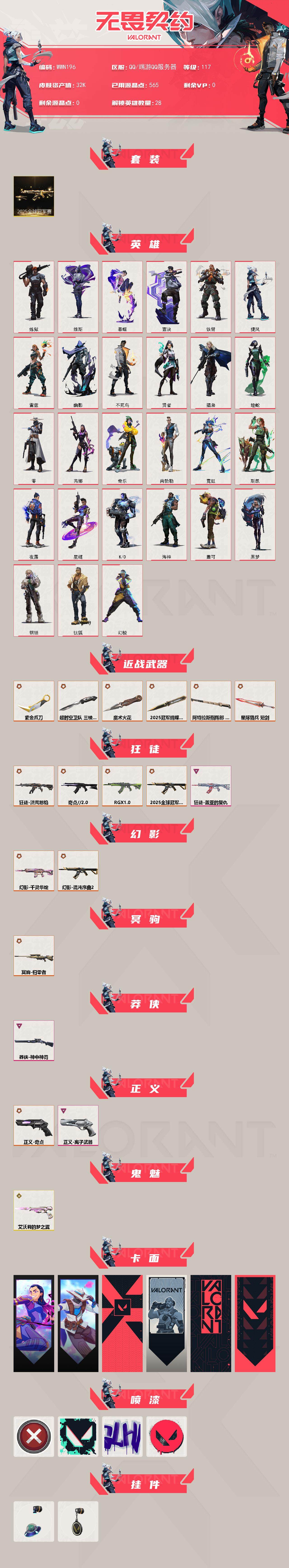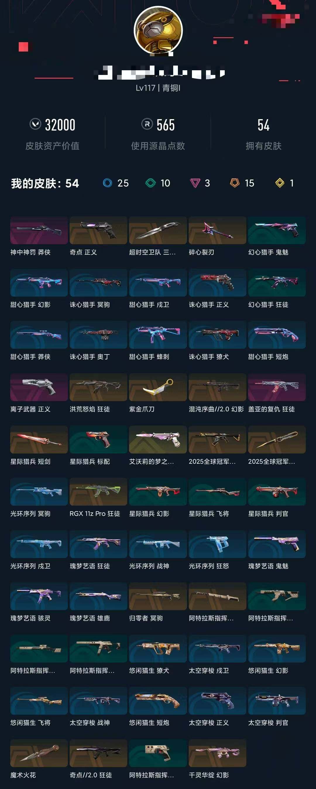 【wwn196】终极15/传奇1/卓越3/皮肤54/等级117/段位:青铜/2025全球冠军赛套装/幻棱/炼狱/维斯/暮蝶/钛狐/壹决/铁臂/捷风/雷兹/幽影/不死鸟/贤者/猎枭/蝰蛇/零/芮娜/奇乐/尚勃勒/霓虹/斯凯/夜露/星礈/k/o/海神/盖可/黑梦/钢锁/近战武器-2025全球冠军赛 蝴蝶刀/近战武器-魔术火花/近战武器-超时空卫队 三棱军刺/紫金爪刀/近战武器-阿特拉斯指