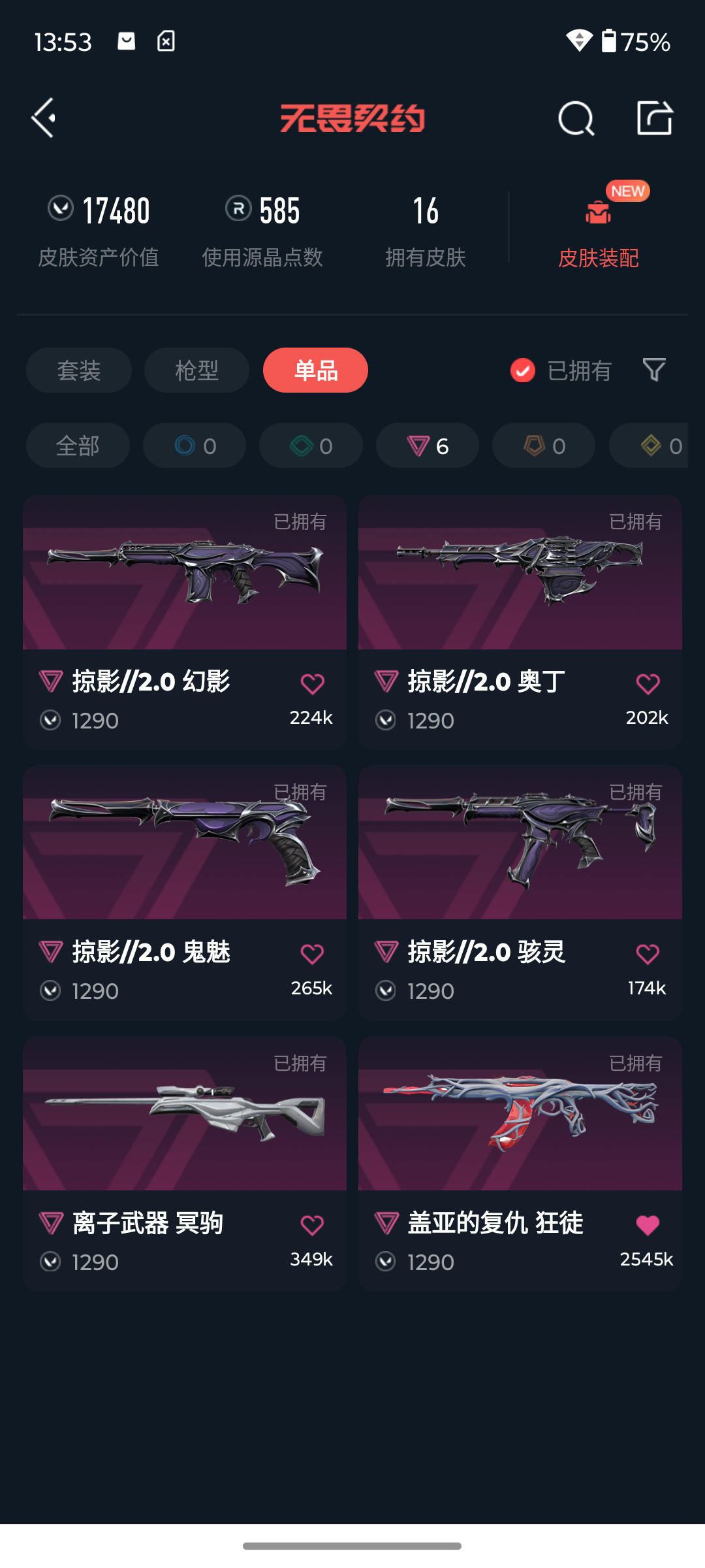 [14473543]b190667 (掠影//2.0套装)无畏契约/103等级/未定级/23英雄/16皮肤/17480资产/已使用r点585/剩余r点0/掠影//2.0-幻影,掠影//2.0-奥丁,掠影//2.0-骇灵,掠影//2.0-鬼魅,影钩,威龙之刃,上古龙炎-狂徒,盖亚的复仇-狂徒,离子武器-冥驹,混沌序曲//2.0-正义