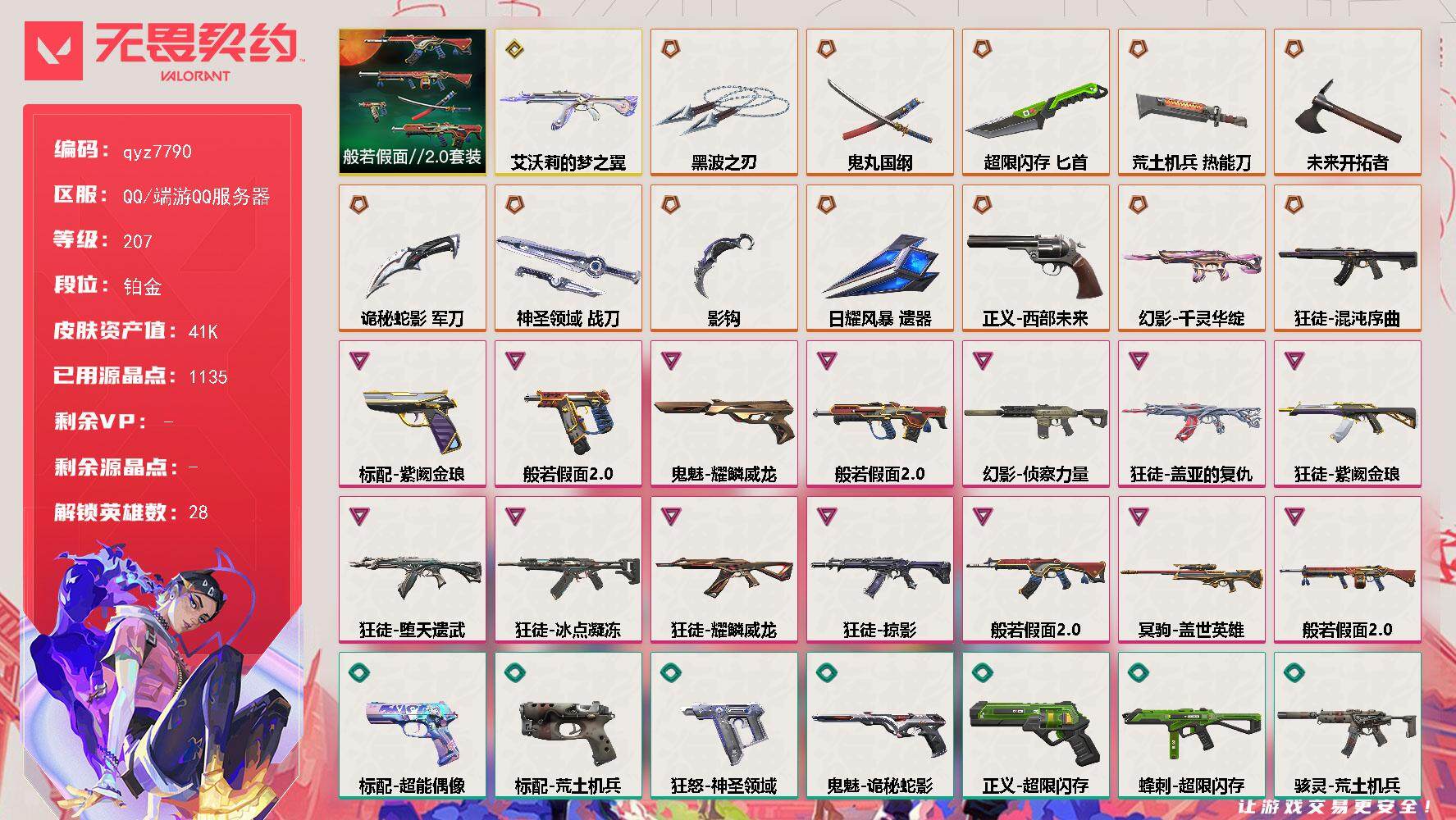 猫猫混沌盖亚紫金掠夺弃王ak/侦查千灵m4/黑波鬼丸都是热门皮铂金小号-qyz7790-套装:-般若假面//20套装-近战武器皮肤:-黑波之刃落英飞旋匕首-超限闪存荒土机兵热能刀鬼丸国纲神圣领域-战刀未来开拓者诡秘蛇影影钩-步呛皮肤:-狂徒-紫阙金琅狂徒-盖亚的复仇幻影-侦察力量狂徒-冰点凝冻狂徒-耀鳞威龙狂徒-堕天遗武幻影-千灵华绽狂徒-艾沃莉的梦之翼狂徒-混沌序曲狂徒-掠影狂徒-般若假面//20獠犬-般若假面//20-佩呛皮肤:-标配-紫阙金琅鬼魅-耀鳞威龙狂怒-般若假面//20正义-西部未来-狙击呛皮肤:-冥驹-盖世英雄-机呛皮肤:-战神-般若假面//20-亮点:-【qyz7790】【套装】:般若假面//20套装【英雄】:幻棱,炼狱,维斯,暮蝶,钛狐,壹决,铁臂,捷风,雷兹,幽影,不死鸟,贤者,猎枭,蝰蛇,零,芮娜,奇乐,尚勃勒,霓虹,斯凯,夜露,星礈,k/o,海神,盖可,黑梦,钢锁【近战-武器】:近战武器-影钩,近战武器-黑波之刃,近战武器-落英飞旋,近战武器-鬼丸国纲,近战武器-未来开拓者,近战武器-超限闪存-匕首,近战武器-荒土机兵-热能刀,近战武器-诡秘蛇影-军刀,近战武器-神圣领域-战刀,近战武器-日耀风暴-遗器【狂徒】:狂徒-艾沃莉的梦之翼,狂徒-混沌序曲,狂徒-般若假面//20,狂徒-冰点凝冻,狂徒-堕天遗武,狂徒-掠影,狂徒-盖亚的复仇,狂徒-耀鳞威龙,狂徒-紫阙金琅,狂徒-荒土机兵,狂徒-诡秘蛇影【幻影】:幻影-千灵华绽,幻影-侦察力量,幻影-超限闪存,幻影-神圣领域,幻影-纳米打击,幻影-末日之翼【戍卫】:戍卫-浮光跃金,戍卫-逆冲蛮牛,戍卫-月球哨兵,戍卫-折光棱晶【獠犬】:獠犬-般若假面//20,獠犬-神圣领域,獠犬-模拟赫兹,獠犬-逆冲蛮牛【冥驹】:冥驹-盖世英雄,冥驹-荒土机兵,冥驹-模拟赫兹,冥驹-星云暗涌【飞将】:飞将-末日之翼【莽侠】:莽侠-超限闪存,莽侠-诡秘蛇影,莽侠-月球哨兵【战神】:战神-般若假面//20,战神-神圣领域,战神-浮光跃金【奥丁】:奥丁-纳米打击,奥丁-末日之翼【判官】:判官-诡秘蛇影,判官-纳米打击x【雄鹿】:雄鹿-模拟赫兹,雄鹿-逆冲蛮牛,雄鹿-月球哨兵【骇灵】:骇灵-荒土机兵,骇灵-浮光跃金,骇灵-星云暗涌【蜂刺】:蜂