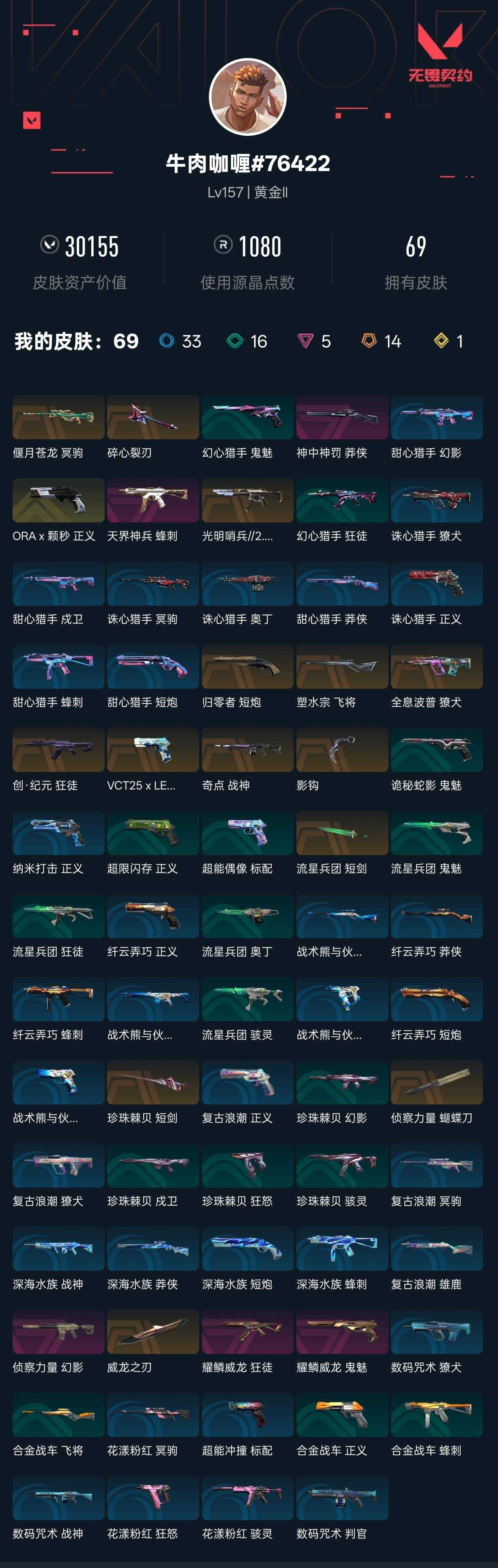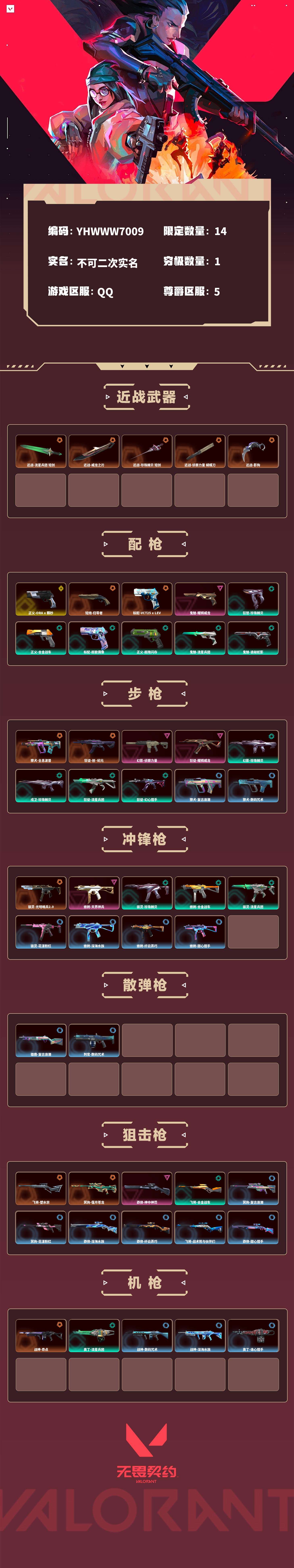 【无畏契约】【yhwww7009】等级:157,已用无畏点30155,已用源晶点1080,橙皮:骇灵-光明哨兵2.0|短炮-归零者|飞将-塑水宗|近战-流星兵团 短剑|近战-威龙之刃|近战-珍珠棘贝 短剑|獠犬-全息波普|战神-奇点|冥驹-偃月苍龙|近战-侦察力量 蝴蝶刀|狂徒-创·纪元|标配-vct25 x lev|近战-影钩__紫皮:蜂刺-天界神兵|鬼魅-耀鳞威龙|幻影-侦察力量|狂徒-耀鳞威龙|莽侠-神中神罚__绿皮:骇灵-珍珠棘贝|幻影-珍珠棘贝|狂怒-珍珠棘贝|戍卫-珍珠棘贝|蜂刺-合金战车|正义-合金战车|飞将-合金战车|标配-超能偶像|正义-超限闪存|骇灵-流星兵团|鬼魅-流星兵团|狂徒-流星兵团|奥丁-流星兵团|鬼魅-诡秘蛇影|狂徒-幻心猎手|鬼魅-幻心猎手__蓝皮:獠犬-复古浪潮|冥驹-复古浪潮|雄鹿-复古浪潮|正义-复古浪潮|标配-超能冲撞|狂怒-花漾粉红|骇灵-花漾粉红|冥驹-花漾粉红|战神-数码咒术|獠犬-数码咒术|判官-数码咒术|正义-纳米打击|战神-深海水族|短炮-深海水族|蜂刺-深海水族|莽侠-深海水族|莽侠-纤云弄巧|正义-纤云弄巧|短炮-纤云弄巧|蜂刺-纤云弄巧|飞将-战术熊与伙伴们|狂怒-战术熊与伙伴们|戍卫-战术熊与伙伴们|标配-战术熊与伙伴们|蜂刺-甜心猎手|短炮-甜心猎手|莽侠-甜心猎手|幻影-甜心猎手|戍卫-甜心猎手|正义-诛心猎手|冥驹-诛心猎手|獠犬-诛心猎手|奥丁-诛心猎手__段位:黄金__英雄:尚勃勒|维斯|黑梦|斯凯|暮蝶|盖可|霓虹|壹决|星礈|k/o|幽影|夜露|钢锁|海神|奇乐|炼狱|铁臂|贤者|猎枭|钛狐|芮娜|零|捷风|蝰蛇|不死鸟|幻棱|雷兹|禁灭__金皮:正义-a x 颗秒