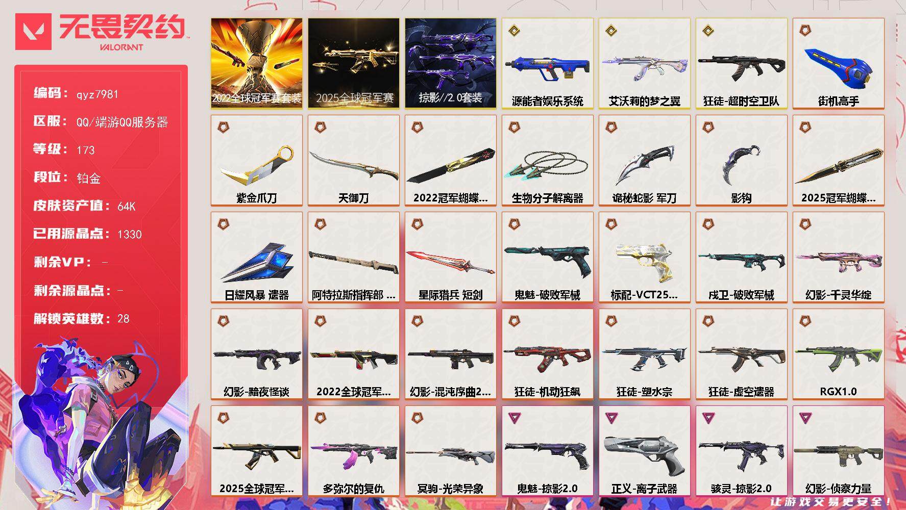 紫金爪刀-塑水宗狂徒-黯夜怪谈幻影-猫猫狂徒-盖亚的复仇狂徒-光荣异象冥驹-生物分子解离器-虚空遗器狂徒-22冠军套-破败军械鬼魅-机动狂飙狂徒-千灵幻影-破败军械戍卫-掠影//20套装-qyz7981-亮点皮肤:-幻影-2022全球冠军赛蝴蝶刀-2022全球冠军赛-套装:-2022全球冠军赛掠影20套装2025全球冠军赛-近战武器皮肤:-紫金爪刀天御刀街机高手生物分子解离器诡秘蛇影影钩2025全球冠军赛-蝴蝶刀-步呛皮肤:-狂徒-紫阙金琅狂徒-盖亚的复仇幻影-侦察力量狂徒-机动狂飙戍卫-破败军械狂徒-塑水宗狂徒-耀鳞威龙幻影-千灵华绽獠犬-源能者娱乐系统狂徒-艾沃莉的梦之翼幻影-黯夜怪谈狂徒-虚空遗器狂徒-rgx-11z-pro狂徒-超时空卫队幻影-掠影202025全球冠军赛-狂徒幻影-混沌序曲20-佩呛皮肤:-鬼魅-破败军械正义-离子武器标配-vct25xth鬼魅-掠影20-狙击呛皮肤:-冥驹-光荣异象-冲锋呛皮肤:-骇灵-掠影20-机呛皮肤:-奥丁-掠影20-亮点:-【qyz7981】【套装】:2025全球冠军赛套装,2022全球冠军赛套装,掠影//20套装【英雄】:幻棱,炼狱,维斯,暮蝶,钛狐,壹决,铁臂,捷风,雷兹,幽影,不死鸟,贤者,猎枭,蝰蛇,零,芮娜,奇乐,尚勃勒,霓虹,斯凯,夜露,星礈,k/o,海神,盖可,黑梦,钢锁【近战-武器】:近战武器-2025全球冠军赛-蝴蝶刀,近战武器-2022全球冠军赛-蝴蝶刀,近战武器-影钩,近战武器-紫金爪刀,近战武器-街机高手,近战武器-生物分子解离器,近战武器-天御刀,近战武器-诡秘蛇影-军刀,近战武器-日耀风暴-遗器,近战武器-阿特拉斯指挥部-甩棍,近战武器-星际猎兵-短剑【狂徒】:狂徒-艾沃莉的梦之翼,狂徒-超时空卫队,狂徒-2025全球冠军赛,狂徒-机动狂飙,狂徒-塑水宗,狂徒-虚空遗器,狂徒-rgx-11z-pro,狂徒-多弥尔的复仇,狂徒-盖亚的复仇,狂徒-耀鳞威龙,狂徒-紫阙金琅,狂徒-诡秘蛇影【幻影】:幻影-2022全球冠军赛,幻影-黯夜怪谈,幻影-千灵华绽,幻影-混沌序曲//20,幻影-侦察力量,幻影-掠影//20,幻影-末日之翼【戍卫】:戍卫-破败军械,戍卫-折光棱晶【獠犬】:獠犬-源能者娱乐系统【冥驹】:冥驹-光荣异象【飞将】:飞将-末日之翼【莽侠】:莽侠-诡秘蛇影【奥丁】:奥丁-掠影//20,奥丁-末日之翼【判官】:判官-诡秘蛇影【骇灵】:骇灵-掠影//20,骇灵-无限竞技【蜂刺】:蜂刺-折光棱晶【标