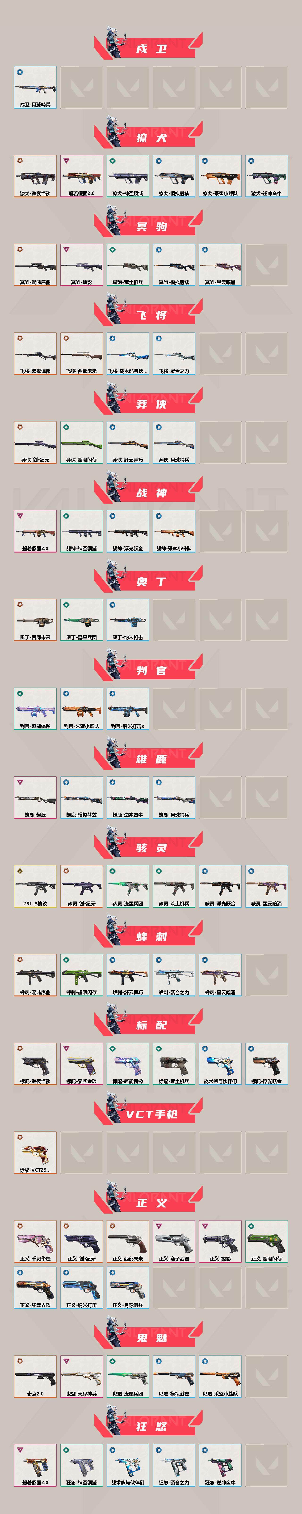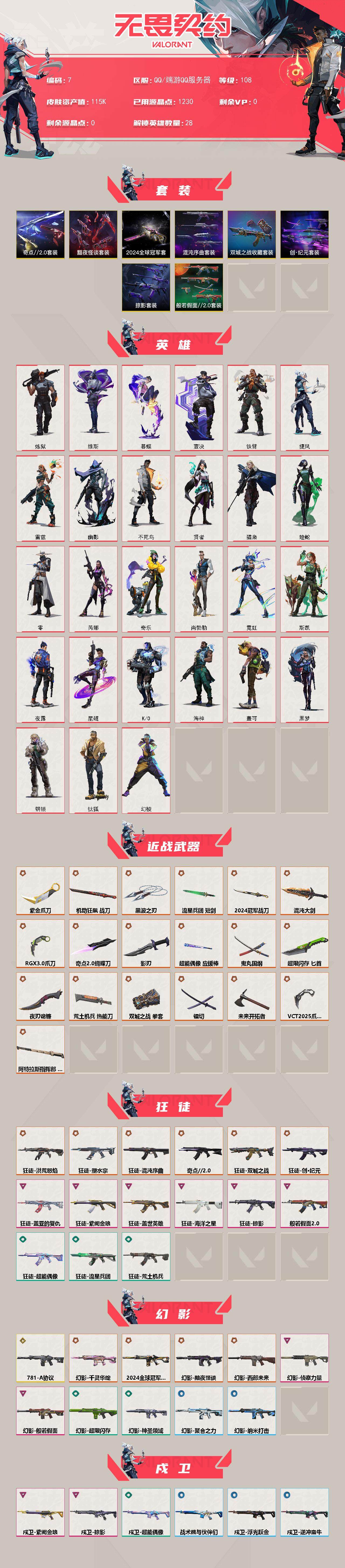 [14498959]24冠军套,双城之战套【套装】:2024全球冠军赛套装,vct 2025 赛季套装,西部未来套装,创·纪元套装,混沌序曲套装,《双城之战》收藏套装,奇点//2.0套装,黯夜怪谈套装,般若假面//2.0套装,掠影套装 【英雄】:幻棱,炼狱,维斯,暮蝶,钛狐,壹决,铁臂,捷风,雷兹,幽影,不死鸟,贤者,猎枭,蝰蛇,零,芮娜,奇乐,尚勃勒,霓虹,斯凯,夜露,星礈,k/o,海神,盖可,黑梦,钢锁 【近战 武器】:近战武器-2024全球冠军赛 战刀,近战武器-奇点//2.0 蝴蝶刀,近战武器-vct 2025 爪刀,近战武器-紫金爪刀,近战武器-rgx 11z pro//3.0 爪刀,近战武器-黑波之刃,近战武器-镭切,近战武器-鬼丸国纲,近战武器-双城之战 拳套,近战武器-未来开拓者,近战武器-混沌大剑,近战武器-流星兵团 短剑,近战武器-超能偶像 应援棒,近战武器-超限闪存 匕首,近战武器-荒土机兵 热能刀,近战武器-机动狂飙 战刀,近战武器-夜刃诡镰,近战武器-影刃,近战武器-阿特拉斯指挥部 甩棍 【狂徒】:狂徒-洪荒怒焰,狂徒-混沌序曲,狂徒-奇点//2.0,狂徒-双城之战,狂徒-塑水宗,狂徒-创·纪元,狂徒-般若假面//2.0,狂徒-掠影,狂徒-盖世英雄,狂徒-盖亚的复仇,狂徒-海洋之星,狂徒-紫阙金琅,狂徒-超能偶像,狂徒-荒土机兵,狂徒-流星兵团 【幻影】:幻影-781-a协议,幻影-2024全球冠军赛,幻影-黯夜怪谈,幻影-千灵华绽,幻影-西部未来,幻影-般若假面,幻影-侦察力量,幻影-超限闪存,幻影-神圣领域,幻影-聚合之力,幻影-纳米打击,幻影-西部未来 【戍卫】:戍卫-掠影,戍卫-紫阙金琅,戍卫-超能偶像,戍卫-浮光跃金,戍卫-逆冲蛮牛,戍卫-战术熊与伙伴们,戍卫-月球哨兵 【獠犬】:獠犬-黯夜怪谈,獠犬-般若假面//2.0,獠犬-神圣领域,獠犬-采蜜小蜂队,獠犬-模拟赫兹,獠犬-逆冲蛮牛 【冥驹】:冥驹-混沌序曲,冥驹-掠影,冥驹-荒土机兵,冥驹-模拟赫兹,冥驹-星云暗涌 【飞将】:飞将-黯夜怪谈,飞将-西部未来,飞将-聚合之力,飞将-战术熊与伙伴们 【莽侠】:莽侠-创·纪元,莽侠-超限闪存,莽侠-纤云弄巧,莽侠-月球哨兵 【战神】:战神-般若假面//2.0,战神-神圣领域,战神-采蜜小蜂队,战神-浮光跃金 【奥丁】:奥丁-西部未来,奥丁-流星兵团,