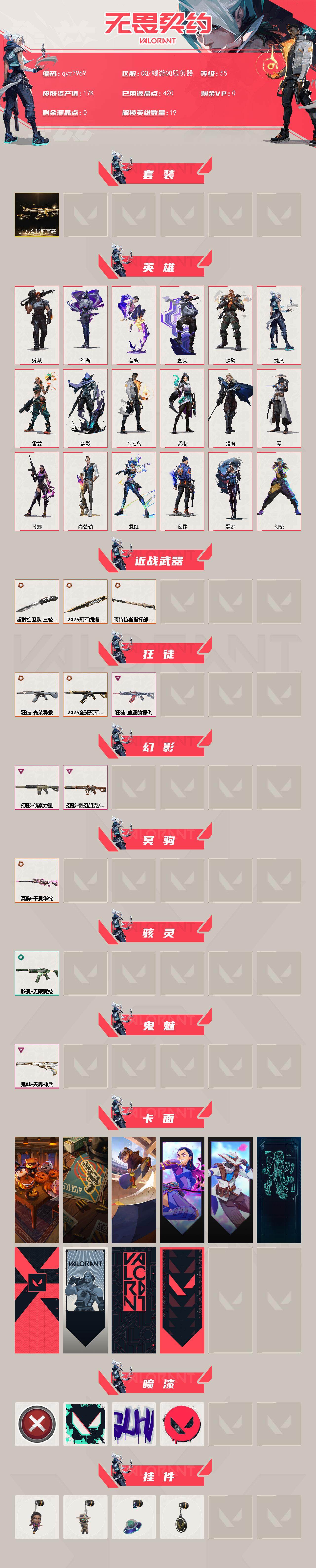 精品黄金小号-三棱/25套-喜欢的来吧-qyz7969-套装:-2025全球冠军赛-近战武器皮肤:-超时空卫队-三棱军刺2025全球冠军赛-蝴蝶刀-步呛皮肤:-狂徒-盖亚的复仇幻影-侦察力量狂徒-光荣异象幻影-奇幻朋克302025全球冠军赛-狂徒-佩呛皮肤:-鬼魅-天界神兵-狙击呛皮肤:-冥驹-千灵华绽-亮点:-【qyz7969】【套装】:2025全球冠军赛套装【英雄】:幻棱,炼狱,维斯,暮蝶,壹决,铁臂,捷风,雷兹,幽影,不死鸟,贤者,猎枭,零,芮娜,尚勃勒,霓虹,夜露,黑梦【近战-武器】:近战武器-2025全球冠军赛-蝴蝶刀,近战武器-超时空卫队-三棱军刺,近战武器-阿特拉斯指挥部-甩棍【狂徒】:狂徒-2025全球冠军赛,狂徒-光荣异象,狂徒-盖亚的复仇【幻影】:幻影-侦察力量,幻影-奇幻朋克//30【冥驹】:冥驹-千灵华绽【骇灵】:骇灵-无限竞技【鬼魅】:鬼魅-天界神兵【卡面】:南瓜盛典-卡面,正义的化身-卡面,clutch-卡面,无畏契约go!第一卷:芮娜-卡面,无畏契约go!第一卷:零-卡面,铁臂设计图-卡面,代号红色-卡面,新兵报到-卡面,v契约-卡面,无畏契约-卡面【喷漆】:买装还是存钱-喷漆,胜利属于无畏契约-喷漆,glhf-喷漆,无畏契约-喷漆【挂饰】:无畏契约go!第一卷-芮娜-挂饰,无畏契约go!第一卷-零-挂饰,天外飞客-挂饰,无畏契约-纪念币-挂饰