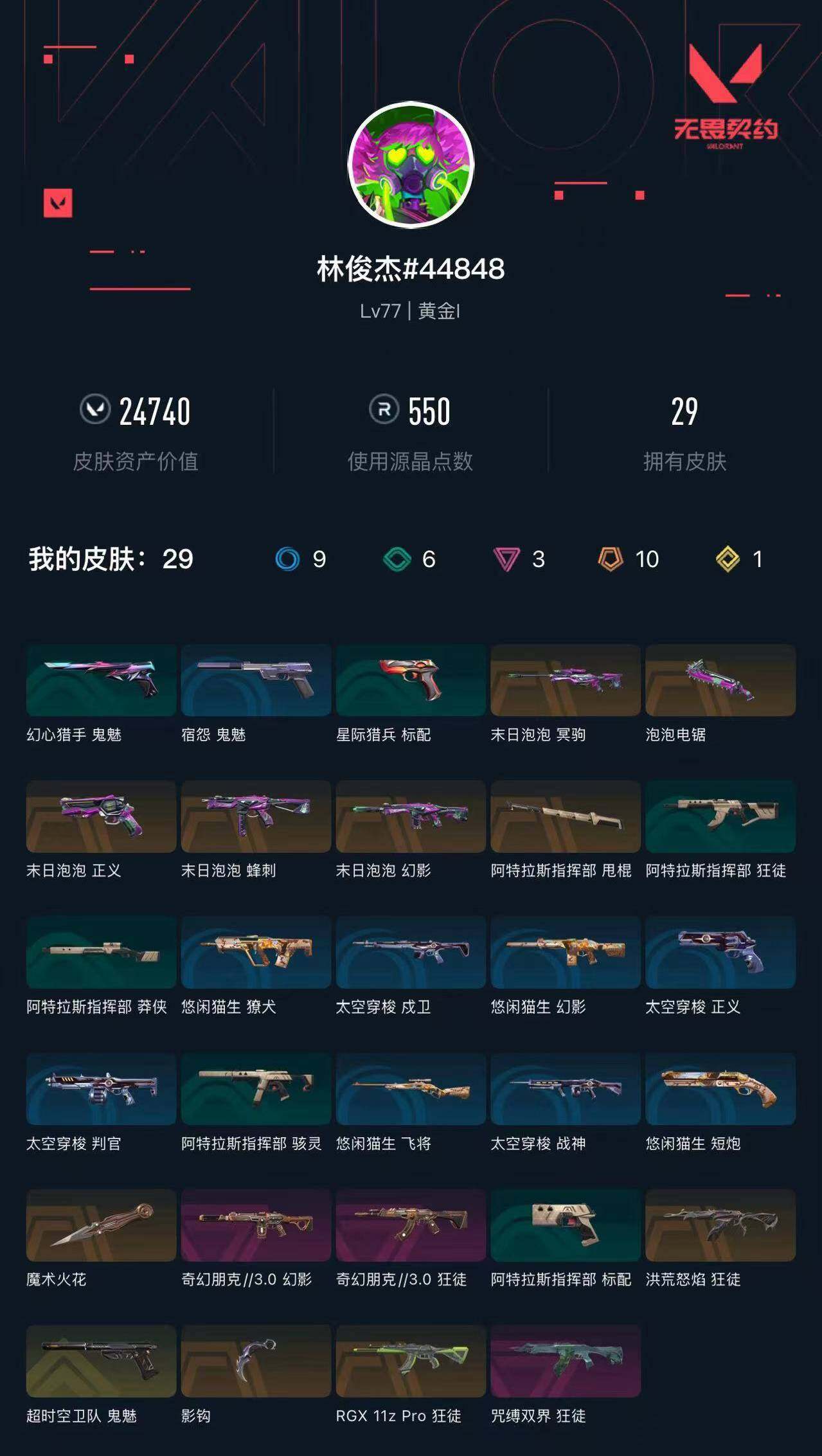 [14503772]【套装】:末日泡泡套装 【英雄】:炼狱,壹决,铁臂,捷风,幽影,不死鸟,贤者,猎枭,蝰蛇,零,芮娜,尚勃勒,霓虹,夜露,星礈,k/o,黑梦 【近战 武器】:近战武器-泡泡电锯,近战武器-魔术火花,近战武器-影钩,近战武器-阿特拉斯指挥部 甩棍,近战武器-魔术火花 【狂徒】:狂徒-洪荒怒焰,狂徒-rgx 11z pro,狂徒-咒缚双界,狂徒-奇幻朋克//3.0 【幻影】:幻影-末日泡泡,幻影-奇幻朋克//3.0 【冥驹】:冥驹-末日泡泡 【蜂刺】:蜂刺-末日泡泡 【正义】:正义-末日泡泡 【鬼魅】:鬼魅-超时空卫队,鬼魅-宿怨 【卡面】:时间到 卡面,最高舞台 卡面,声感陷阱设计图 卡面,梦幻奶茶 卡面,源能反应 卡面,零点嗅探设计图 卡面,无畏契约go!第一卷:芮娜 卡面,无畏契约go!第一卷:零 卡面,《双城之战》金克丝 卡面,钢锁vs盖可 卡面,代号红色 卡面,新兵报到 卡面,v契约 卡面,无畏契约 卡面 【喷漆】:超级粉丝 喷漆,捷风差距 喷漆,惊声尖叫 喷漆,拼一呛 喷漆,我的刀呢? 喷漆,新潮流 喷漆,买装还是存钱 喷漆,蕊形灯 喷漆,胜利属于无畏契约 喷漆,glhf 喷漆,无畏契约 喷漆 【挂饰】:无畏契约go!第一卷 芮娜 挂饰,无畏契约go!第一卷 零 挂饰,糖葫芦 挂饰,袖珍捷风 挂饰,迷你浓缩 挂饰,第九季//第一幕 纪念币 挂饰,荧光棒 挂饰,第八季//第三幕 纪念币 挂饰,天外飞客 挂饰,无畏契约 纪念币 挂饰
