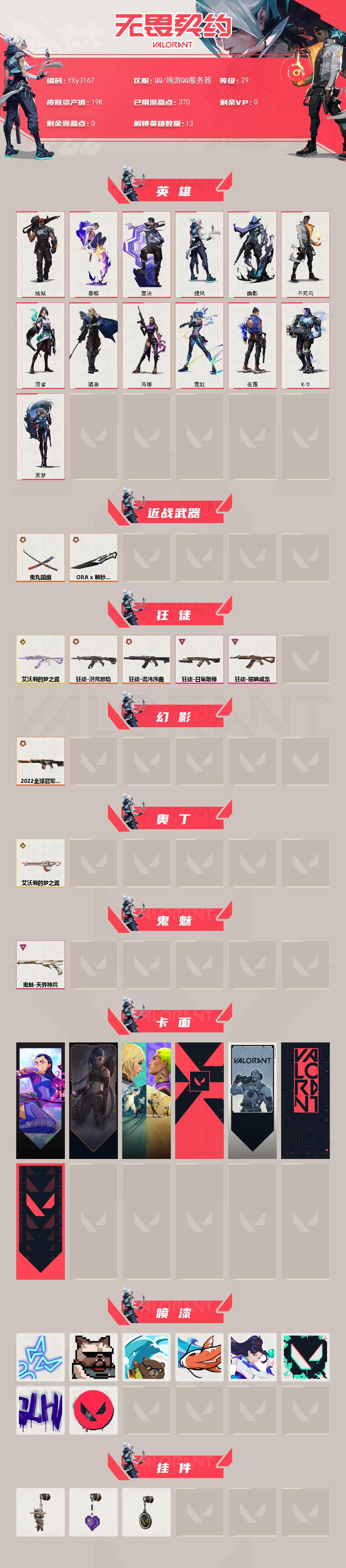 【1.9w库存质量库存号双刀五狂徒.太刀.颗秒小刀.猫猫.流脓.混沌.狮子.威龙.22冠军.猫猫奥丁.天界鬼魅】y3167【可二次】 【英雄】:炼狱,暮蝶,壹决,捷风,幽影,不死鸟,贤者,猎枭,芮娜,霓虹,夜露,k/o,黑梦 【近战 武器】:近战武器-a x 颗秒 军刀,近战武器-鬼丸国纲 【狂徒】:狂徒-艾沃莉的梦之翼,狂徒-洪荒怒焰,狂徒-混沌序曲,狂徒-日冕雄师,狂徒-耀鳞威龙