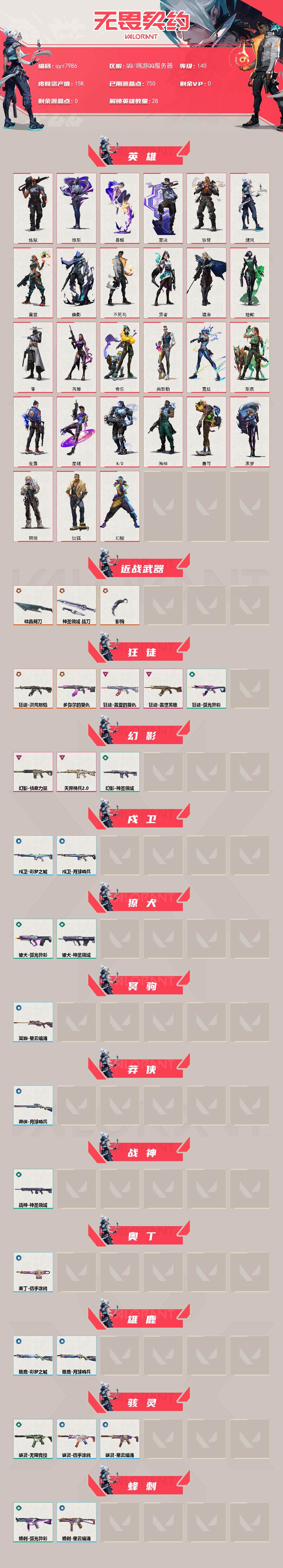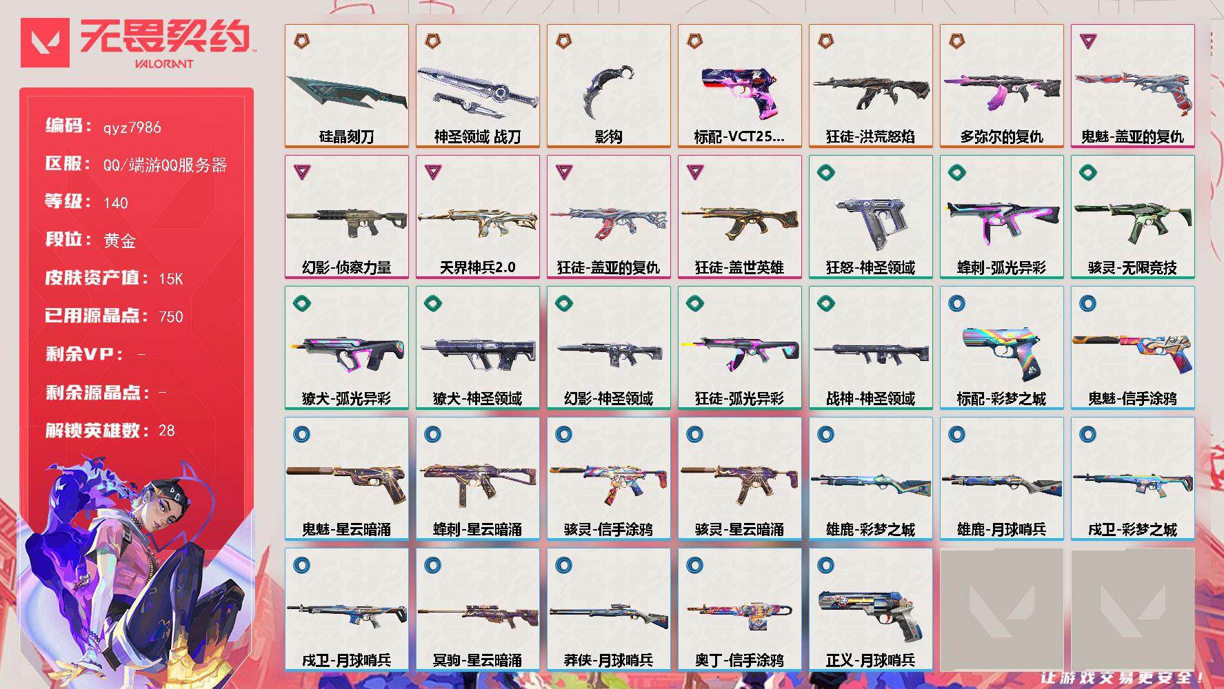 黄金多热门号-嘎嘎香-速出-qyz7986-近战武器皮肤:-硅晶刻刀神圣领域-战刀影钩-步呛皮肤:-狂徒-盖亚的复仇幻影-侦察力量狂徒-盖世英雄狂徒-洪荒怒焰幻影-天界神兵20-佩呛皮肤:-鬼魅-盖亚的复仇标配-vct25xprx-亮点:-【qyz7986】【英雄】:幻棱,炼狱,维斯,暮蝶,钛狐,壹决,铁臂,捷风,雷兹,幽影,不死鸟,贤者,猎枭,蝰蛇,零,芮娜,奇乐,尚勃勒,霓虹,斯凯,夜露,星礈,k/o,海神,盖可,黑梦,钢锁【近战-武器】:近战武器-影钩,近战武器-硅晶刻刀,近战武器-神圣领域-战刀【狂徒】:狂徒-洪荒怒焰,狂徒-多弥尔的复仇,狂徒-盖世英雄,狂徒-盖亚的复仇,狂徒-弧光异彩【幻影】:幻影-天界神兵//20,幻影-侦察力量,幻影-神圣领域【戍卫】:戍卫-彩梦之城,戍卫-月球哨兵【獠犬】:獠犬-弧光异彩,獠犬-神圣领域【冥驹】:冥驹-星云暗涌【莽侠】:莽侠-月球哨兵【战神】:战神-神圣领域【奥丁】:奥丁-信手涂鸦【雄鹿】:雄鹿-彩梦之城,雄鹿-月球哨兵【骇灵】:骇灵-无限竞技,骇灵-信手涂鸦,骇灵-星云暗涌【蜂刺】:蜂刺-弧光异彩,蜂刺-星云暗涌【标配】:标配-彩梦之城【vct手呛】:标配-vct25-x-prx【正义】:正义-月球哨兵【鬼魅】:鬼魅-盖亚的复仇,鬼魅-信手涂鸦,鬼魅-星云暗涌【狂怒】:狂怒-神圣领域【卡面】:逆冲蛮牛-卡面,南瓜盛典-卡面,正义的化身-卡面,铁之华-卡面,clutch-卡面,清除名单-卡面,无畏契约go!第一卷:零-卡面,《双城之战》金克丝-卡面,"luie"-卡面,铁臂设计图-卡面,代号红色-卡面,冰淇淋店-卡面,新兵报到-卡面,友军火力-卡面,v契约-卡面,无畏契约-卡面【喷漆】:倒吸一口凉气-喷漆,新潮流-喷漆,胜利属于无畏契约-喷漆,glhf-喷漆,无畏契约-喷漆【挂饰】:无畏契约go!第一卷-芮娜-挂饰,无畏契约go!第一卷-零-挂饰,第九季//第二幕-纪念币-挂饰,薰衣草之心-挂饰,z世代特饮-挂饰,第八季//第二幕-纪念币-挂饰-,第七季:青铜-挂饰,第七季//第二幕-纪念币-挂饰,无畏契约-纪念币-挂饰