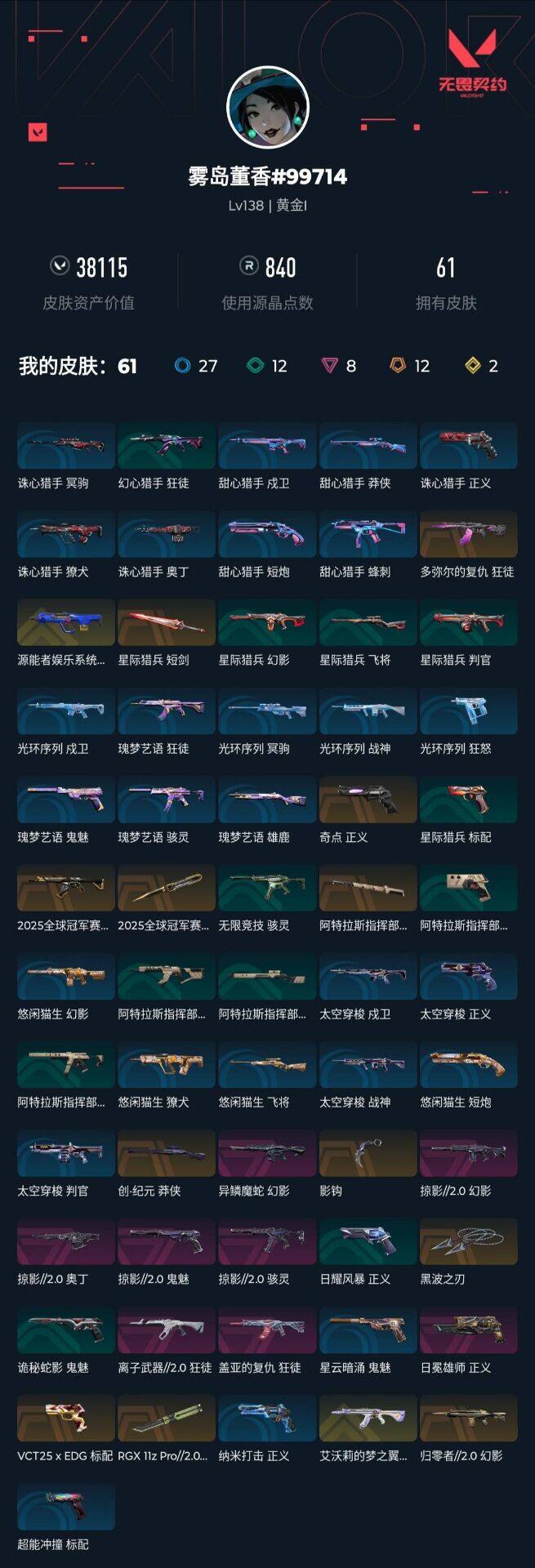 [14536857]【编号12679 可秒换绑】【店长推荐大手子专用号!!中库存满足你的梦想!!!】【套装】:2025全球冠军赛套装,掠影//2.0套装,无畏启程套装 【英雄】:幻棱,炼狱,维斯,暮蝶,钛狐,捷风,不死鸟,贤者,猎枭,蝰蛇,芮娜,尚勃勒,霓虹,斯凯,k/o,盖可,黑梦,钢锁 【近战 武器】:近战武器-2025全球冠军赛 蝴蝶刀,近战武器-影钩,近战武器-rgx 11z pro//2.0 蝴蝶刀,近战武器-黑波之刃,近战武器-阿特拉斯指挥部 甩棍,近战武器-星际猎兵 短剑 【狂徒】:狂徒-艾沃莉的梦之翼,狂徒-2025全球冠军赛,狂徒-多弥尔的复仇,狂徒-盖亚的复仇,狂徒-离子武器//2.0 【幻影】:幻影-归零者//2.0,幻影-异鳞魔蛇,幻影-掠影//2.0 【獠犬】:獠犬-源能者娱乐系统 【莽侠】:莽侠-创·纪元 【奥丁】:奥丁-掠影//2.0 【骇灵】:骇灵-掠影//2.0,骇灵-无限竞技 【标配】:标配-超能冲撞 【vct手呛】:标配-vct25 x edg 【正义】:正义-奇点,正义-日冕雄师,正义-纳米打击 【鬼魅】:鬼魅-掠影//2.0,鬼魅-诡秘蛇影,鬼魅-星云暗涌 【卡面】:进入射程 卡面,分崩离析 卡面,精灵大战 卡面,欢迎来到底城 卡面,南瓜盛典 卡面,热舞环节 卡面,正义的化身 卡面,最高舞台 卡面,复活专家 卡面,红鳞松叶 卡面,clutch 卡面,聚合之力 卡面,梦幻奶茶 卡面,沙雕爆能器 卡面,无畏契约go!第一卷:芮娜 卡面,清除名单 卡面,无畏契约go!第一卷:零 卡面,《双城之战》金克丝 卡面,暗呛 卡面,无畏契约go!第一卷:贤者 卡面,别冒尖 卡面,"luie" 卡面,铁臂设计图 卡面,代号红色 卡面,冰淇淋店 卡面,新兵报到 卡面,v契约 卡面,无畏契约 卡面 【喷漆】:嗨宝南瓜灯 喷漆,都算到了 喷漆,控场勿近 喷漆,皮蛋呼呼 喷漆,熊抱 喷漆,超级粉丝 喷漆,捷风差距 喷漆,买装还是存钱 喷漆,酷熊冲浪 喷漆,无畏契约go!第一卷:捷风 喷漆,松叶 喷漆,胜利属于无畏契约 喷漆,glhf 喷漆,无畏契约 喷漆 【挂饰】:终章:猫猫木乃伊 挂饰,悠闲鸡块 挂饰,伞绳 挂饰,第九季//第三幕 纪念币 挂饰,无畏契约go!第一卷 零 挂饰,第九季//第二幕 纪念币 挂饰,袖珍捷风 挂饰,第九季//第一幕 纪念币 挂饰,vct x
