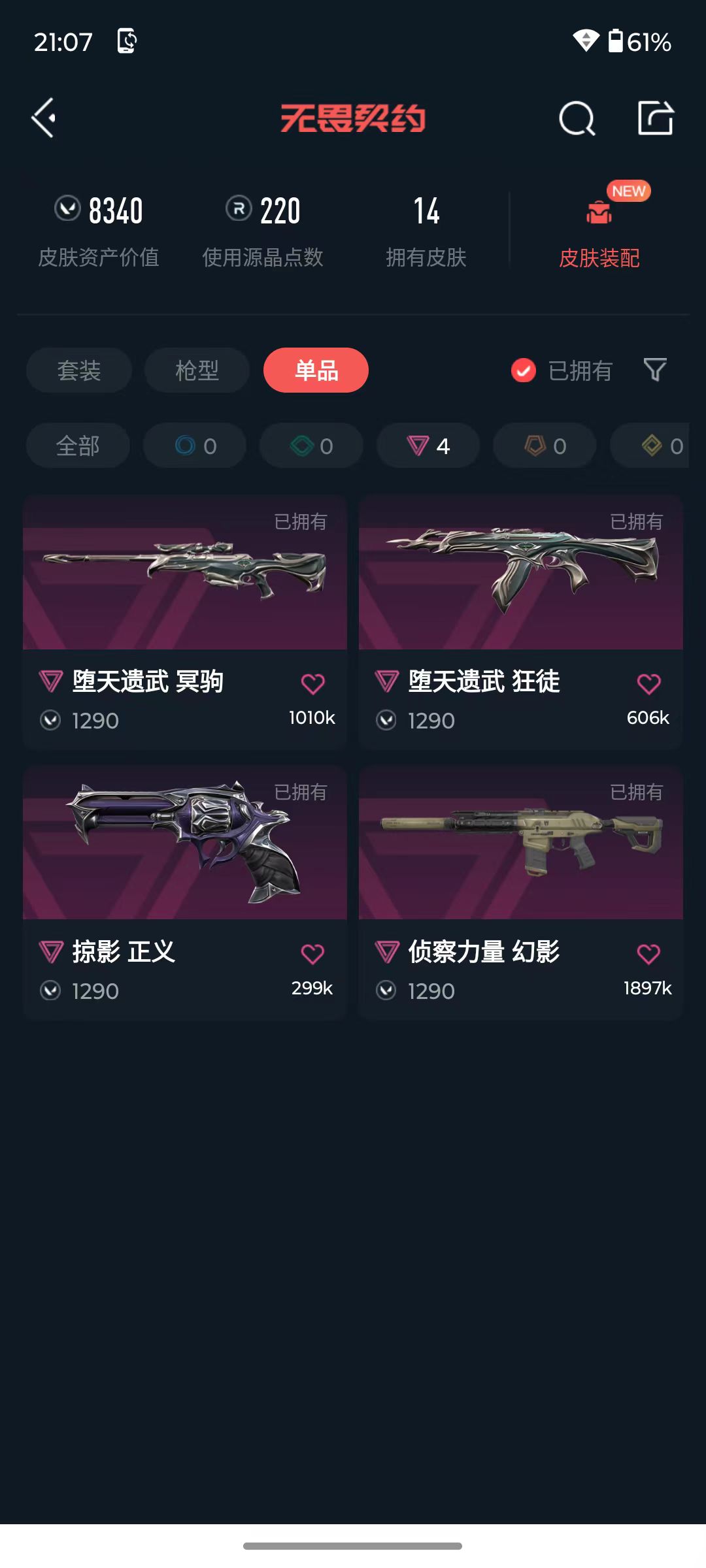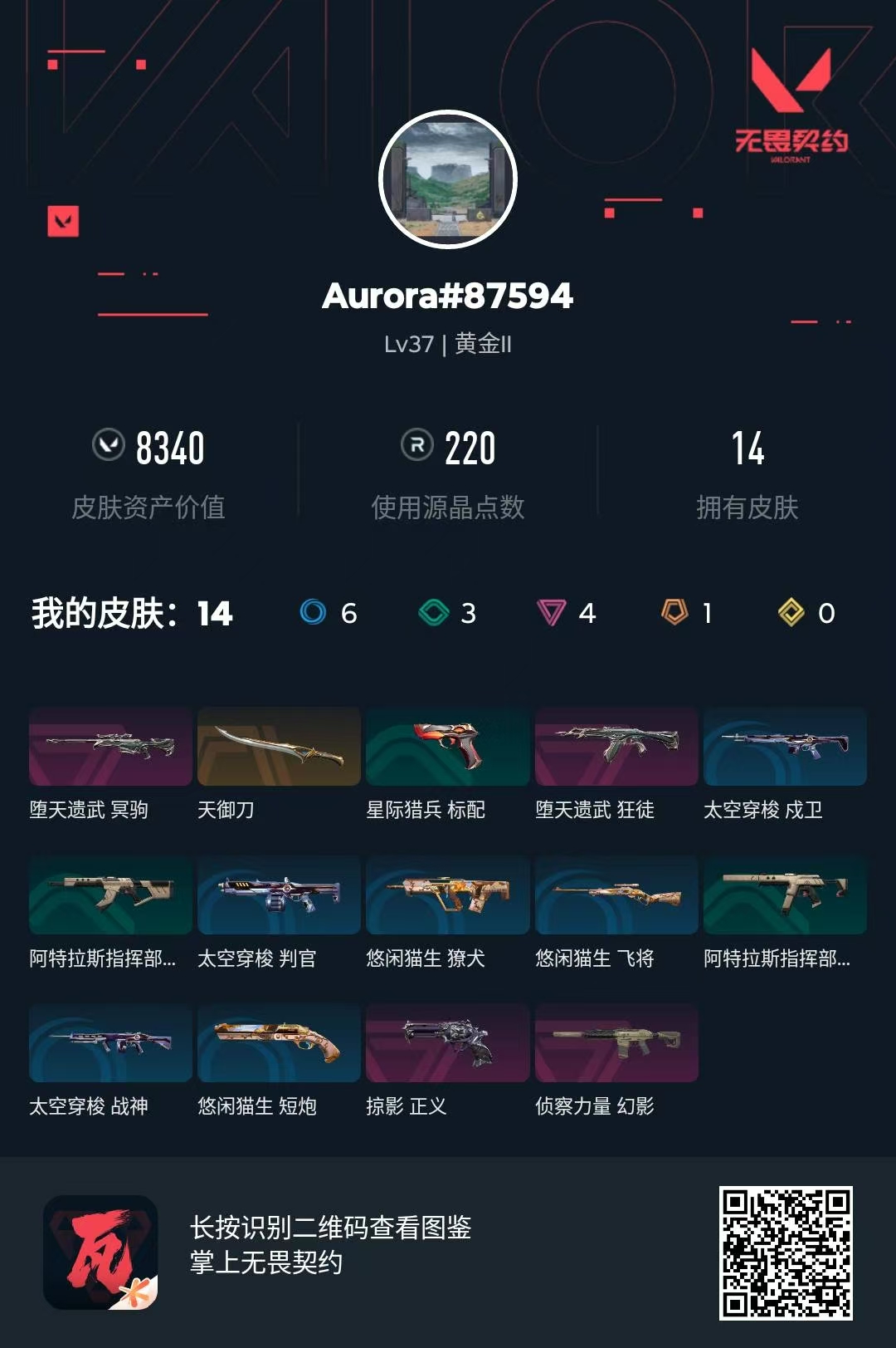 [14548995]s192406无畏契约/37等级/黄金段位/12英雄/14皮肤/资产8340/已使用r点220/剩余r点40/ 堕天遗武-狂徒,侦察力量-幻影,天御刀,堕天遗武-冥驹,掠影-正义
