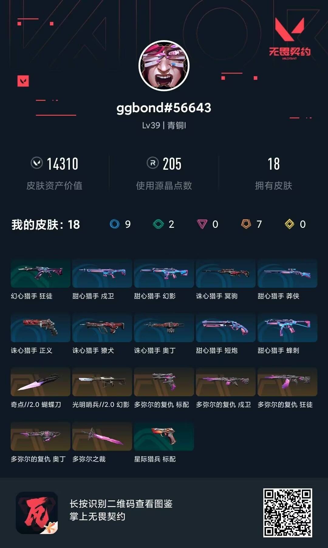 [14553690]7橙皮 18皮肤 12英雄 29卡面 205已用源晶 青铜段位 【套装】:多弥尔的复仇 【近战武器皮肤】:蝴蝶刀-奇点//2.0多弥尔之裁 【佩呛皮肤】:多弥尔的复仇 标配 【步呛皮肤】:多弥尔的复仇 戍卫多弥尔的复仇 狂徒幻影-光明哨兵2.0 【机呛皮肤】:多弥尔的复仇 奥丁