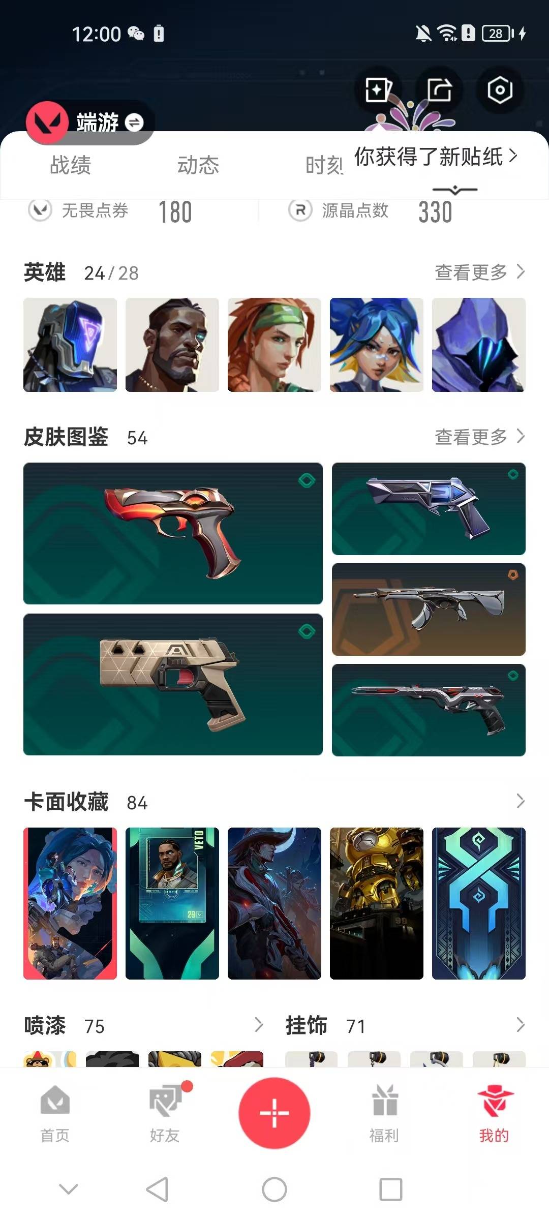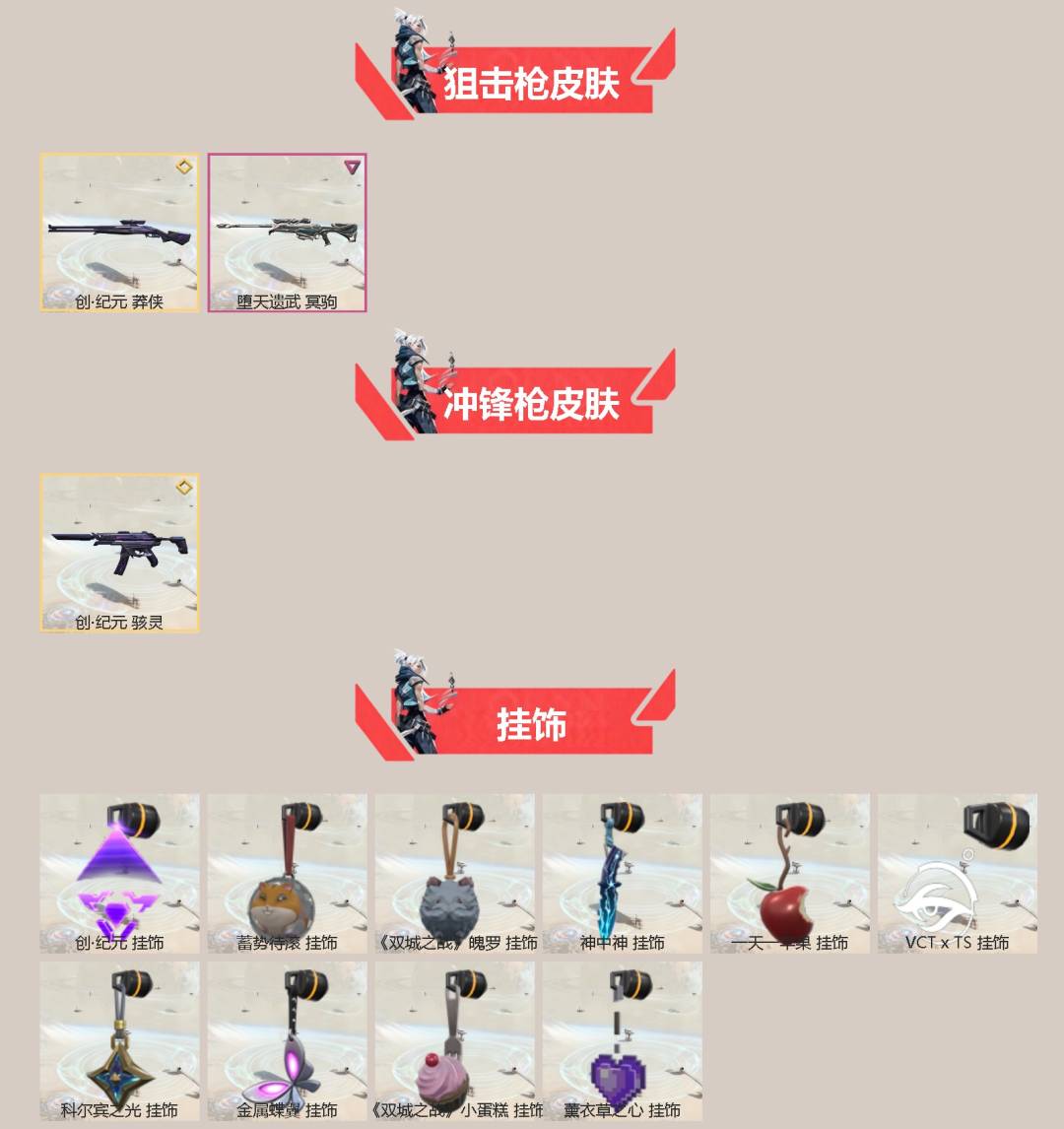 12橙皮 1金皮 3紫皮 54皮肤 24英雄 84卡面 590已用源晶 铂金段位 【套装】:创·纪元套装 【近战武器皮肤】:神圣领域 战刀镭切荒土机兵热能刀诡秘蛇影 【佩呛皮肤】:正义-创·纪元标配-vct25xts正义-千灵华绽鬼魅-源能者娱乐系统 【冲锋呛皮肤】:骇灵-创·纪元 【