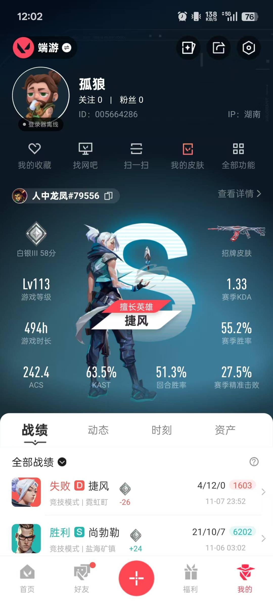 5橙皮 4紫皮 13皮肤 28英雄 58卡面 475已用源晶 白银段位 【近战武器皮肤】:黑波之刃堕天遗武 仪式匕首剥皮小刀威龙之刃 【步呛皮肤】:狂徒-混沌序曲狂徒-掠影狂徒-紫阙金琅狂徒-盖亚的复仇狂徒-盖世英雄 【挂饰】:双城之战小蛋糕挂饰神中神挂饰终章ko小金人挂饰