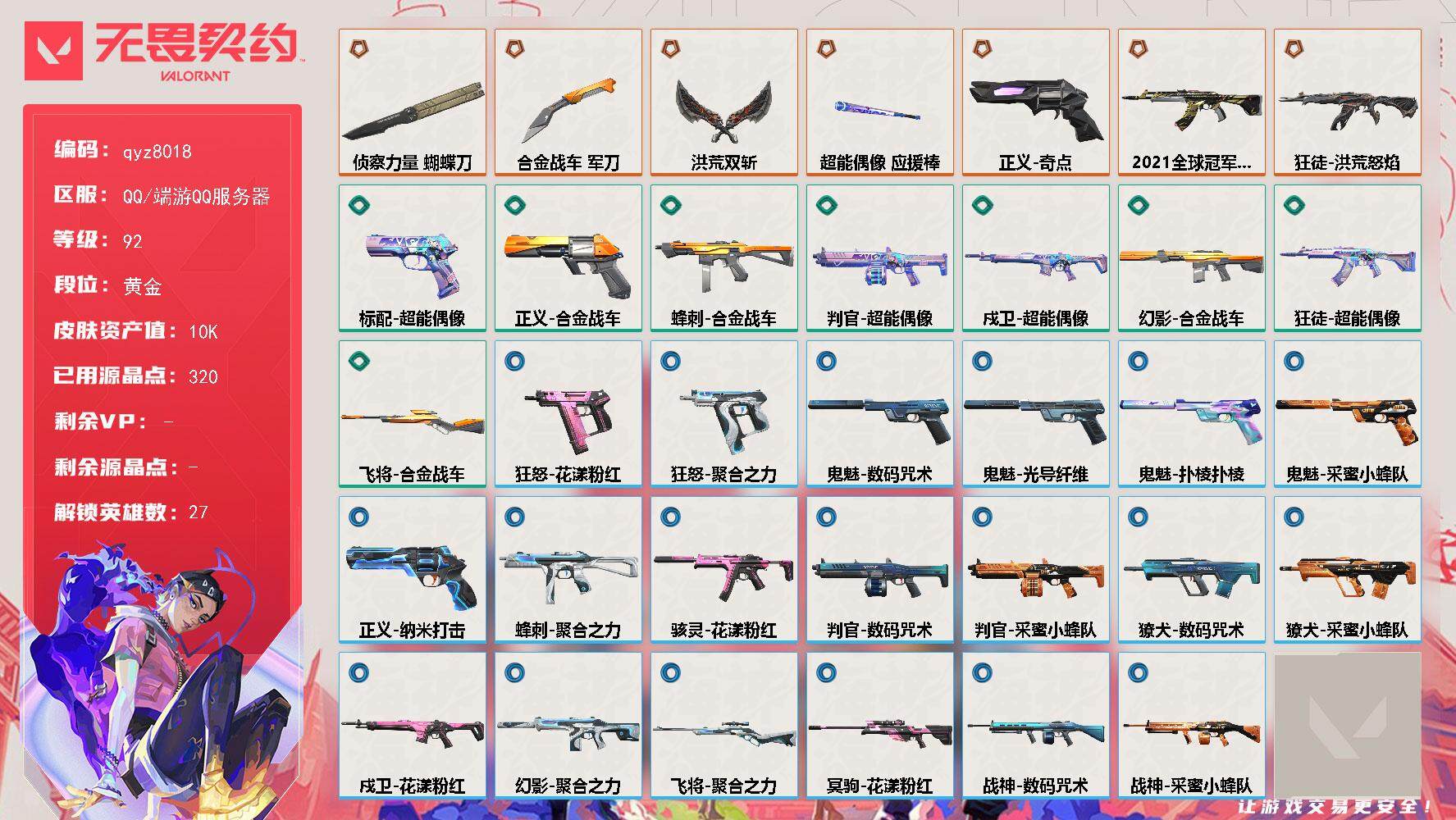 21冠军呛-奇点-正义-侦察力量-蝴蝶刀-qyz8018-亮点皮肤:-狂徒-2021全球冠军赛-近战武器皮肤:-军刀-合金战车蝴蝶刀-侦察力量洪荒双斩超能偶像-应援棒-步呛皮肤:-狂徒-洪荒怒焰-佩呛皮肤:-正义-奇点-亮点:-【qyz8018】【英雄】:幻棱,炼狱,维斯,暮蝶,钛狐,壹决,铁臂,捷风,雷兹,幽影,不死鸟,贤者,猎枭,蝰蛇,零,芮娜,奇乐,尚勃勒,霓虹,斯凯,星礈,k/o,海神,盖可,黑梦,钢锁【近战-武器】:近战武器-侦察力量-蝴蝶刀,近战武器-超能偶像-应援棒,近战武器-合金战车-军刀,近战武器-洪荒双斩【狂徒】:狂徒-2021全球冠军赛,狂徒-洪荒怒焰,狂徒-超能偶像【幻影】:幻影-合金战车,幻影-聚合之力【戍卫】:戍卫-超能偶像,戍卫-花漾粉红【獠犬】:獠犬-采蜜小蜂队,獠犬-数码咒术【冥驹】:冥驹-花漾粉红【飞将】:飞将-合金战车,飞将-聚合之力【战神】:战神-采蜜小蜂队,战神-数码咒术【判官】:判官-超能偶像,判官-采蜜小蜂队,判官-数码咒术【骇灵】:骇灵-花漾粉红【蜂刺】:蜂刺-合金战车,蜂刺-聚合之力【标配】:标配-超能偶像【正义】:正义-奇点,正义-合金战车,正义-纳米打击【鬼魅】:鬼魅-采蜜小蜂队,鬼魅-光导纤维,鬼魅-扑棱扑棱,鬼魅-数码咒术【狂怒】:狂怒-花漾粉红,狂怒-聚合之力【卡面】:终章:激斗汉堡-卡面,进入射程-卡面,《双城之战》拥抱-卡面,精灵大战-卡面,欢迎来到底城-卡面,南瓜盛典-卡面,无畏契约:暮蝶-卡面,正义的化身-卡面,铁之华-卡面,失而复得-卡面,时间到-卡面,最高舞台-卡面,复活专家-卡面,归乡-//-蝰蛇-卡面,超能偶像-卡面,生意人麦宝-卡面,声感陷阱设计图-卡面,钢锁工牌-卡面,战术小伙伴的夏日-卡面,采蜜小蜂队-卡面,聚合之力-卡面,梦幻奶茶-卡面,无畏契约go!第一卷:芮娜-卡面,清除名单-卡面,无畏契约go!第一卷:零-卡面,龍记-卡面,化茧成蝶-卡面,完美调谐-卡面-,暗呛-卡面,代号红色-卡面,冰淇淋店-卡面,新兵报到-卡面,友军火力-卡面,v契约-卡面,无畏契约-卡面【喷漆】:嗨宝南瓜灯-喷漆,嘭!-喷漆,都算到了-喷漆,控场勿近-喷漆,伤心心-喷漆,又被闪了-喷漆,终极羞辱-喷漆,超级粉丝-喷漆,黯兽卖萌-喷漆,捷风差距-喷漆,惊声尖叫-喷漆,五人成星-喷漆,超能偶像-喷漆,放我出去-喷漆,掩护我-喷漆,大佬发呛-喷漆,