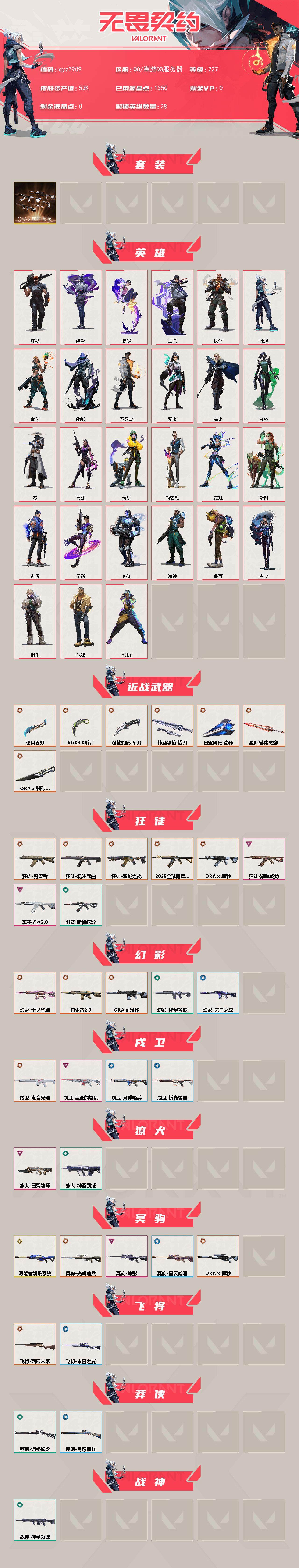 精品白银号-低价捡漏出-喜欢的来吧-qyz7909-近战武器皮肤:-魄月玄刃爪刀-rgx-11z-pro-30神圣领域-战刀诡秘蛇影-步呛皮肤:-戍卫-盖亚的复仇狂徒-归零者狂徒-耀鳞威龙幻影-千灵华绽獠犬-日冕雄师狂徒-混沌序曲狂徒-双城之战幻影-归零者//20狂徒-离子武器20戍卫-电音光谱2025全球冠军赛-狂徒-佩呛皮肤:-短炮-般若假面狂怒-上古龙炎标配-vct25x100t正义-西部未来鬼魅-掠影20-狙击呛皮肤:-冥驹-源能者娱乐系统冥驹-光明哨兵冥驹-掠影飞将-西部未来-霰弹呛皮肤:-雄鹿-紫阙金琅20判官-全息波普判官-上古龙炎-亮点:-【qyz7909】【套装】:a-x-颗秒套装【英雄】:幻棱,炼狱,维斯,暮蝶,钛狐,壹决,铁臂,捷风,雷兹,幽影,不死鸟,贤者,猎枭,蝰蛇,零,芮娜,奇乐,尚勃勒,霓虹,斯凯,夜露,星礈,k/o,海神,盖可,黑梦,钢锁【近战-武器】:近战武器-a-x-颗秒-军刀,近战武器-rgx-11z-pro//30-爪刀,近战武器-魄月玄刃,近战武器-诡秘蛇影-军刀,近战武器-神圣领域-战刀,近战武器-日耀风暴-遗器,近战武器-星际猎兵-短剑【狂徒】:狂徒-2025全球冠军赛,狂徒-归零者,狂徒-混沌序曲,狂徒-双城之战,狂徒-a-x-颗秒,狂徒-耀鳞威龙,狂徒-离子武器//20,狂徒-诡秘蛇影【幻影】:幻影-归零者//20,幻影-千灵华绽,幻影-a-x-颗秒,幻影-神圣领域,幻影-末日之翼【戍卫】:戍卫-电音光谱,戍卫-盖亚的复仇,戍卫-月球哨兵,戍卫-折光棱晶,戍卫-电音光谱【獠犬】:獠犬-日冕雄师,獠犬-神圣领域【冥驹】:冥驹-源能者娱乐系统,冥驹-光明哨兵,冥驹-a-x-颗秒,冥驹-掠影,冥驹-星云暗涌【飞将】:飞将-西部未来,飞将-末日之翼【莽侠】:莽侠-诡秘蛇影,莽侠-月球哨兵【战神】:战神-神圣领域【奥丁】:奥丁-末日之翼【判官】:判官-上古龙炎,判官-全息波普,判官-诡秘蛇影【雄鹿】:雄鹿-紫阙金琅//20,雄鹿-月球哨兵【骇灵】:骇灵-无限竞技,骇灵-星云暗涌【蜂刺】:蜂刺-星云暗涌,蜂刺-折光棱晶【标配】:标配-小玩意,标配-折光棱晶【vct手呛】:标配-vct25-x-100t【正义】:正义-西部未来,正