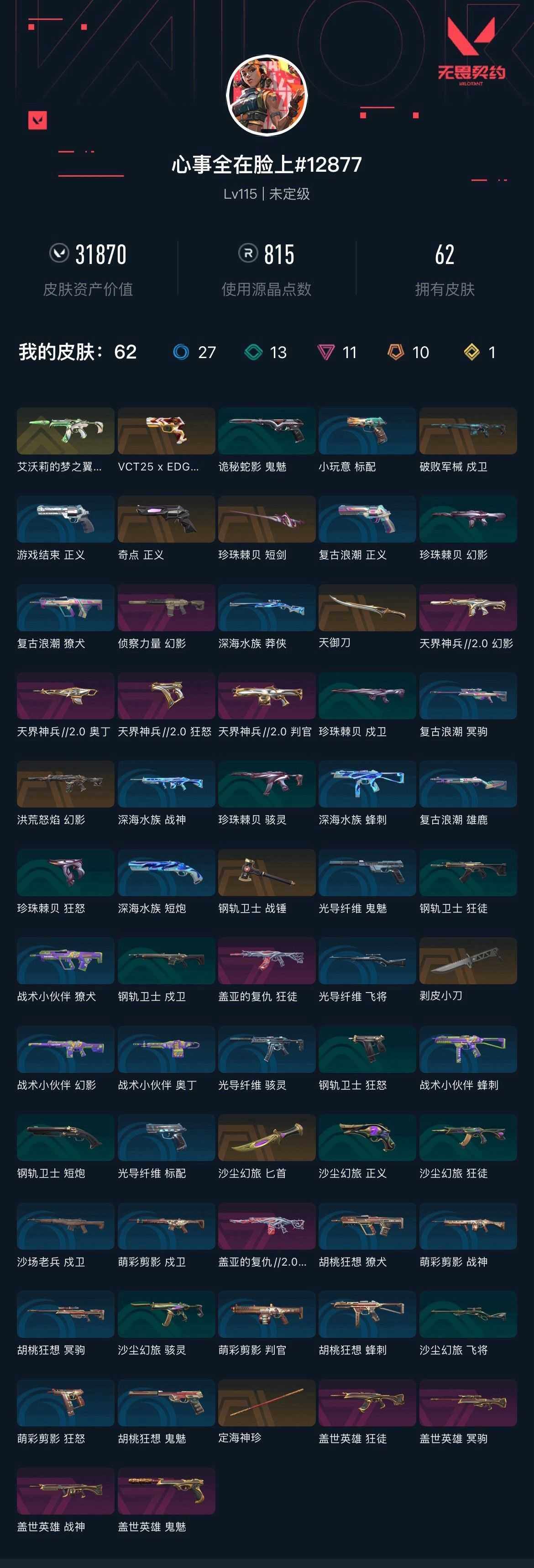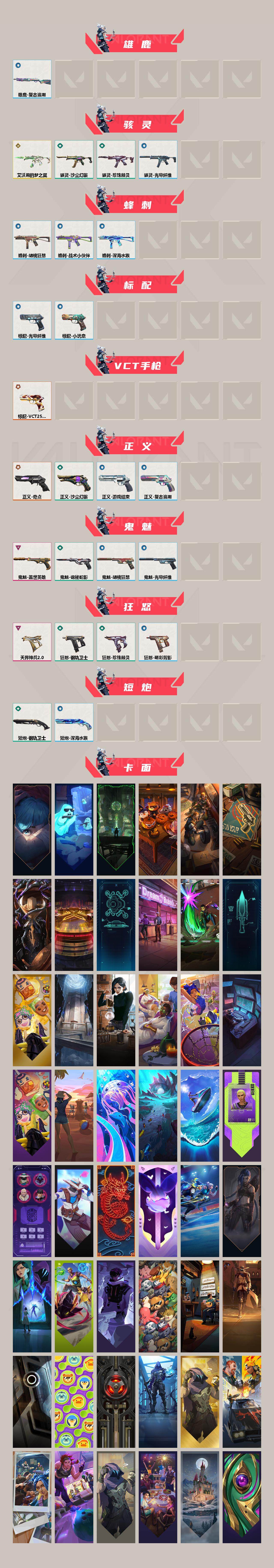[14559315]【套装】:盖世英雄套装,天界神兵//2.0套装 【英雄】:幻棱,炼狱,维斯,暮蝶,钛狐,壹决,铁臂,捷风,雷兹,幽影,不死鸟,贤者,猎枭,蝰蛇,零,芮娜,奇乐,尚勃勒,霓虹,斯凯,夜露,星礈,k/o,海神,盖可,黑梦,钢锁 【近战 武器】:近战武器-剥皮小刀,近战武器-珍珠棘贝 短剑,近战武器-定海神珍,近战武器-钢轨卫士 战锤,近战武器-沙尘幻旅 匕首,近战武器-天御刀 【狂徒】:狂徒-盖世英雄,狂徒-盖亚的复仇,狂徒-钢轨卫士,狂徒-沙尘幻旅 【幻影】:幻影-洪荒怒焰,幻影-盖亚的复仇//2.0,幻影-天界神兵//2.0,幻影-侦察力量,幻影-珍珠棘贝,幻影-战术小伙伴 【戍卫】:戍卫-破败军械,戍卫-钢轨卫士,戍卫-珍珠棘贝,戍卫-萌彩剪影,戍卫-沙场老兵 【獠犬】:獠犬-复古浪潮,獠犬-胡桃狂想,獠犬-战术小伙伴 【冥驹】:冥驹-盖世英雄,冥驹-复古浪潮,冥驹-胡桃狂想 【飞将】:飞将-沙尘幻旅,飞将-光导纤维 【莽侠】:莽侠-深海水族 【战神】:战神-盖世英雄,战神-萌彩剪影,战神-深海水族 【奥丁】:奥丁-天界神兵//2.0,奥丁-战术小伙伴 【判官】:判官-天界神兵//2.0,判官-萌彩剪影 【雄鹿】:雄鹿-复古浪潮 【骇灵】:骇灵-艾沃莉的梦之翼,骇灵-沙尘幻旅,骇灵-珍珠棘贝,骇灵-光导纤维 【蜂刺】:蜂刺-胡桃狂想,蜂刺-深海水族,蜂刺-战术小伙伴 【标配】:标配-光导纤维,标配-小玩意 【vct手呛】:标配-vct25 x edg 【正义】:正义-奇点,正义-沙尘幻旅,正义-复古浪潮,正义-游戏结束 【鬼魅】:鬼魅-盖世英雄,鬼魅-诡秘蛇影,鬼魅-光导纤维,鬼魅-胡桃狂想 【狂怒】:狂怒-天界神兵//2.0,狂怒-钢轨卫士,狂怒-珍珠棘贝,狂怒-萌彩剪影 【短炮】:短炮-钢轨卫士,短炮-深海水族 【卡面】:《双城之战》拥抱 卡面,精灵大战 卡面,欢迎来到底城 卡面,南瓜盛典 卡面,修车达人 卡面,正义的化身 卡面,时间到 卡面,最高舞台 卡面,声感陷阱设计图 卡面,梦幻奶茶 卡面,源能反应 卡面,零点嗅探设计图 卡面,终章:瓦娃脸雪糕 卡面,表象之下 卡面,虹吸式咖啡壶 卡面,源能者美容 卡面,脚踝终结者 卡面 ,夜班 卡面,瓦娃脸雪糕 卡面 ,沙雕爆能器 卡面,深海水族 卡面,珍珠棘贝 卡面,复古浪潮 卡面,盖可工牌 卡面,清除名单 卡面,