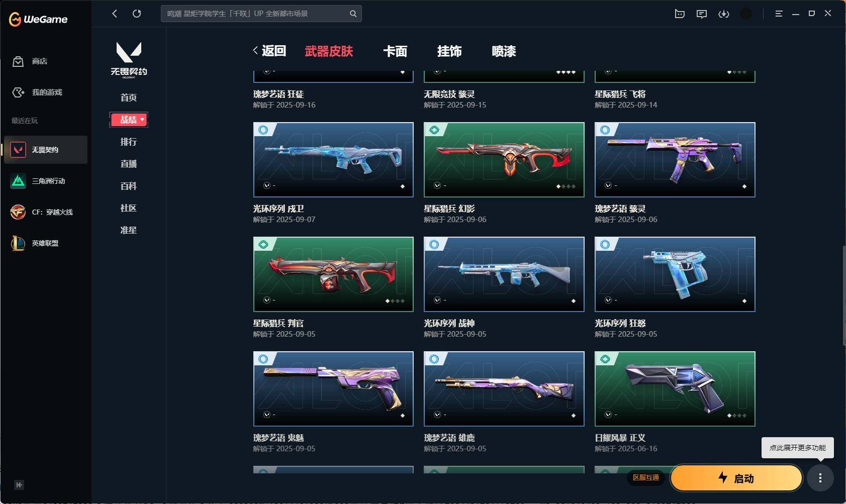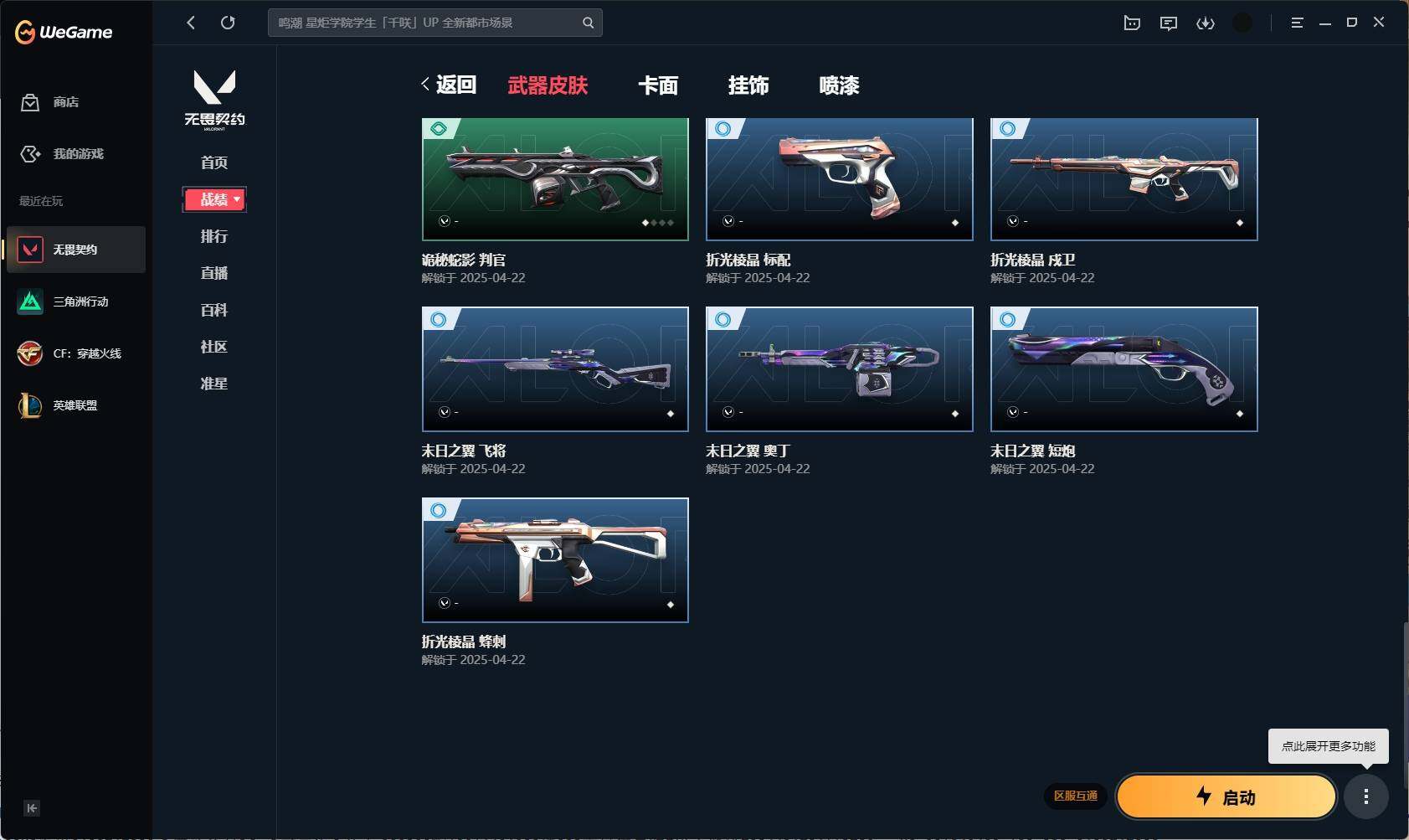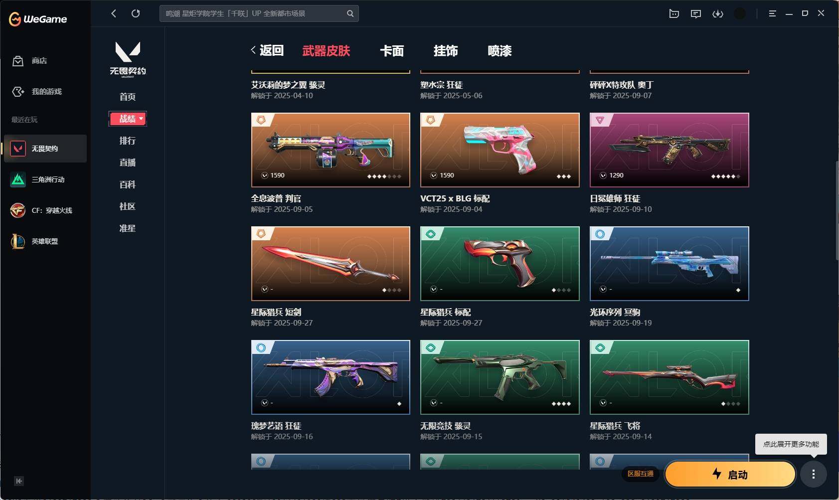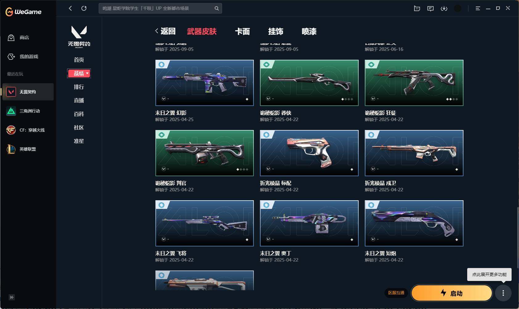 【331】【套装】:2025全球冠军赛套装,2022全球冠军赛套装 【英雄】:幻棱,炼狱,维斯,暮蝶,壹决,捷风,幽影,不死鸟,贤者,猎枭,芮娜,霓虹,斯凯,夜露,黑梦 【近战 武器】:近战武器-2025全球冠军赛 蝴蝶刀,近战武器-2022全球冠军赛 蝴蝶刀,近战武器-星际猎兵 短剑 【狂徒】:狂徒-艾沃莉的梦之翼,狂徒-2025全球冠军赛,狂徒-塑水宗,狂徒-日冕雄师,狂徒-诡秘蛇影 【幻影】:幻影-781-a协议,幻影-2022全球冠军赛,幻影-末日之翼 【戍卫】:戍卫-折光棱晶 【飞将】:飞将-末日之翼 【莽侠】:莽侠-诡秘蛇影 【奥丁】:奥丁-砰砰x特攻队,奥丁-末日之翼 【判官】:判官-全息波普,判官-诡秘蛇影 【骇灵】:骇灵-艾沃莉的梦之翼,骇灵-无限竞技 【蜂刺】:蜂刺-折光棱晶 【标配】:标配-折光棱晶 【vct手呛】:标配-vct25 x blg 【短炮】:短炮-末日之翼 【卡面】:无畏契约:暮蝶 卡面,clutch 卡面,无畏契约go!第一卷:芮娜 卡面,无畏契约go!第一卷:零 卡面,无畏契约go!第一卷:贤者 卡面,钢锁vs盖可 卡面,别冒尖 卡面,代号红色 卡面,新兵报到 卡面,v契约 卡面,无畏契约 卡面 【喷漆】:伤心心 喷漆,超能偶像 喷漆,买装还是存钱 喷漆,关门放狗 喷漆,胜利属于无畏契约 喷漆,glhf 喷漆,无畏契约 喷漆 【挂饰】:无畏契约go!第一卷 零 挂饰,天外飞客 挂饰,《双城之战》魄罗 挂饰,海豹的认可 挂饰,无畏契约 纪念币 挂饰