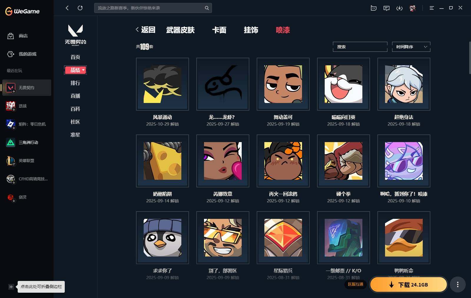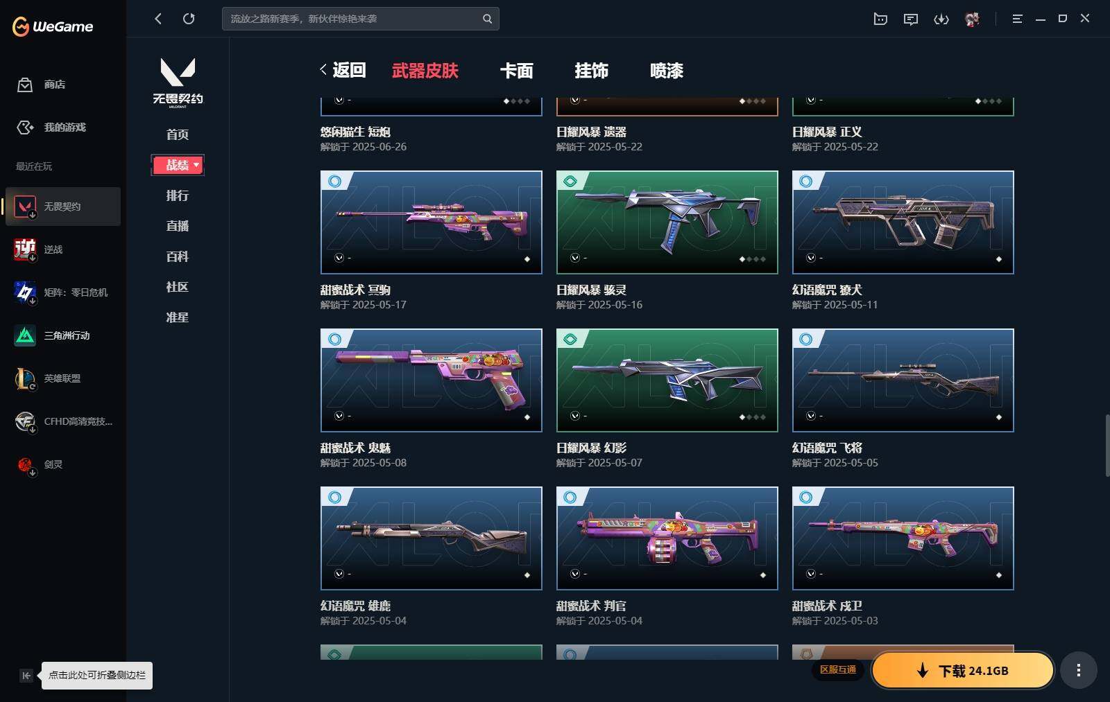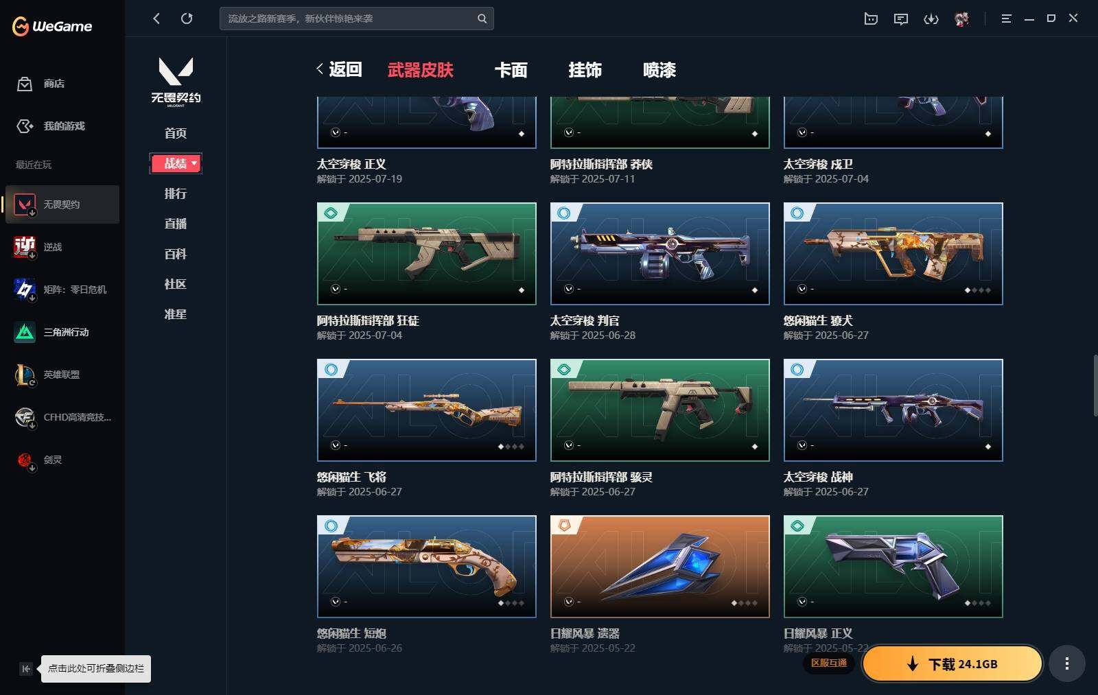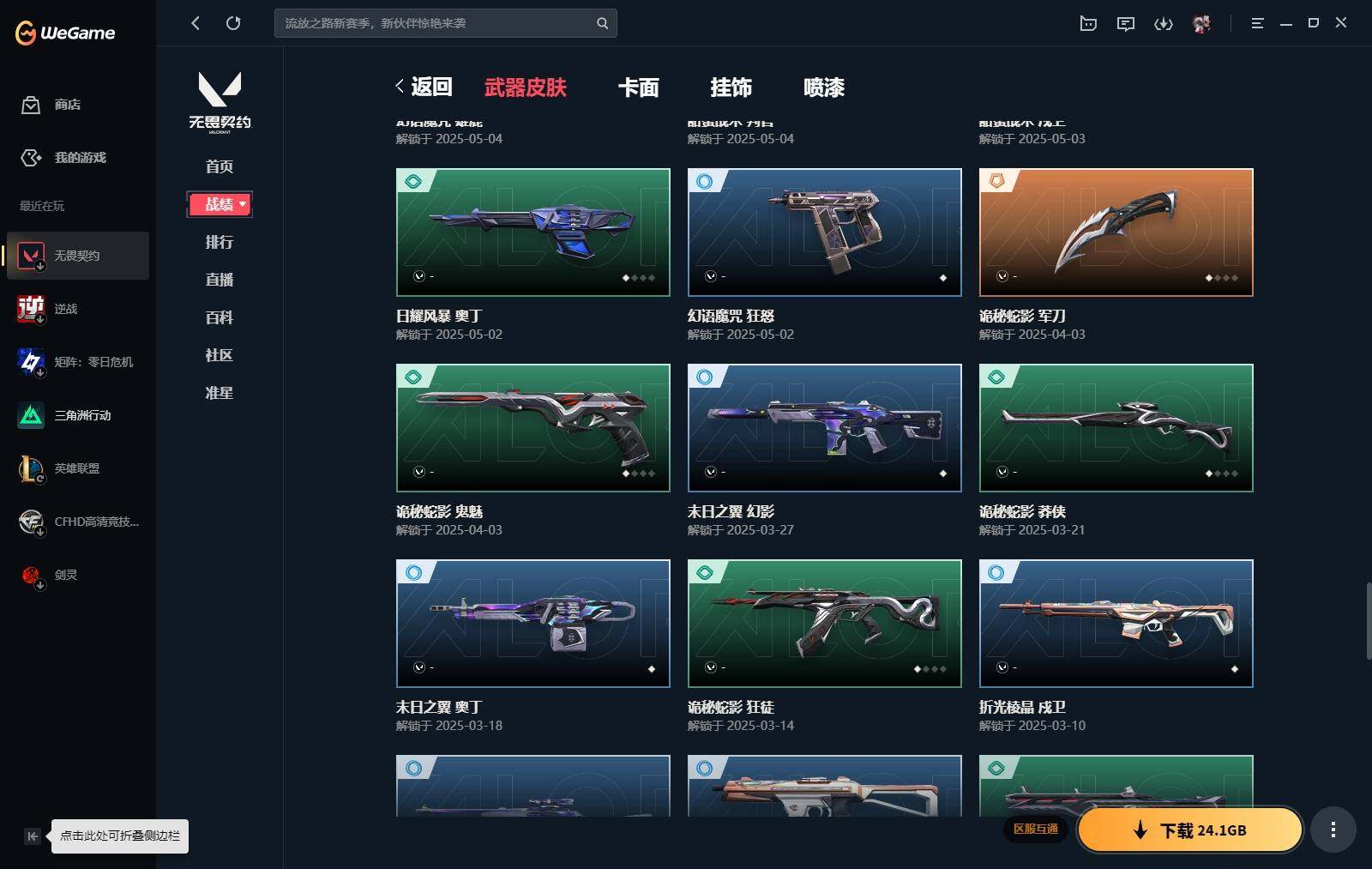 【497】【套装】:vct 2025 赛季套装,西部未来套装 【英雄】:幻棱,炼狱,维斯,暮蝶,钛狐,壹决,铁臂,捷风,雷兹,幽影,不死鸟,贤者,猎枭,蝰蛇,零,芮娜,奇乐,尚勃勒,霓虹,斯凯,夜露,星礈,k/o,海神,盖可,黑梦,钢锁 【近战 武器】:近战武器-魔术火花,近战武器-剥皮小刀,近战武器-vct 2025 爪刀,近战武器-源始幻刃,近战武器-未来开拓者,近战武器-诡秘蛇影 军刀,近战武器-神圣领域 战刀,近战武器-日耀风暴 遗器,近战武器-阿特拉斯指挥部 甩棍,近战武器-星际猎兵 短剑,近战武器-魔术火花 【狂徒】:狂徒-冰点凝冻,狂徒-盖亚的复仇,狂徒-紫阙金琅,狂徒-诡秘蛇影 【幻影】:幻影-西部未来,幻影-侦察力量,幻影-神圣领域,幻影-末日之翼,幻影-西部未来 【戍卫】:戍卫-掠影,戍卫-月球哨兵,戍卫-折光棱晶 【獠犬】:獠犬-黯夜怪谈,獠犬-神圣领域 【冥驹】:冥驹-归零者,冥驹-盖世英雄,冥驹-星云暗涌 【飞将】:飞将-西部未来,飞将-末日之翼 【莽侠】:莽侠-神中神罚,莽侠-诡秘蛇影,莽侠-月球哨兵 【战神】:战神-神圣领域 【奥丁】:奥丁-西部未来,奥丁-末日之翼 【判官】:判官-全息波普,判官-诡秘蛇影 【雄鹿】:雄鹿-月球哨兵 【骇灵】:骇灵-星云暗涌 【蜂刺】:蜂刺-混沌序曲,蜂刺-星云暗涌,蜂刺-折光棱晶 【标配】:标配-rgx 11z pro//2.0,标配-紫阙金琅,标配-折光棱晶 【正义】:正义-奇点,正义-西部未来,正义-奇幻朋克//2.0,正义-月球哨兵 【鬼魅】:鬼魅-耀鳞威龙,鬼魅-诡秘蛇影,鬼魅-灵魂消声者,鬼魅-星云暗涌 【狂怒】:狂怒-神圣领域 【短炮】:短炮-混沌序曲,短炮-末日之翼 【卡面】:精灵大战 卡面,南瓜盛典 卡面,无畏契约:暮蝶 卡面,clutch 卡面,梦幻奶茶 卡面,西装暴徒 卡面,源能反应 卡面,零点嗅探设计图 卡面,无畏契约go!第一卷:芮娜 卡面,清除名单 卡面,无畏契约go!第一卷:零 卡面,《双城之战》金克丝 卡面,无畏契约go!第一卷:贤者 卡面,钢锁vs盖可 卡面,热烈欢迎 卡面,铁臂设计图 卡面,代号红色 卡面,冰淇淋店 卡面,新兵报到 卡面,友军火力 卡面,v契约 卡面,无畏契约 卡面 【喷漆】:嗨宝南瓜灯 喷漆,控场勿近 喷漆,伤心心 喷漆,我的刀呢? 喷漆,买装还是存钱 喷漆,无畏契约go!第一卷:捷风 喷漆,红牌退场 喷漆,老铁困了 喷漆,口袋贤者 喷漆,胜利属于无畏契约 喷漆,glhf 喷漆,无畏契约 喷漆 【挂饰】:悠闲鸡块 挂饰,伞绳 挂饰,第九季//第三幕 纪念币 挂饰,荧光棒 挂饰,第八季//第三幕 纪念币 挂饰,天外飞客 挂饰,好运福爪 挂饰,第七季:青铜 挂饰,第七季//第三幕 纪念币 挂饰,幸运中国结 挂饰,第七季//第二幕 纪念币 挂饰,无畏契约 纪念币 挂饰