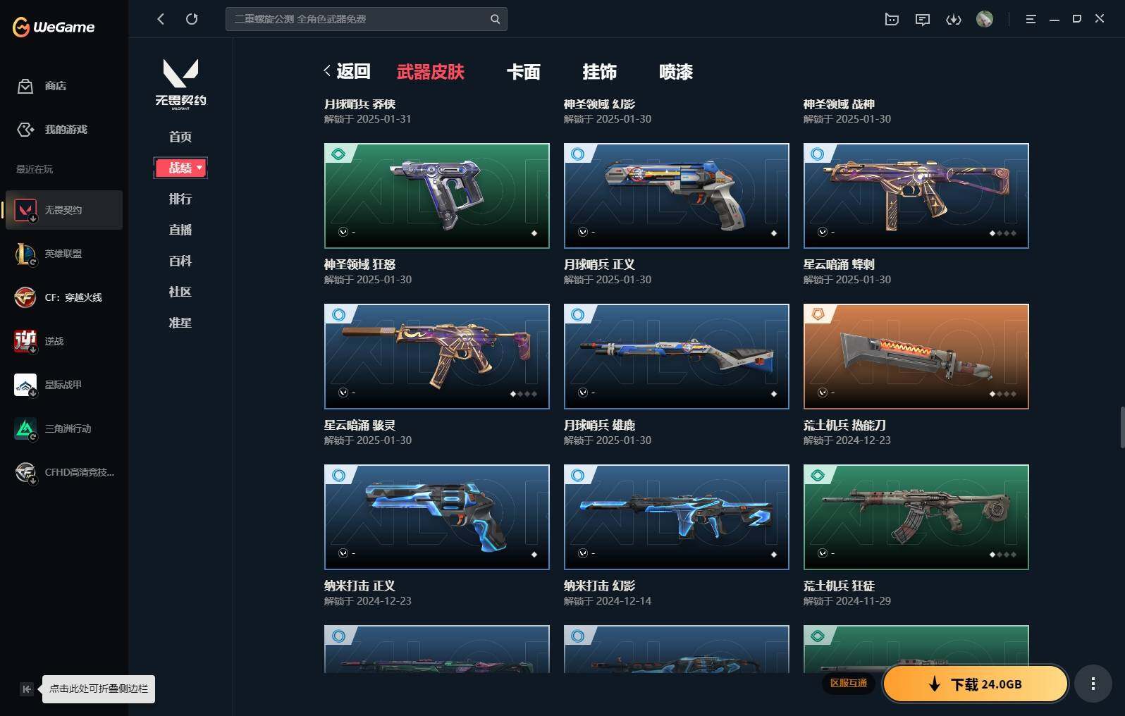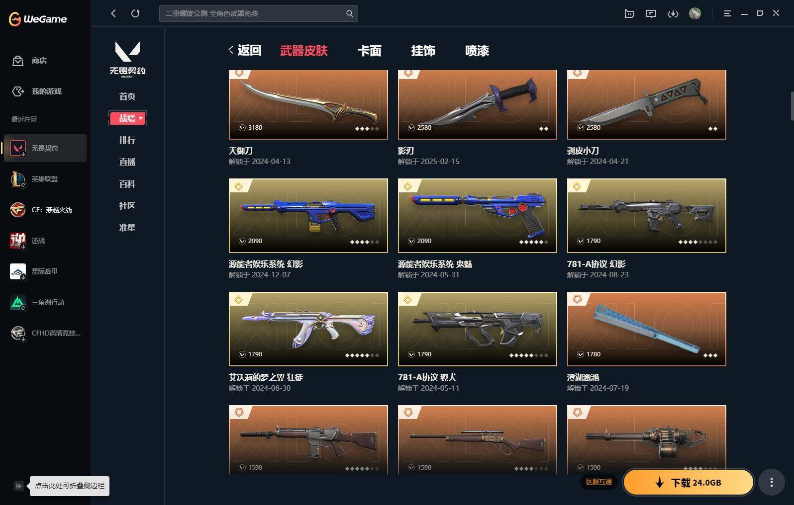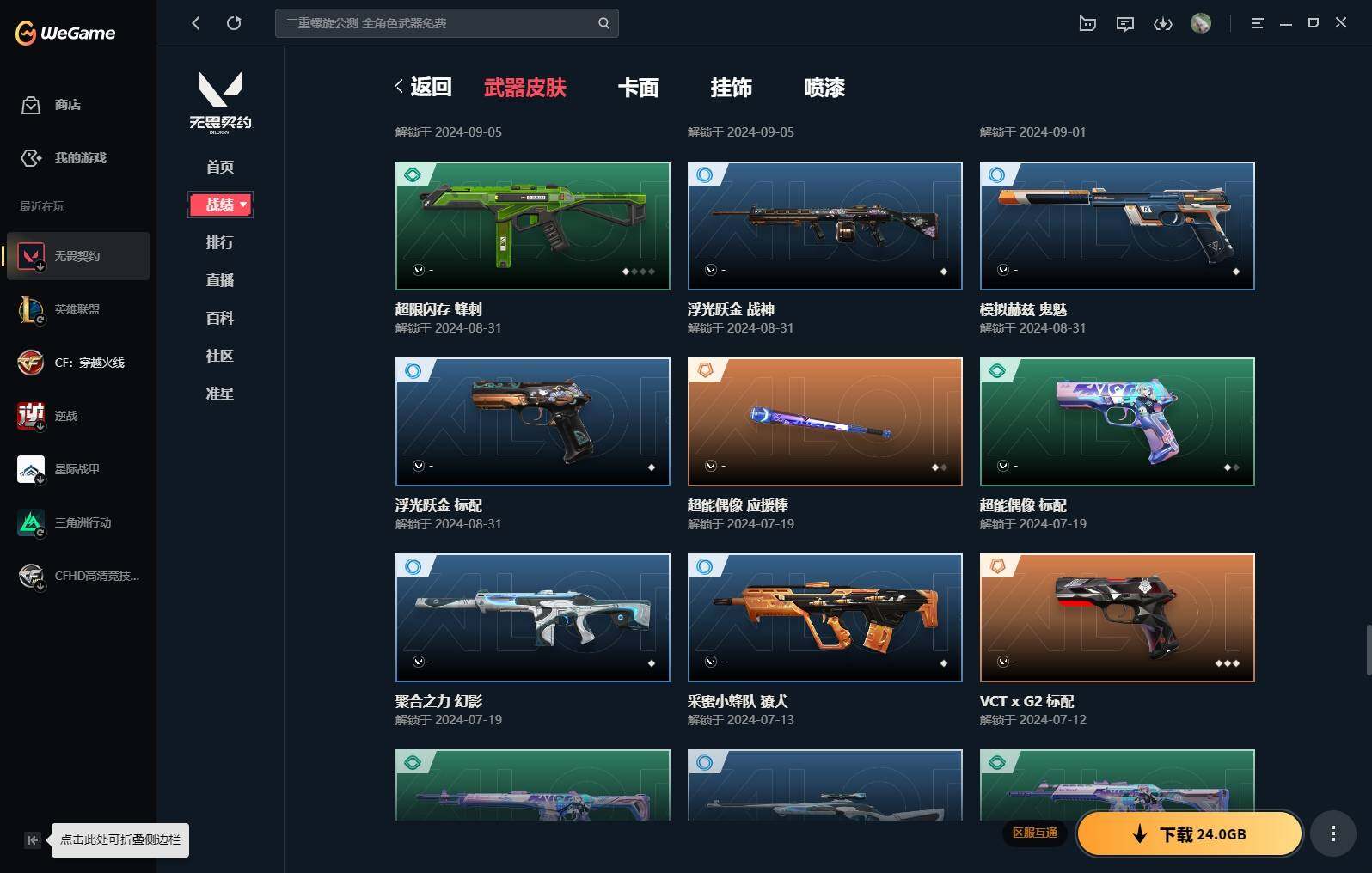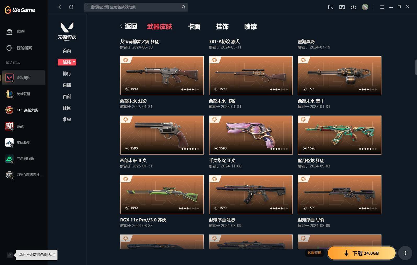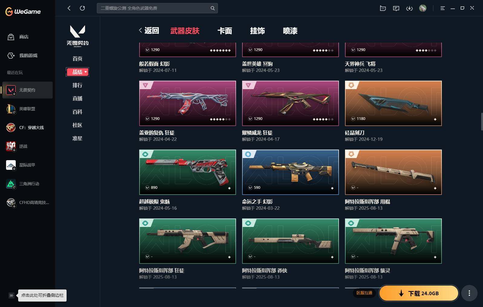 【16】【套装】:vct 2025 赛季套装,西部未来套装,混沌序曲套装,耀鳞威龙套装 【英雄】:幻棱,炼狱,维斯,暮蝶,钛狐,壹决,铁臂,捷风,雷兹,幽影,不死鸟,贤者,猎枭,蝰蛇,零,芮娜,奇乐,尚勃勒,霓虹,斯凯,夜露,星礈,k/o,海神,盖可,黑梦,钢锁 【近战 武器】:近战武器-魔术火花,近战武器-剥皮小刀,近战武器-vct 2025 爪刀,近战武器-rgx 11z pro//3.0 爪刀,近战武器-威龙之刃,近战武器-澄湖潋滟,近战武器-未来开拓者,近战武器-混沌大剑,近战武器-流星兵团 短剑,近战武器-超能偶像 应援棒,近战武器-超限闪存 匕首,近战武器-硅晶刻刀,近战武器-荒土机兵 热能刀,近战武器-天御刀,近战武器-影刃,近战武器-神圣领域 战刀,近战武器-魔术火花 【狂徒】:狂徒-艾沃莉的梦之翼,狂徒-混沌序曲,狂徒-机动狂飙,狂徒-偃月苍龙,狂徒-盖亚的复仇,狂徒-耀鳞威龙,狂徒-紫阙金琅,狂徒-奇幻朋克//3.0,狂徒-超能偶像,狂徒-荒土机兵,狂徒-流星兵团,狂徒-诡秘蛇影 【幻影】:幻影-781-a协议,幻影-源能者娱乐系统,幻影-破败军械,幻影-西部未来,幻影-般若假面,幻影-奇幻朋克//3.0,幻影-超限闪存,幻影-神圣领域,幻影-聚合之力,幻影-命运之手,幻影-纳米打击,幻影-末日之翼,幻影-西部未来 【戍卫】:戍卫-般若假面,戍卫-超能偶像,戍卫-浮光跃金,戍卫-逆冲蛮牛,戍卫-战术熊与伙伴们,戍卫-月球哨兵,戍卫-折光棱晶 【獠犬】:獠犬-781-a协议,獠犬-神圣领域,獠犬-采蜜小蜂队,獠犬-模拟赫兹,獠犬-逆冲蛮牛 【冥驹】:冥驹-混沌序曲,冥驹-盖世英雄,冥驹-荒土机兵,冥驹-复古浪潮,冥驹-模拟赫兹,冥驹-星云暗涌 【飞将】:飞将-西部未来,飞将-天界神兵,飞将-聚合之力,飞将-战术熊与伙伴们,飞将-末日之翼 【莽侠】:莽侠-rgx 11z pro//3.0,莽侠-超限闪存,莽侠-诡秘蛇影,莽侠-纤云弄巧,莽侠-月球哨兵 【战神】:战神-奇点,战神-神圣领域,战神-采蜜小蜂队,战神-浮光跃金,战神-深海水族 【奥丁】:奥丁-砰砰x特攻队,奥丁-西部未来,奥丁-流星兵团,奥丁-纳米打击,奥丁-末日之翼 【判官】:判官-超能偶像,判官-诡秘蛇影,判官-采蜜小蜂队,判官-纳米打击x 【雄鹿】:雄鹿-奇幻朋克,雄鹿-复古浪潮,雄鹿-模拟赫兹,雄鹿-逆冲蛮牛,雄鹿-月球哨兵 【骇灵】:骇灵-荒土机兵,骇灵-流星兵团,骇灵-珍珠棘贝,骇灵-浮光跃金,骇灵-星云暗涌 【蜂刺】:蜂刺-混沌序曲,蜂刺-超限闪存,蜂刺-聚合之力,蜂刺-深海水族,蜂刺-纤云弄巧,蜂刺-星云暗涌,蜂刺-折光棱晶 【标配】:标配-超能偶像,标配-荒土机兵,标配-浮光跃金,标配-战术熊与伙伴们,标配-折光棱晶 【vct手呛】:标配-vct x g2 【正义】:正义-机动狂飙,正义-千灵华绽,正义-西部未来,正义-超限闪存,正义-纳米打击,正义-纤云弄巧,正义-月球哨兵 【鬼魅】:鬼魅-源能者娱乐系统,鬼魅-破败军械,鬼魅-盖世英雄,鬼魅-耀鳞威龙,鬼魅-超越极限,鬼魅-流星兵团,鬼魅-采蜜小蜂队,鬼魅-模拟赫兹,鬼魅-星云暗涌 【狂怒】:狂怒-珍珠棘贝,狂怒-神圣领域,狂怒-聚合之力,狂怒-逆冲蛮牛,狂怒-战术熊与伙伴们 【短炮】:短炮-混沌序曲,短炮-深海水族,短炮-纤云弄巧,短炮-末日之翼 【卡面】:终章:激斗汉堡 卡面,进入射程 卡面,分崩离析 卡面,纳米打击 卡面,抑制技术 卡面,激斗汉堡 卡面,瓦娃脸雪糕 p2 卡面,从黄昏到黎明 卡面,荒土机兵 卡面,银弹猎手 卡面,逆冲蛮牛 卡面,《双城之战》拥抱 卡面,精灵大战 卡面,欢迎来到底城 卡面,南瓜盛典 卡面,vct cn首冠 卡面,唱片的故事 卡面,钢弓与箭弦 卡面,排除故障 卡面,战术桌游 卡面,悠享食光 卡面,修车达人 卡面,热舞环节 卡面,模拟赫兹 卡面,浮光跃金 卡面,超限闪存 卡面,维斯工牌 卡面,正义的化身 卡面,终章:生意人麦宝 卡面,铁之华 卡面,失而复得 卡面,时间到 卡面,最高舞台 卡面,复活专家 卡面,归乡 // 蝰蛇 卡面,超能偶像 卡面,生意人麦宝 卡面,音熊登场 卡面,声感陷阱设计图 卡面,红鳞松叶 卡面,钢锁工牌 卡面,战术小伙伴的夏日 卡面,采蜜小蜂队 卡面,聚合之力 卡面,梦幻奶茶 卡面,终章:打造专属狂徒 卡面,趁热吃 卡面,西装暴徒 卡面,失控边缘 卡面,哨卫者之领域 卡面,暮蝶工牌 卡面,战术熊与伙伴们 卡面,源能反应 卡面,流星兵团 卡面,纤云弄巧 卡面,暂别喧嚣 卡面,打造专属狂徒 卡面,零点嗅探设计图 卡面,瓦娃脸雪糕 卡面 ,vct x g2 卡面,沙雕爆能器 卡面,无畏契约go!第一卷:芮娜 卡面,深海水族 卡面,珍珠棘贝 卡面,复古浪潮 卡面,盖可工牌 卡面,清除名单 卡面,无畏契约go!第一卷:零 卡面,《双城之战》金克丝 卡面,代号红色 卡面,新兵报到 卡面,v契约 卡面,无畏契约 卡面 【喷漆】:小小心意 喷漆,战“素”兔 喷漆,宇宙的指引 喷漆,请求重启 喷漆,逆冲蛮牛 喷漆,纳米打击 喷漆,鼻尖上的蝴蝶 喷漆,简笔画黯兽 喷漆,独守蝰腹 喷漆,他们将落荒而逃 喷漆,通缉:战术企鹅 喷漆,荒土机兵 喷漆,别挡我吃球! 喷漆,嗨宝南瓜灯 喷漆,嘭! 喷漆,都算到了 喷漆,控场勿近 喷漆,皮蛋呼呼 喷漆,像素星礈 喷漆,图谋不轨的零 喷漆,小丑猫 喷漆,模拟赫兹 喷漆,高丽风情小熊 喷漆,蹲到一个 喷漆,全力集中 喷漆,超限闪存 喷漆,rua一下 喷漆,熊抱 喷漆,蛋糕还是爆能器? 喷漆,高丽风情小虎 喷漆,记在小本本 喷漆,防弹企鹅 喷漆,高丽风情小蛙 喷漆,又被闪了 喷漆,终极羞辱 喷漆,超级粉丝 喷漆,黯兽卖萌 喷漆,捷风差距 喷漆,惊声尖叫 喷漆,水晶球 喷漆,2021冠军巡回赛花火 喷漆,五人成星