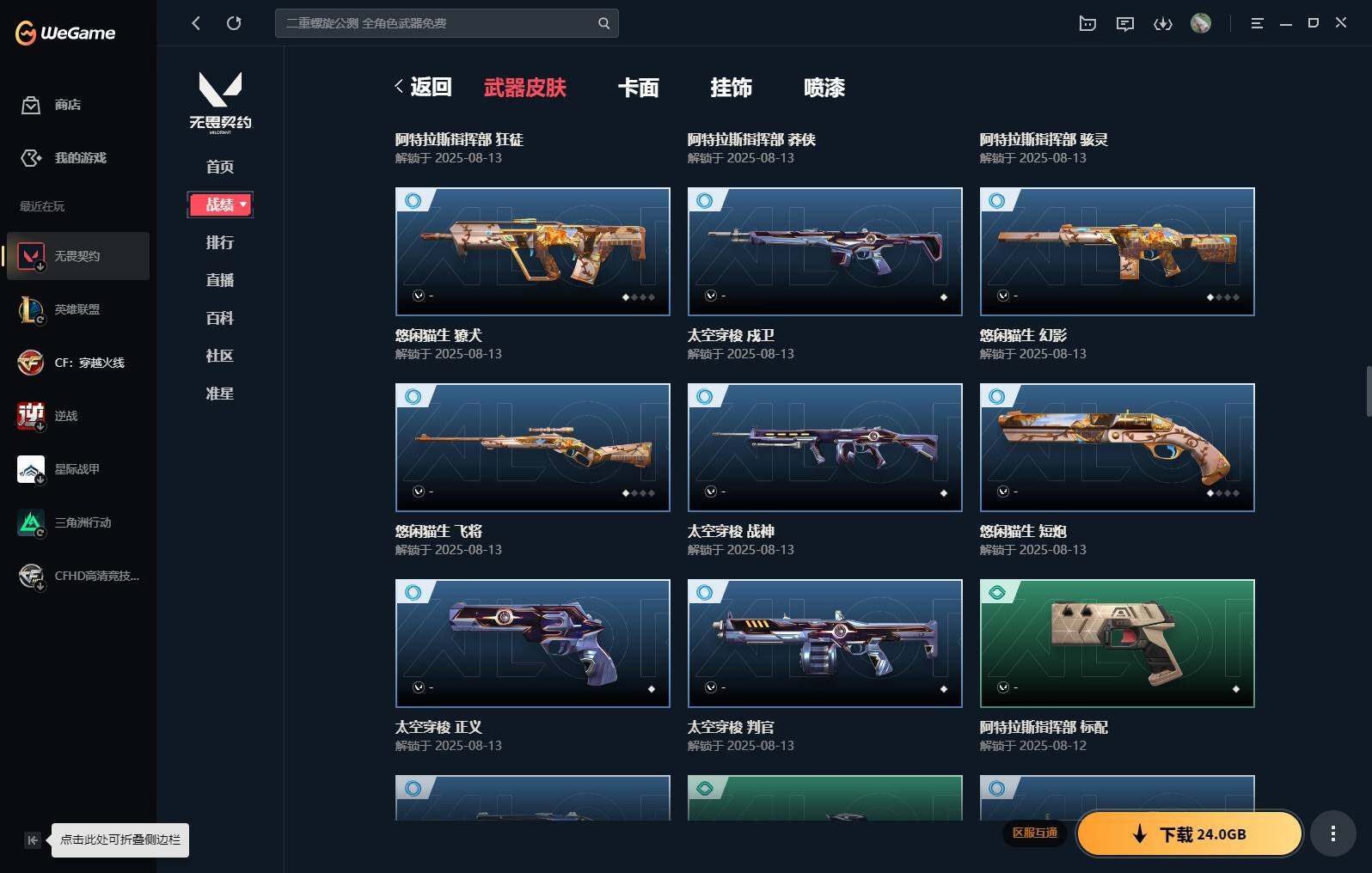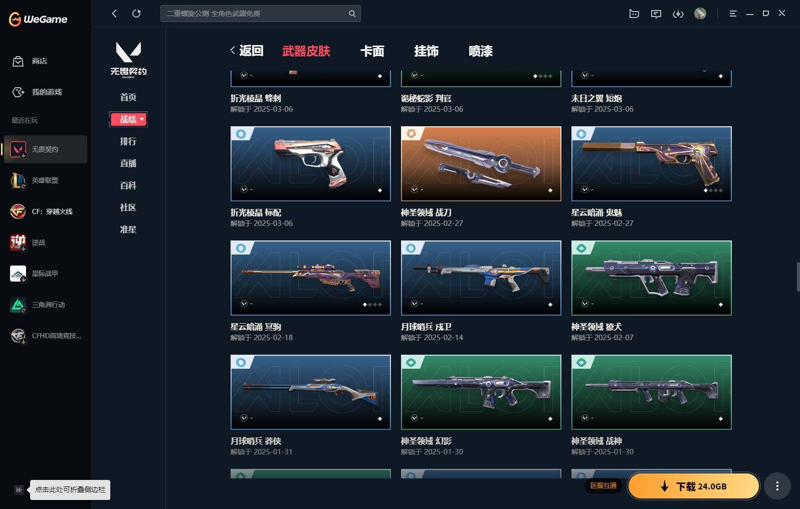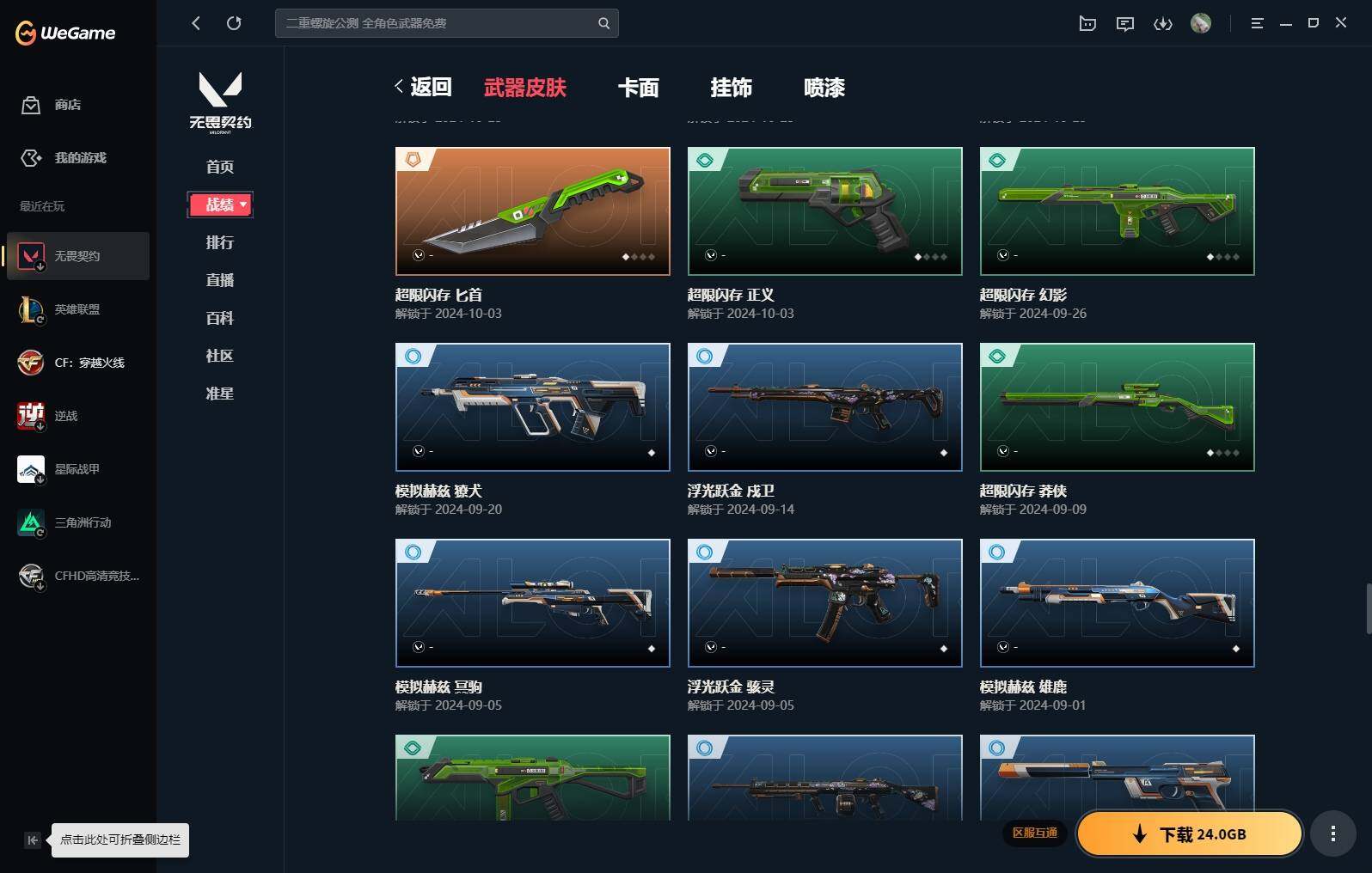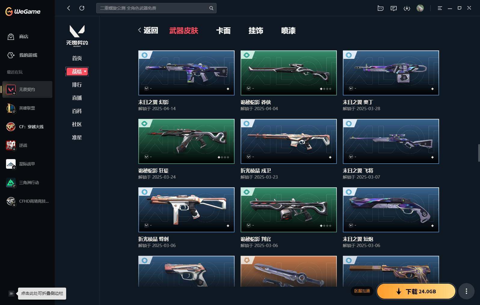 【16】【套装】:vct 2025 赛季套装,西部未来套装,混沌序曲套装,耀鳞威龙套装 【英雄】:幻棱,炼狱,维斯,暮蝶,钛狐,壹决,铁臂,捷风,雷兹,幽影,不死鸟,贤者,猎枭,蝰蛇,零,芮娜,奇乐,尚勃勒,霓虹,斯凯,夜露,星礈,k/o,海神,盖可,黑梦,钢锁 【近战 武器】:近战武器-魔术火花,近战武器-剥皮小刀,近战武器-vct 2025 爪刀,近战武器-rgx 11z pro//3.0 爪刀,近战武器-威龙之刃,近战武器-澄湖潋滟,近战武器-未来开拓者,近战武器-混沌大剑,近战武器-流星兵团 短剑,近战武器-超能偶像 应援棒,近战武器-超限闪存 匕首,近战武器-硅晶刻刀,近战武器-荒土机兵 热能刀,近战武器-天御刀,近战武器-影刃,近战武器-神圣领域 战刀,近战武器-魔术火花 【狂徒】:狂徒-艾沃莉的梦之翼,狂徒-混沌序曲,狂徒-机动狂飙,狂徒-偃月苍龙,狂徒-盖亚的复仇,狂徒-耀鳞威龙,狂徒-紫阙金琅,狂徒-奇幻朋克//3.0,狂徒-超能偶像,狂徒-荒土机兵,狂徒-流星兵团,狂徒-诡秘蛇影 【幻影】:幻影-781-a协议,幻影-源能者娱乐系统,幻影-破败军械,幻影-西部未来,幻影-般若假面,幻影-奇幻朋克//3.0,幻影-超限闪存,幻影-神圣领域,幻影-聚合之力,幻影-命运之手,幻影-纳米打击,幻影-末日之翼,幻影-西部未来 【戍卫】:戍卫-般若假面,戍卫-超能偶像,戍卫-浮光跃金,戍卫-逆冲蛮牛,戍卫-战术熊与伙伴们,戍卫-月球哨兵,戍卫-折光棱晶 【獠犬】:獠犬-781-a协议,獠犬-神圣领域,獠犬-采蜜小蜂队,獠犬-模拟赫兹,獠犬-逆冲蛮牛 【冥驹】:冥驹-混沌序曲,冥驹-盖世英雄,冥驹-荒土机兵,冥驹-复古浪潮,冥驹-模拟赫兹,冥驹-星云暗涌 【飞将】:飞将-西部未来,飞将-天界神兵,飞将-聚合之力,飞将-战术熊与伙伴们,飞将-末日之翼 【莽侠】:莽侠-rgx 11z pro//3.0,莽侠-超限闪存,莽侠-诡秘蛇影,莽侠-纤云弄巧,莽侠-月球哨兵 【战神】:战神-奇点,战神-神圣领域,战神-采蜜小蜂队,战神-浮光跃金,战神-深海水族 【奥丁】:奥丁-砰砰x特攻队,奥丁-西部未来,奥丁-流星兵团,奥丁-纳米打击,奥丁-末日之翼 【判官】:判官-超能偶像,判官-诡秘蛇影,判官-采蜜小蜂队,判官-纳米打击x 【雄鹿】:雄鹿-奇幻朋克,雄鹿-复古浪潮,雄鹿-模拟赫兹,雄鹿-逆冲蛮牛,雄鹿-月球哨兵 【骇灵】:骇灵-荒土机兵,骇灵-流星兵团,骇灵-珍珠棘贝,骇灵-浮光跃金,骇灵-星云暗涌 【蜂刺】:蜂刺-混沌序曲,蜂刺-超限闪存,蜂刺-聚合之力,蜂刺-深海水族,蜂刺-纤云弄巧,蜂刺-星云暗涌,蜂刺-折光棱晶 【标配】:标配-超能偶像,标配-荒土机兵,标配-浮光跃金,标配-战术熊与伙伴们,标配-折光棱晶 【vct手呛】:标配-vct x g2 【正义】:正义-机动狂飙,正义-千灵华绽,正义-西部未来,正义-超限闪存,正义-纳米打击,正义-纤云弄巧,正义-月球哨兵 【鬼魅】:鬼魅-源能者娱乐系统,鬼魅-破败军械,鬼魅-盖世英雄,鬼魅-耀鳞威龙,鬼魅-超越极限,鬼魅-流星兵团,鬼魅-采蜜小蜂队,鬼魅-模拟赫兹,鬼魅-星云暗涌 【狂怒】:狂怒-珍珠棘贝,狂怒-神圣领域,狂怒-聚合之力,狂怒-逆冲蛮牛,狂怒-战术熊与伙伴们 【短炮】:短炮-混沌序曲,短炮-深海水族,短炮-纤云弄巧,短炮-末日之翼 【卡面】:终章:激斗汉堡 卡面,进入射程 卡面,分崩离析 卡面,纳米打击 卡面,抑制技术 卡面,激斗汉堡 卡面,瓦娃脸雪糕 p2 卡面,从黄昏到黎明 卡面,荒土机兵 卡面,银弹猎手 卡面,逆冲蛮牛 卡面,《双城之战》拥抱 卡面,精灵大战 卡面,欢迎来到底城 卡面,南瓜盛典 卡面,vct cn首冠 卡面,唱片的故事 卡面,钢弓与箭弦 卡面,排除故障 卡面,战术桌游 卡面,悠享食光 卡面,修车达人 卡面,热舞环节 卡面,模拟赫兹 卡面,浮光跃金 卡面,超限闪存 卡面,维斯工牌 卡面,正义的化身 卡面,终章:生意人麦宝 卡面,铁之华 卡面,失而复得 卡面,时间到 卡面,最高舞台 卡面,复活专家 卡面,归乡 // 蝰蛇 卡面,超能偶像 卡面,生意人麦宝 卡面,音熊登场 卡面,声感陷阱设计图 卡面,红鳞松叶 卡面,钢锁工牌 卡面,战术小伙伴的夏日 卡面,采蜜小蜂队 卡面,聚合之力 卡面,梦幻奶茶 卡面,终章:打造专属狂徒 卡面,趁热吃 卡面,西装暴徒 卡面,失控边缘 卡面,哨卫者之领域 卡面,暮蝶工牌 卡面,战术熊与伙伴们 卡面,源能反应 卡面,流星兵团 卡面,纤云弄巧 卡面,暂别喧嚣 卡面,打造专属狂徒 卡面,零点嗅探设计图 卡面,瓦娃脸雪糕 卡面 ,vct x g2 卡面,沙雕爆能器 卡面,无畏契约go!第一卷:芮娜 卡面,深海水族 卡面,珍珠棘贝 卡面,复古浪潮 卡面,盖可工牌 卡面,清除名单 卡面,无畏契约go!第一卷:零 卡面,《双城之战》金克丝 卡面,代号红色 卡面,新兵报到 卡面,v契约 卡面,无畏契约 卡面 【喷漆】:小小心意 喷漆,战“素”兔 喷漆,宇宙的指引 喷漆,请求重启 喷漆,逆冲蛮牛 喷漆,纳米打击 喷漆,鼻尖上的蝴蝶 喷漆,简笔画黯兽 喷漆,独守蝰腹 喷漆,他们将落荒而逃 喷漆,通缉:战术企鹅 喷漆,荒土机兵 喷漆,别挡我吃球! 喷漆,嗨宝南瓜灯 喷漆,嘭! 喷漆,都算到了 喷漆,控场勿近 喷漆,皮蛋呼呼 喷漆,像素星礈 喷漆,图谋不轨的零 喷漆,小丑猫 喷漆,模拟赫兹 喷漆,高丽风情小熊 喷漆,蹲到一个 喷漆,全力集中 喷漆,超限闪存 喷漆,rua一下 喷漆,熊抱 喷漆,蛋糕还是爆能器? 喷漆,高丽风情小虎 喷漆,记在小本本 喷漆,防弹企鹅 喷漆,高丽风情小蛙 喷漆,又被闪了 喷漆,终极羞辱 喷漆,超级粉丝 喷漆,黯兽卖萌 喷漆,捷风差距 喷漆,惊声尖叫 喷漆,水晶球 喷漆,2021冠军巡回赛花火 喷漆,五人成星