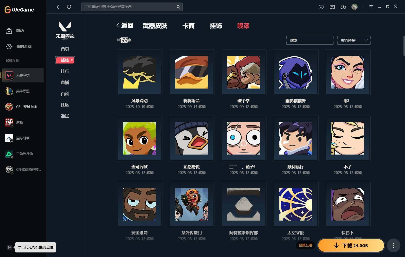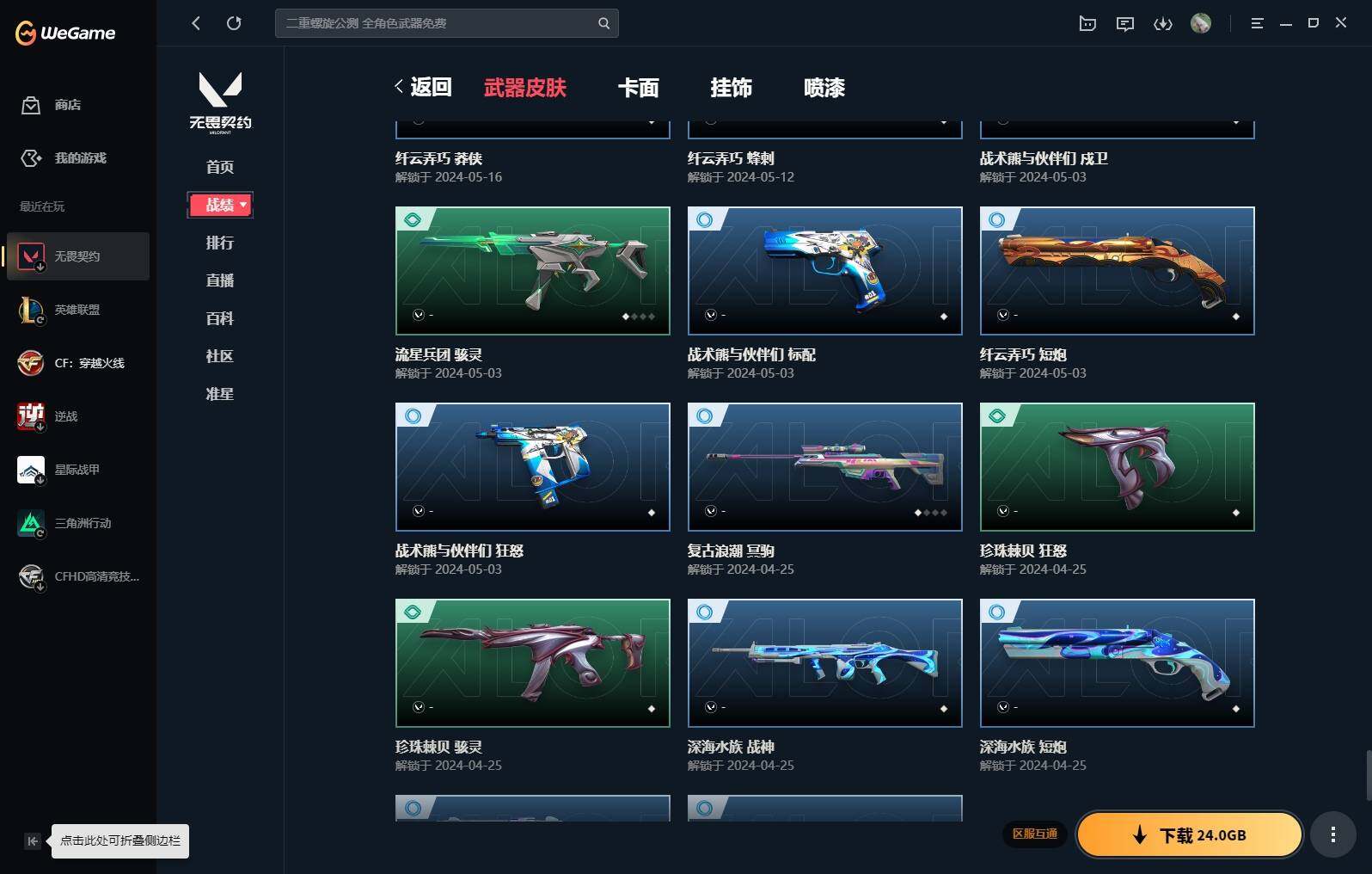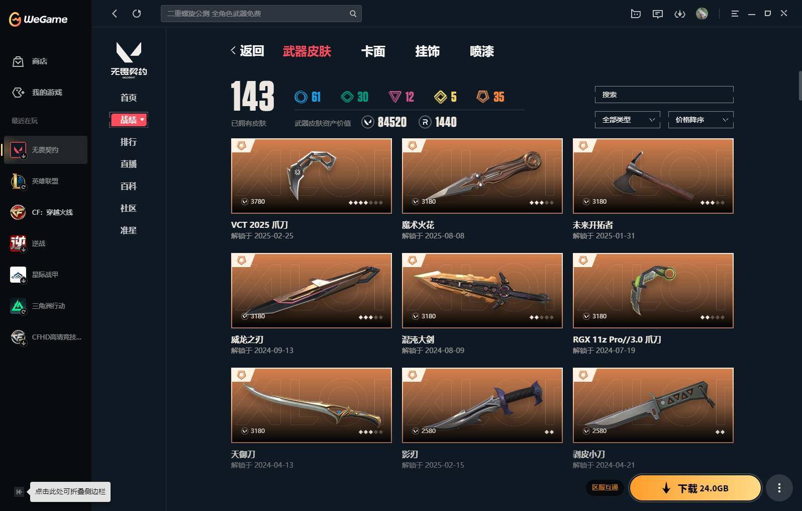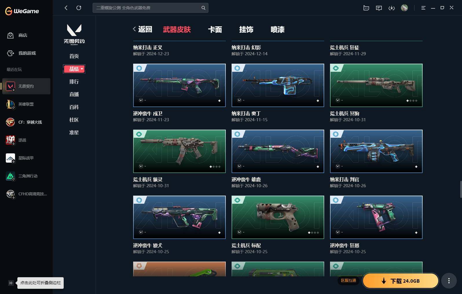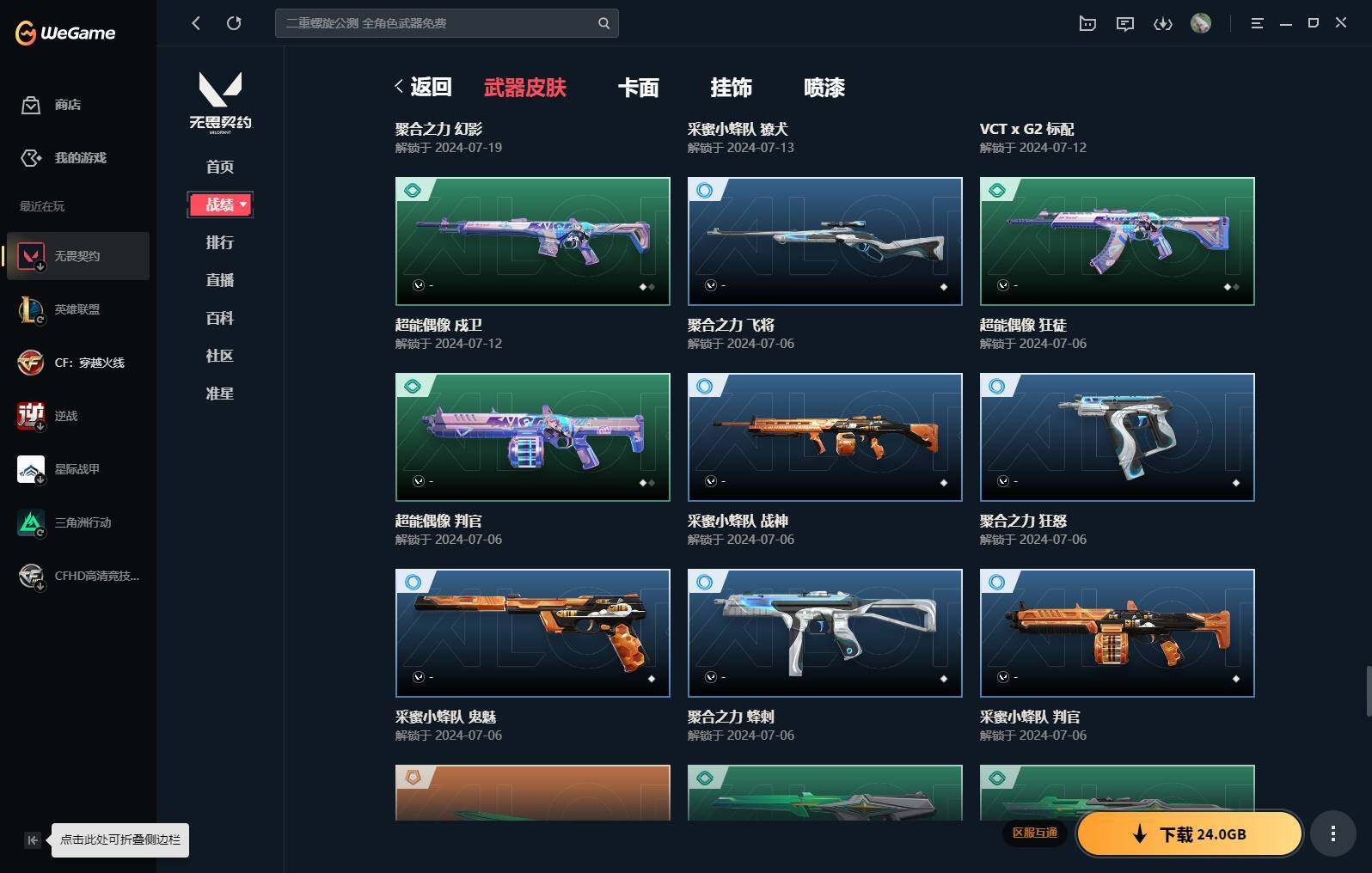 【16】【套装】:vct 2025 赛季套装,西部未来套装,混沌序曲套装,耀鳞威龙套装 【英雄】:幻棱,炼狱,维斯,暮蝶,钛狐,壹决,铁臂,捷风,雷兹,幽影,不死鸟,贤者,猎枭,蝰蛇,零,芮娜,奇乐,尚勃勒,霓虹,斯凯,夜露,星礈,k/o,海神,盖可,黑梦,钢锁 【近战 武器】:近战武器-魔术火花,近战武器-剥皮小刀,近战武器-vct 2025 爪刀,近战武器-rgx 11z pro//3.0 爪刀,近战武器-威龙之刃,近战武器-澄湖潋滟,近战武器-未来开拓者,近战武器-混沌大剑,近战武器-流星兵团 短剑,近战武器-超能偶像 应援棒,近战武器-超限闪存 匕首,近战武器-硅晶刻刀,近战武器-荒土机兵 热能刀,近战武器-天御刀,近战武器-影刃,近战武器-神圣领域 战刀,近战武器-魔术火花 【狂徒】:狂徒-艾沃莉的梦之翼,狂徒-混沌序曲,狂徒-机动狂飙,狂徒-偃月苍龙,狂徒-盖亚的复仇,狂徒-耀鳞威龙,狂徒-紫阙金琅,狂徒-奇幻朋克//3.0,狂徒-超能偶像,狂徒-荒土机兵,狂徒-流星兵团,狂徒-诡秘蛇影 【幻影】:幻影-781-a协议,幻影-源能者娱乐系统,幻影-破败军械,幻影-西部未来,幻影-般若假面,幻影-奇幻朋克//3.0,幻影-超限闪存,幻影-神圣领域,幻影-聚合之力,幻影-命运之手,幻影-纳米打击,幻影-末日之翼,幻影-西部未来 【戍卫】:戍卫-般若假面,戍卫-超能偶像,戍卫-浮光跃金,戍卫-逆冲蛮牛,戍卫-战术熊与伙伴们,戍卫-月球哨兵,戍卫-折光棱晶 【獠犬】:獠犬-781-a协议,獠犬-神圣领域,獠犬-采蜜小蜂队,獠犬-模拟赫兹,獠犬-逆冲蛮牛 【冥驹】:冥驹-混沌序曲,冥驹-盖世英雄,冥驹-荒土机兵,冥驹-复古浪潮,冥驹-模拟赫兹,冥驹-星云暗涌 【飞将】:飞将-西部未来,飞将-天界神兵,飞将-聚合之力,飞将-战术熊与伙伴们,飞将-末日之翼 【莽侠】:莽侠-rgx 11z pro//3.0,莽侠-超限闪存,莽侠-诡秘蛇影,莽侠-纤云弄巧,莽侠-月球哨兵 【战神】:战神-奇点,战神-神圣领域,战神-采蜜小蜂队,战神-浮光跃金,战神-深海水族 【奥丁】:奥丁-砰砰x特攻队,奥丁-西部未来,奥丁-流星兵团,奥丁-纳米打击,奥丁-末日之翼 【判官】:判官-超能偶像,判官-诡秘蛇影,判官-采蜜小蜂队,判官-纳米打击x 【雄鹿】:雄鹿-奇幻朋克,雄鹿-复古浪潮,雄鹿-模拟赫兹,雄鹿-逆冲蛮牛,雄鹿-月球哨兵 【骇灵】:骇灵-荒土机兵,骇灵-流星兵团,骇灵-珍珠棘贝,骇灵-浮光跃金,骇灵-星云暗涌 【蜂刺】:蜂刺-混沌序曲,蜂刺-超限闪存,蜂刺-聚合之力,蜂刺-深海水族,蜂刺-纤云弄巧,蜂刺-星云暗涌,蜂刺-折光棱晶 【标配】:标配-超能偶像,标配-荒土机兵,标配-浮光跃金,标配-战术熊与伙伴们,标配-折光棱晶 【vct手呛】:标配-vct x g2 【正义】:正义-机动狂飙,正义-千灵华绽,正义-西部未来,正义-超限闪存,正义-纳米打击,正义-纤云弄巧,正义-月球哨兵 【鬼魅】:鬼魅-源能者娱乐系统,鬼魅-破败军械,鬼魅-盖世英雄,鬼魅-耀鳞威龙,鬼魅-超越极限,鬼魅-流星兵团,鬼魅-采蜜小蜂队,鬼魅-模拟赫兹,鬼魅-星云暗涌 【狂怒】:狂怒-珍珠棘贝,狂怒-神圣领域,狂怒-聚合之力,狂怒-逆冲蛮牛,狂怒-战术熊与伙伴们 【短炮】:短炮-混沌序曲,短炮-深海水族,短炮-纤云弄巧,短炮-末日之翼 【卡面】:终章:激斗汉堡 卡面,进入射程 卡面,分崩离析 卡面,纳米打击 卡面,抑制技术 卡面,激斗汉堡 卡面,瓦娃脸雪糕 p2 卡面,从黄昏到黎明 卡面,荒土机兵 卡面,银弹猎手 卡面,逆冲蛮牛 卡面,《双城之战》拥抱 卡面,精灵大战 卡面,欢迎来到底城 卡面,南瓜盛典 卡面,vct cn首冠 卡面,唱片的故事 卡面,钢弓与箭弦 卡面,排除故障 卡面,战术桌游 卡面,悠享食光 卡面,修车达人 卡面,热舞环节 卡面,模拟赫兹 卡面,浮光跃金 卡面,超限闪存 卡面,维斯工牌 卡面,正义的化身 卡面,终章:生意人麦宝 卡面,铁之华 卡面,失而复得 卡面,时间到 卡面,最高舞台 卡面,复活专家 卡面,归乡 // 蝰蛇 卡面,超能偶像 卡面,生意人麦宝 卡面,音熊登场 卡面,声感陷阱设计图 卡面,红鳞松叶 卡面,钢锁工牌 卡面,战术小伙伴的夏日 卡面,采蜜小蜂队 卡面,聚合之力 卡面,梦幻奶茶 卡面,终章:打造专属狂徒 卡面,趁热吃 卡面,西装暴徒 卡面,失控边缘 卡面,哨卫者之领域 卡面,暮蝶工牌 卡面,战术熊与伙伴们 卡面,源能反应 卡面,流星兵团 卡面,纤云弄巧 卡面,暂别喧嚣 卡面,打造专属狂徒 卡面,零点嗅探设计图 卡面,瓦娃脸雪糕 卡面 ,vct x g2 卡面,沙雕爆能器 卡面,无畏契约go!第一卷:芮娜 卡面,深海水族 卡面,珍珠棘贝 卡面,复古浪潮 卡面,盖可工牌 卡面,清除名单 卡面,无畏契约go!第一卷:零 卡面,《双城之战》金克丝 卡面,代号红色 卡面,新兵报到 卡面,v契约 卡面,无畏契约 卡面 【喷漆】:小小心意 喷漆,战“素”兔 喷漆,宇宙的指引 喷漆,请求重启 喷漆,逆冲蛮牛 喷漆,纳米打击 喷漆,鼻尖上的蝴蝶 喷漆,简笔画黯兽 喷漆,独守蝰腹 喷漆,他们将落荒而逃 喷漆,通缉:战术企鹅 喷漆,荒土机兵 喷漆,别挡我吃球! 喷漆,嗨宝南瓜灯 喷漆,嘭! 喷漆,都算到了 喷漆,控场勿近 喷漆,皮蛋呼呼 喷漆,像素星礈 喷漆,图谋不轨的零 喷漆,小丑猫 喷漆,模拟赫兹 喷漆,高丽风情小熊 喷漆,蹲到一个 喷漆,全力集中 喷漆,超限闪存 喷漆,rua一下 喷漆,熊抱 喷漆,蛋糕还是爆能器? 喷漆,高丽风情小虎 喷漆,记在小本本 喷漆,防弹企鹅 喷漆,高丽风情小蛙 喷漆,又被闪了 喷漆,终极羞辱 喷漆,超级粉丝 喷漆,黯兽卖萌 喷漆,捷风差距 喷漆,惊声尖叫 喷漆,水晶球 喷漆,2021冠军巡回赛花火 喷漆,五人成星