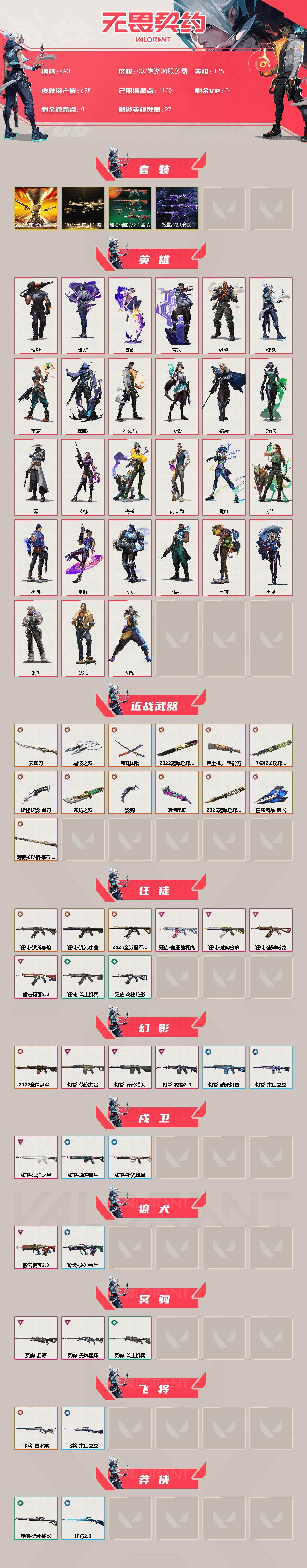 [14565741]【套装】:2025全球冠军赛套装,2022全球冠军赛套装,般若假面//2.0套装,掠影//2.0套装 【英雄】:幻棱,炼狱,维斯,暮蝶,钛狐,壹决,铁臂,捷风,雷兹,幽影,不死鸟,贤者,猎枭,蝰蛇,零,芮娜,奇乐,尚勃勒,霓虹,斯凯,夜露,星礈,k/o,海神,盖可,黑梦,钢锁 【近战 武器】:近战武器-2025全球冠军赛 蝴蝶刀,近战武器-2022全球冠军赛 蝴蝶刀,近战武器-泡泡电锯,近战武器-影钩,近战武器-5周年//公测重制版 苍龙之刃,近战武器-rgx 11z pro//2.0 蝴蝶刀,近战武器-黑波之刃,近战武器-鬼丸国纲,近战武器-荒土机兵 热能刀,近战武器-天御刀,近战武器-诡秘蛇影 军刀,近战武器-日耀风暴 遗器,近战武器-阿特拉斯指挥部 甩棍 【狂徒】:狂徒-2025全球冠军赛,狂徒-洪荒怒焰,狂徒-混沌序曲,狂徒-般若假面//2.0,狂徒-盖亚的复仇,狂徒-耀鳞威龙,狂徒-紫阙金琅,狂徒-荒土机兵,狂徒-诡秘蛇影 【幻影】:幻影-2022全球冠军赛,幻影-异形猎人,幻影-侦察力量,幻影-掠影//2.0,幻影-纳米打击,幻影-末日之翼 【戍卫】:戍卫-海洋之星,戍卫-逆冲蛮牛,戍卫-折光棱晶 【獠犬】:獠犬-般若假面//2.0,獠犬-逆冲蛮牛 【冥驹】:冥驹-起源,冥驹-无垠星环,冥驹-荒土机兵 【飞将】:飞将-塑水宗,飞将-末日之翼 【莽侠】:莽侠-诡秘蛇影,莽侠-神罚//2.0 【战神】:战神-般若假面//2.0 【奥丁】:奥丁-掠影//2.0,奥丁-纳米打击,奥丁-末日之翼 【判官】:判官-诡秘蛇影,判官-纳米打击x 【雄鹿】:雄鹿-紫阙金琅//2.0,雄鹿-逆冲蛮牛 【骇灵】:骇灵-侦察力量,骇灵-掠影//2.0,骇灵-荒土机兵 【蜂刺】:蜂刺-折光棱晶 【标配】:标配-源能者危机001,标配-荒土机兵,标配-折光棱晶 【正义】:正义-千灵华绽,正义-西部未来,正义-超限闪存,正义-纳米打击,正义-游戏结束 【鬼魅】:鬼魅-奇点//2.0,鬼魅-掠影//2.0,鬼魅-诡秘蛇影 【狂怒】:狂怒-般若假面//2.0,狂怒-逆冲蛮牛 【短炮】:短炮-末日之翼 【卡面】:终章:激斗汉堡 卡面,进入射程 卡面,分崩离析 卡面,纳米打击 卡面,抑制技术 卡面,激斗汉堡 卡面,瓦娃脸雪糕 p2 卡面,从黄昏到黎明 卡面,荒土机兵 卡面,银弹猎手 卡面,