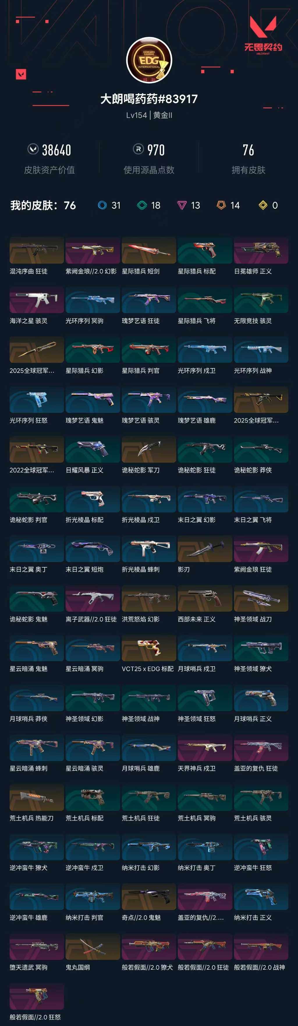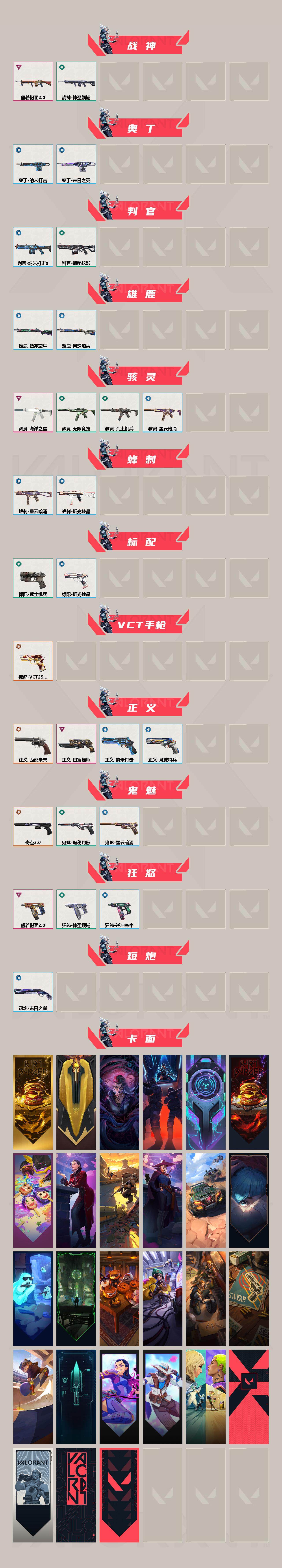 [14567974]【套装】:2025全球冠军赛套装,般若假面//2.0套装 【英雄】:幻棱,炼狱,维斯,暮蝶,钛狐,壹决,铁臂,捷风,雷兹,幽影,不死鸟,贤者,猎枭,蝰蛇,零,芮娜,奇乐,尚勃勒,霓虹,斯凯,夜露,星礈,k/o,海神,盖可,黑梦,钢锁 【近战 武器】:近战武器-2025全球冠军赛 蝴蝶刀,近战武器-鬼丸国纲,近战武器-荒土机兵 热能刀,近战武器-影刃,近战武器-诡秘蛇影 军刀,近战武器-神圣领域 战刀,近战武器-星际猎兵 短剑 【狂徒】:狂徒-2025全球冠军赛,狂徒-混沌序曲,狂徒-般若假面//2.0,狂徒-盖亚的复仇,狂徒-紫阙金琅,狂徒-离子武器//2.0,狂徒-荒土机兵,狂徒-诡秘蛇影 【幻影】:幻影-2022全球冠军赛,幻影-洪荒怒焰,幻影-盖亚的复仇//2.0,幻影-紫阙金琅//2.0,幻影-神圣领域,幻影-纳米打击,幻影-末日之翼 【戍卫】:戍卫-天界神兵,戍卫-逆冲蛮牛,戍卫-月球哨兵,戍卫-折光棱晶 【獠犬】:獠犬-般若假面//2.0,獠犬-神圣领域,獠犬-逆冲蛮牛 【冥驹】:冥驹-堕天遗武,冥驹-荒土机兵,冥驹-星云暗涌 【飞将】:飞将-末日之翼 【莽侠】:莽侠-诡秘蛇影,莽侠-月球哨兵 【战神】:战神-般若假面//2.0,战神-神圣领域 【奥丁】:奥丁-纳米打击,奥丁-末日之翼 【判官】:判官-诡秘蛇影,判官-纳米打击x 【雄鹿】:雄鹿-逆冲蛮牛,雄鹿-月球哨兵 【骇灵】:骇灵-海洋之星,骇灵-荒土机兵,骇灵-无限竞技,骇灵-星云暗涌 【蜂刺】:蜂刺-星云暗涌,蜂刺-折光棱晶 【标配】:标配-荒土机兵,标配-折光棱晶 【vct手呛】:标配-vct25 x edg 【正义】:正义-西部未来,正义-日冕雄师,正义-纳米打击,正义-月球哨兵 【鬼魅】:鬼魅-奇点//2.0,鬼魅-诡秘蛇影,鬼魅-星云暗涌 【狂怒】:狂怒-般若假面//2.0,狂怒-神圣领域,狂怒-逆冲蛮牛 【短炮】:短炮-末日之翼 【卡面】:终章:激斗汉堡 卡面,进入射程 卡面,分崩离析 卡面,纳米打击 卡面,抑制技术 卡面,激斗汉堡 卡面,瓦娃脸雪糕 p2 卡面,从黄昏到黎明 卡面,荒土机兵 卡面,银弹猎手 卡面,逆冲蛮牛 卡面,《双城之战》拥抱 卡面,精灵大战 卡面,欢迎来到底城 卡面,南瓜盛典 卡面,排除故障 卡面,修车达人 卡面,正义的化身 卡面,clutch 卡面,零点嗅探设