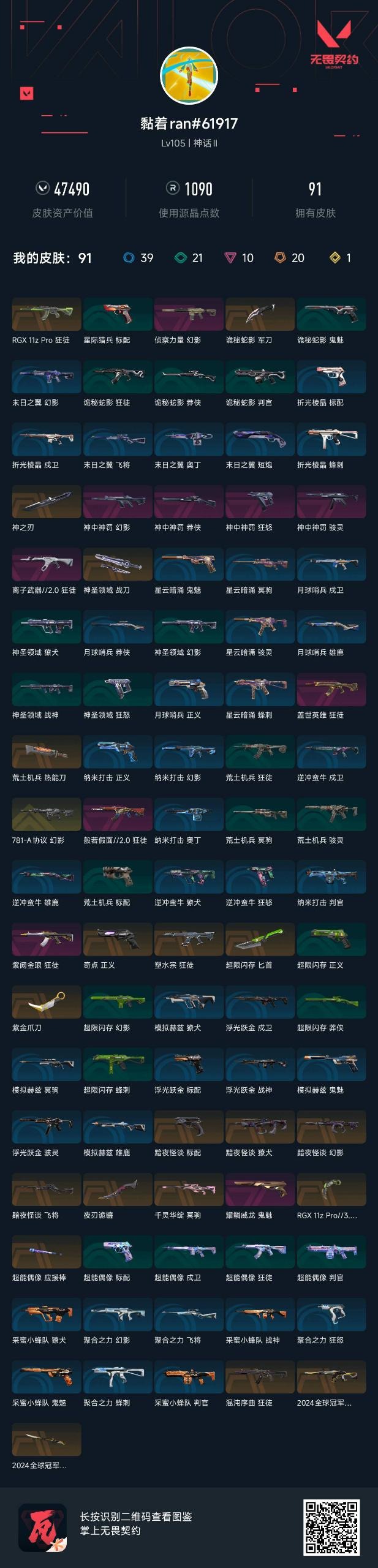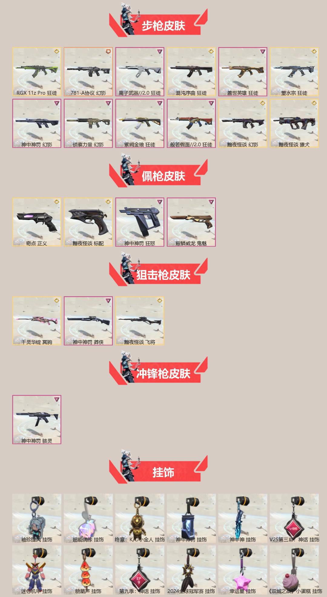 [14579237]20橙皮 1金皮 10紫皮 91皮肤 28英雄 111卡面 1090已用源晶 神话段位 【亮点皮肤】:幻影-2024全球冠军赛战刀-2024全球冠军赛 【套装】:黯夜怪谈套装神罚套装神中神罚套装2024全球冠军赛套装 【近战武器皮肤】:神之刃匕首-超限闪存夜刃诡镰诡秘蛇影神圣领域 战刀荒土机兵热能刀紫金爪刀爪刀-rgx 11z pro 3.0超能偶像 应援棒 【佩呛皮肤】:标配-黯夜怪谈狂怒-神中神罚正义-奇点鬼魅-耀鳞威龙 【冲锋呛皮肤】:骇灵-神中神罚 【步呛皮肤】:幻影-黯夜怪谈獠犬-黯夜怪谈狂徒-混沌序曲狂徒-离子武器2.0幻影-神中神罚狂徒-rgx 11z pro狂徒-般若假面//2.0狂徒-紫阙金琅狂徒-塑水宗狂徒-盖世英雄幻影-781-a协议幻影-侦察力量 【狙击呛皮肤】:莽侠-神中神罚飞将-黯夜怪谈冥驹-千灵华绽 【挂饰】:超能偶像挂饰袖珍捷风挂饰幸运星挂饰神中神罚挂饰神中神挂饰双城之战小蛋糕挂饰v25第三幕神话挂饰2024全球冠军赛挂饰第九季神话挂饰糖葫芦挂饰终章ko小金人挂饰迷你机甲挂饰