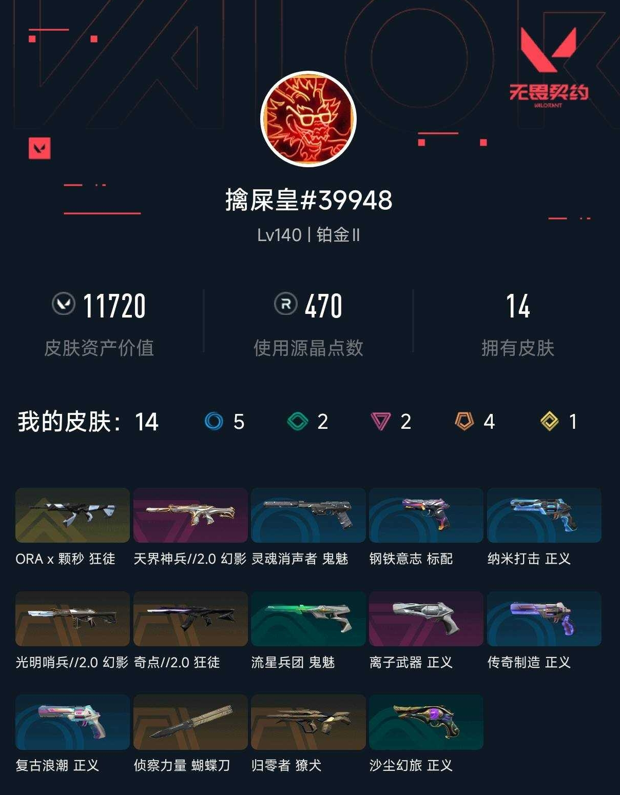 【无畏契约】【yhwww7173】等级:140,已用无畏点11720,已用源晶点470,橙皮:幻影-光明哨兵2.0|獠犬-归零者|近战-侦察力量 蝴蝶刀|狂徒-奇点2.0__紫皮:幻影-天界神兵2.0|正义-离子武器__蓝皮:正义-复古浪潮|鬼魅-灵魂消声者|正义-纳米打击|正义-传奇制造|标配-钢铁意志__段位:铂金__绿皮:鬼魅-流星兵团|正义-沙尘幻旅__英雄:尚勃勒|维斯|黑梦|暮蝶|盖可|壹决|幽影|夜露|炼狱|贤者|猎枭|钛狐|芮娜|零|捷风|不死鸟|幻棱|雷兹|禁灭__金皮:狂徒-a x 颗秒