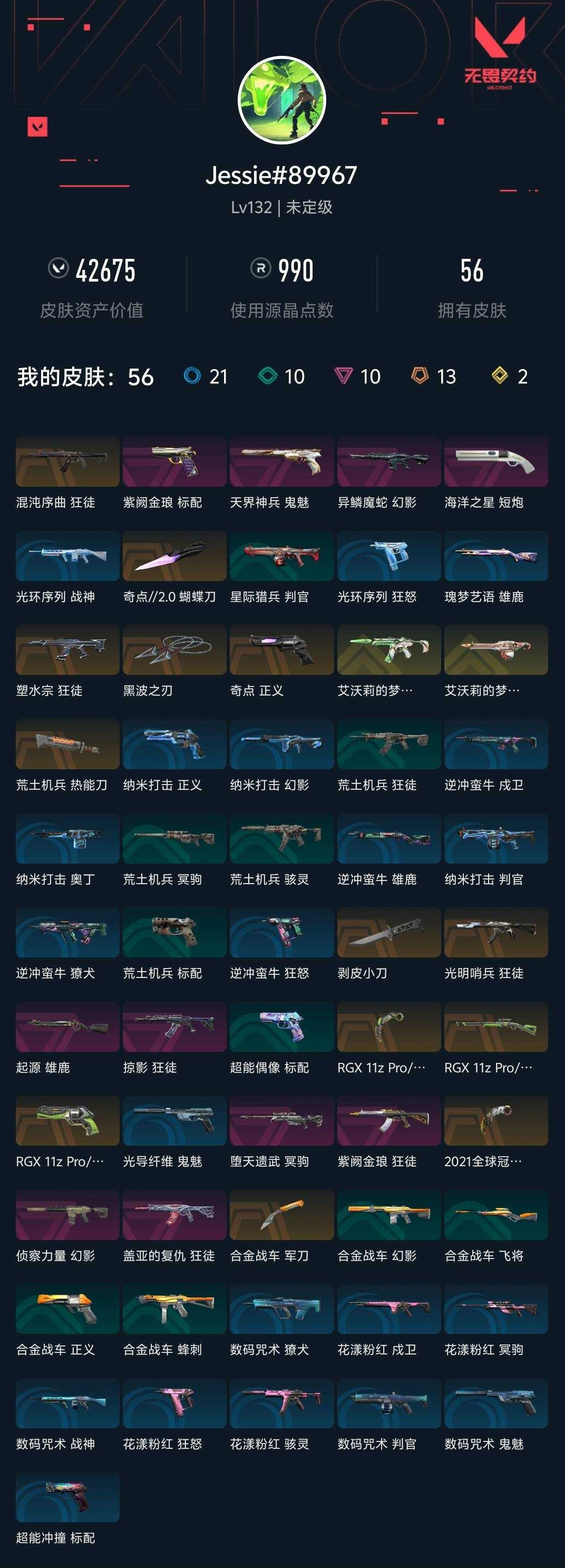【无畏契约】【yhwww7156】等级:132,已用无畏点42675,已用源晶点990,金皮:奥丁-艾沃莉的梦之翼|骇灵-艾沃莉的梦之翼__橙皮:近战-2021全球冠军赛 爪刀|近战-rgx 11z pro3.0 爪刀|近战-剥皮小刀|近战-黑波之刃|莽侠-rgx 11z pro3.0|狂徒-塑水宗|狂徒-光明哨兵|狂徒-混沌序曲|正义-奇点|正义-rgx 11z pro3.0|近战-合金战车 军刀|近战-奇点2.0 蝴蝶刀|近战-荒土机兵 热能刀__紫皮:标配-紫阙金琅|短炮-海洋之星|鬼魅-天界神兵|幻影-侦察力量|狂徒-盖亚的复仇|冥驹-堕天遗武|狂徒-紫阙金琅|雄鹿-起源|狂徒-掠影|幻影-异鳞魔蛇__蓝皮:鬼魅-光导纤维|标配-超能冲撞|狂怒-花漾粉红|骇灵-花漾粉红|戍卫-花漾粉红|冥驹-花漾粉红|战神-数码咒术|獠犬-数码咒术|判官-数码咒术|鬼魅-数码咒术|判官-纳米打击|正义-纳米打击|奥丁-纳米打击|幻影-纳米打击|雄鹿-逆冲蛮牛|狂怒-逆冲蛮牛|戍卫-逆冲蛮牛|獠犬-逆冲蛮牛|狂怒-光环序列|战神-光环序列|雄鹿-瑰梦艺语__段位:未定级__绿皮:蜂刺-合金战车|正义-合金战车|幻影-合金战车|飞将-合金战车|狂徒-荒土机兵|标配-荒土机兵|骇灵-荒土机兵|冥驹-荒土机兵|标配-超能偶像|判官-星际猎兵__英雄:尚勃勒|维斯|黑梦|斯凯|暮蝶|盖可|霓虹|壹决|星礈|k/o|幽影|夜露|钢锁|海神|奇乐|炼狱|铁臂|贤者|猎枭|钛狐|芮娜|零|捷风|蝰蛇|不死鸟|幻棱|雷兹