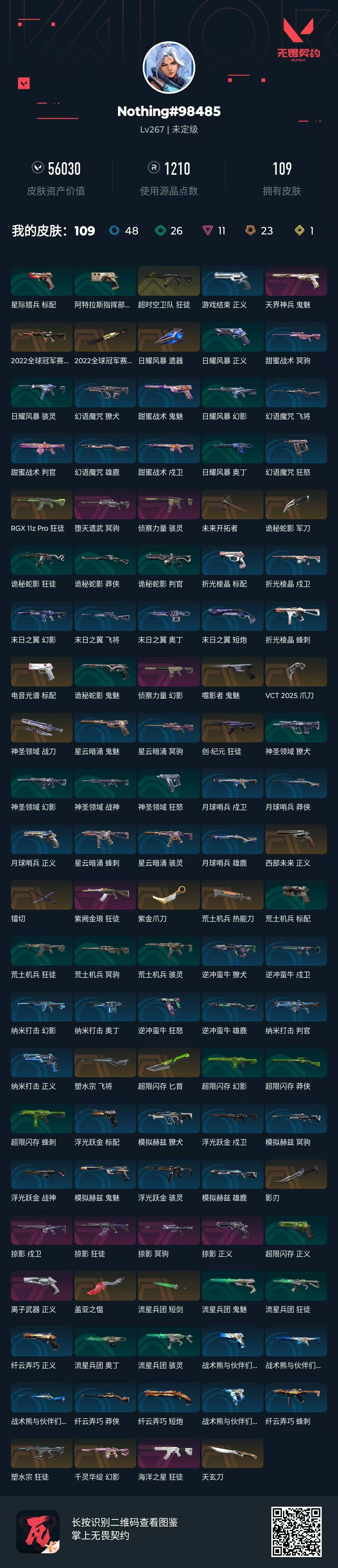 [14637800]s190928 (2022全球冠军赛套装/掠影套装)无畏契约/267等级/未定级段位/27英雄/109皮肤/资产56030/已使用r点1210/剩余r点140/2022全球冠军赛-幻影2022全球冠军赛-蝴蝶刀,rgx-11z-pro-狂徒,创·纪元-狂徒,千灵华绽-幻影,塑水宗-狂徒,超时空卫队-狂徒,紫阙金琅-狂徒,侦察力量-幻影,海洋之星-狂徒,日耀风暴-遗器,诡秘蛇影-军刀,vct-2025-爪刀,神圣领域-战刀,荒土机兵-热能刀,超限闪存-匕首,流星兵团-短剑,未来开拓者,镭切,紫金爪刀,天玄刀,盖亚之愠,塑水宗-飞将,堕天遗武-冥驹,侦察力量-骇灵,电音光谱-标配,噬影者-鬼魅,西部未来-正义,天界神兵-鬼魅,离子武器-正义