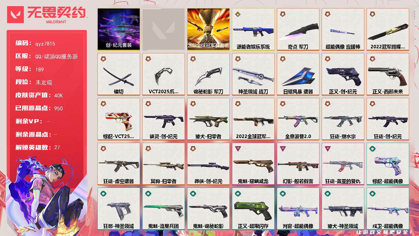 22冠军套-创纪元-套-qyz7815-亮点皮肤:-幻影-2022全球冠军赛蝴蝶刀-2022全球冠军赛-套装:-创纪元套装vct-2025赛季礼包2022全球冠军赛-近战武器皮肤:-军刀-奇点超能偶像-应援棒镭切神圣领域-战刀vct-2025-爪刀诡秘蛇影-步呛皮肤:-狂徒-盖亚的复仇獠犬-归零者狂徒-塑水宗幻影-般若假面幻影-源能者娱乐系统狂徒-全息波普//20狂徒-创纪元狂徒-虚空遗器-佩呛皮肤:-鬼魅-耀鳞威龙正义-创纪元标配-vct25xag正义-西部未来-狙击呛皮肤:-冥驹-归零者莽侠-创纪元-冲锋呛皮肤:-骇灵-创纪元-亮点:-【qyz7815】【套装】:2022全球冠军赛套装,vct-2025-赛季套装,创纪元套装【英雄】:幻棱,炼狱,维斯,暮蝶,钛狐,壹决,铁臂,捷风,雷兹,幽影,不死鸟,贤者,猎枭,蝰蛇,零,芮娜,奇乐,尚勃勒,霓虹,斯凯,夜露,星礈,k/o,海神,盖可,黑梦,钢锁【近战-武器】:近战武器-2022全球冠军赛-蝴蝶刀,近战武器-vct-2025-爪刀,近战武器-奇点-军刀,近战武器-镭切,近战武器-超能偶像-应援棒,近战武器-诡秘蛇影-军刀,近战武器-神圣领域-战刀,近战武器-日耀风暴-遗器【狂徒】:狂徒-全息波普//20,狂徒-塑水宗,狂徒-创纪元,狂徒-虚空遗器,狂徒-盖亚的复仇,狂徒-超能偶像,狂徒-诡秘蛇影【幻影】:幻影-源能者娱乐系统,幻影-2022全球冠军赛,幻影-般若假面,幻影-神圣领域,幻影-聚合之力,幻影-末日之翼【戍卫】:戍卫-超能偶像,戍卫-月球哨兵,戍卫-折光棱晶【獠犬】:獠犬-归零者,獠犬-神圣领域,獠犬-采蜜小蜂队【冥驹】:冥驹-归零者,冥驹-星云暗涌【飞将】:飞将-聚合之力,飞将-末日之翼【莽侠】:莽侠-创纪元,莽侠-诡秘蛇影,莽侠-月球哨兵【战神】:战神-神圣领域,战神-采蜜小蜂队【奥丁】:奥丁-末日之翼【判官】:判官-超能偶像,判官-诡秘蛇影,判官-采蜜小蜂队【雄鹿】:雄鹿-月球哨兵【骇灵】:骇灵-创纪元,骇灵-星云暗涌【蜂刺】:蜂刺-聚合之力,蜂刺-星云暗涌,蜂刺-折光棱晶【标配】:标配-超能偶像,标配-折光棱晶【vct手呛】:标配-vct25-x-ag【正义】:正义-创纪元,正义-西部未来,正义-超限闪存,正义-