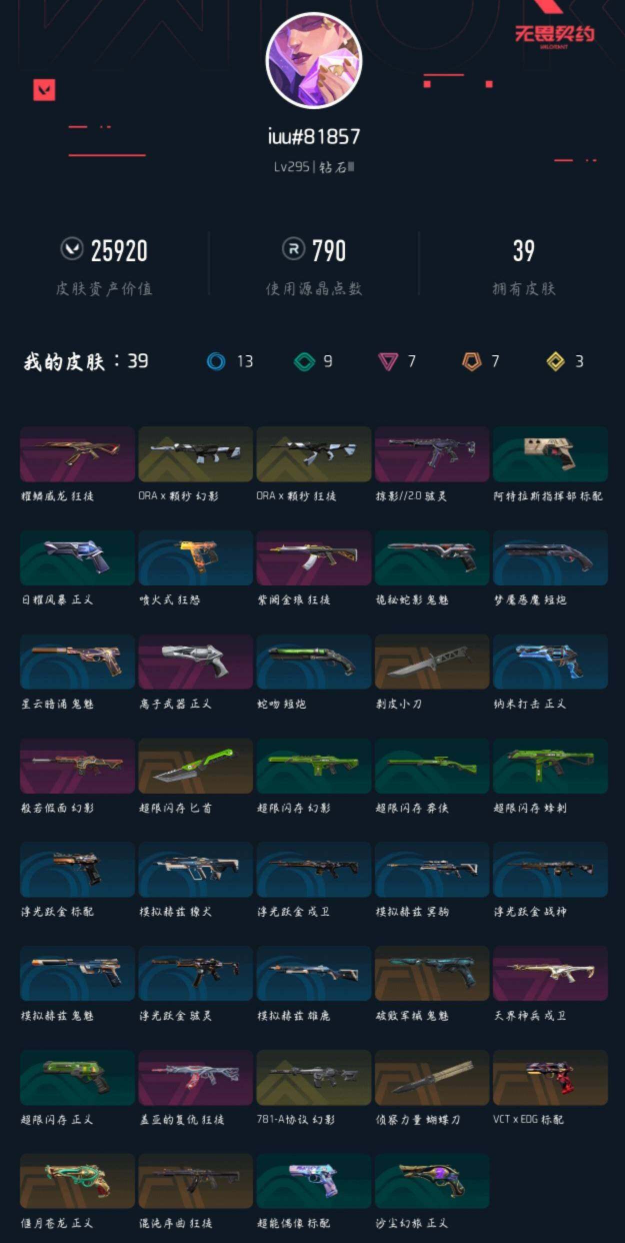 [14657432]【套装】:vctxedg 队伍套装 【英雄】:幻棱,炼狱,维斯,暮蝶,钛狐,壹决,铁臂,捷风,雷兹,幽影,不死鸟,贤者,猎枭,蝰蛇,零,芮娜,奇乐,尚勃勒,霓虹,斯凯,夜露,星礈,k/o,海神,盖可,黑梦,钢锁 【近战 武器】:近战武器-侦察力量 蝴蝶刀,近战武器-剥皮小刀,近战武器-超限闪存 匕首 【狂徒】:狂徒-混沌序曲,狂徒-a x 颗秒,狂徒-盖亚的复仇,狂徒-耀鳞威龙,狂徒-紫阙金琅 【幻影】:幻影-781-a协议,幻影-a x 颗秒,幻影-般若假面,幻影-超限闪存 【戍卫】:戍卫-天界神兵,戍卫-浮光跃金 【獠犬】:獠犬-模拟赫兹 【冥驹】:冥驹-模拟赫兹 【莽侠】:莽侠-超限闪存 【战神】:战神-浮光跃金 【雄鹿】:雄鹿-模拟赫兹 【骇灵】:骇灵-掠影//2.0,骇灵-浮光跃金 【蜂刺】:蜂刺-超限闪存 【标配】:标配-超能偶像,标配-浮光跃金 【vct手呛】:标配-vct x edg 【正义】:正义-偃月苍龙,正义-离子武器,正义-超限闪存,正义-沙尘幻旅,正义-纳米打击 【鬼魅】:鬼魅-破败军械,鬼魅-诡秘蛇影,鬼魅-模拟赫兹,鬼魅-星云暗涌 【狂怒】:狂怒-喷火式 【短炮】:短炮-梦魇恶魔,短炮-蛇吻 【卡面】:终章:激斗汉堡 卡面,进入射程 卡面,抑制技术 卡面,荒土机兵 卡面,《双城之战》拥抱 卡面,精灵大战 卡面,欢迎来到底城 卡面,南瓜盛典 卡面,唱片的故事 卡面,钢弓与箭弦 卡面,排除故障 卡面,战术桌游 卡面,悠享食光 卡面,修车达人 卡面,模拟赫兹 卡面,浮光跃金 卡面,超限闪存 卡面,维斯工牌 卡面,正义的化身 卡面,至黑之夜 卡面,终章:生意人麦宝 卡面,铁之华 卡面,时间到 卡面,最高舞台 卡面,音熊登场 卡面,树懒大作战 卡面,声感陷阱设计图 卡面,梦幻奶茶 卡面,零点嗅探设计图 卡面,无畏契约:蝰蛇 卡面,瓦娃脸雪糕 卡面 ,沙雕爆能器 卡面,无畏契约go!第一卷:芮娜 卡面,清除名单 卡面,无畏契约go!第一卷:零 卡面,龍记 卡面,比比看谁快? 卡面,《双城之战》金克丝 卡面,完美调谐 卡面 ,暗呛 卡面,无畏契约go!第一卷:贤者 卡面,终章:黑影先生的咖啡! 卡面,铁臂vs雷兹 卡面,夯实根基 卡面,"luie" 卡面,热烈欢迎 卡面,铁臂设计图 卡面,代号红色 卡面,新兵报到 卡面,v契约 卡面,无畏契