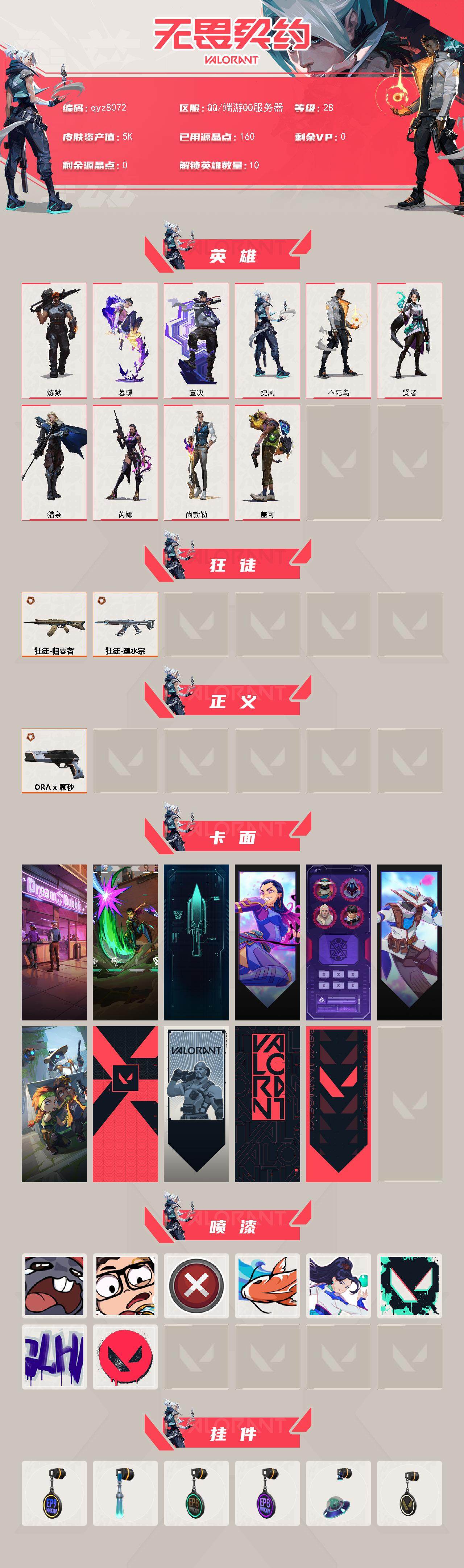 塑水宗-狂徒-ax颗秒-正义-归零者-狂徒-qyz8072-步呛皮肤:-狂徒-归零者狂徒-塑水宗-佩呛皮肤:-正义-ax颗秒-亮点:-【qyz8072】【英雄】:炼狱,暮蝶,壹决,捷风,不死鸟,贤者,猎枭,芮娜,尚勃勒,盖可【狂徒】:狂徒-归零者,狂徒-塑水宗【正义】:正义-a-x-颗秒【卡面】:梦幻奶茶-卡面,源能反应-卡面,零点嗅探设计图-卡面,无畏契约go!第一卷:芮娜-卡面,清除名单-卡面,无畏契约go!第一卷:零-卡面,别冒尖-卡面,代号红色-卡面,新兵报到-卡面,v契约-卡面,无畏契约-卡面【喷漆】:我的刀呢?-喷漆,新潮流-喷漆,买装还是存钱-喷漆,红鳞-喷漆,无畏契约go!第一卷:贤者-喷漆,胜利属于无畏契约-喷漆,glhf-喷漆,无畏契约-喷漆【挂饰】:第九季//第一幕-纪念币-挂饰,荧光棒-挂饰,第八季//第三幕-纪念币-挂饰,第八季//第二幕-纪念币-挂饰-,天外飞客-挂饰,无畏契约-纪念币-挂饰