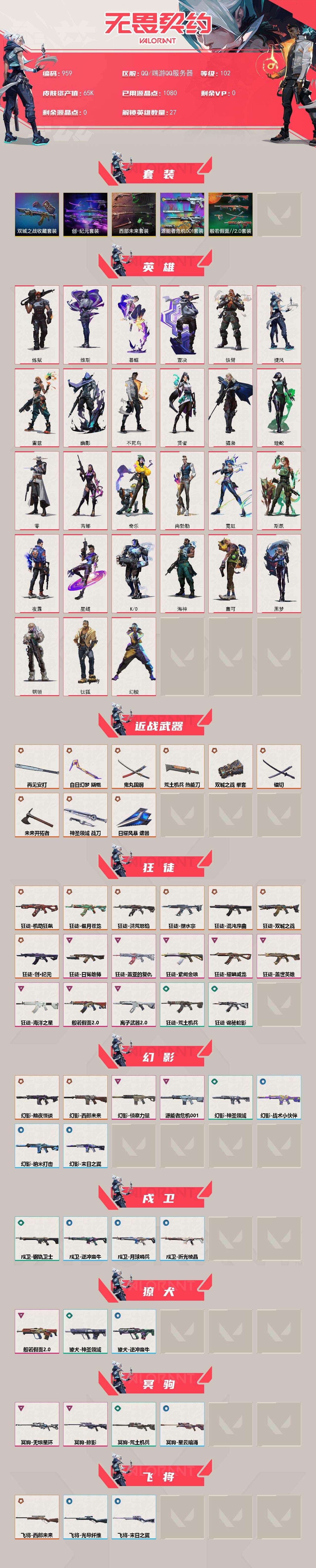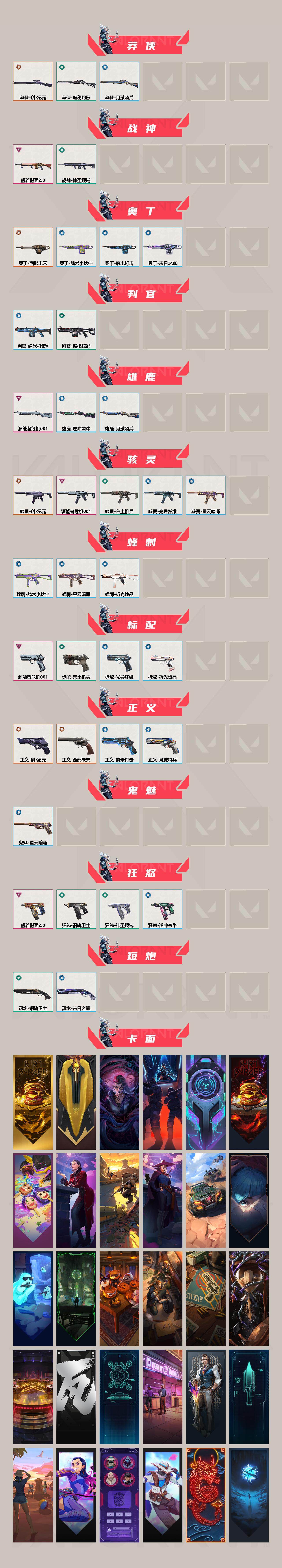 [14680056]【套装】:西部未来套装,创·纪元套装,《双城之战》收藏套装,般若假面//2.0套装,源能者危机001套装 【英雄】:幻棱,炼狱,维斯,暮蝶,钛狐,壹决,铁臂,捷风,雷兹,幽影,不死鸟,贤者,猎枭,蝰蛇,零,芮娜,奇乐,尚勃勒,霓虹,斯凯,夜露,星礈,k/o,海神,盖可,黑梦,钢锁 【近战 武器】:近战武器-镭切,近战武器-鬼丸国纲,近战武器-双城之战 拳套,近战武器-未来开拓者,近战武器-荒土机兵 热能刀,近战武器-白日幻梦 撬棍,近战武器-再见安打,近战武器-神圣领域 战刀,近战武器-日耀风暴 遗器 【狂徒】:狂徒-洪荒怒焰,狂徒-混沌序曲,狂徒-机动狂飙,狂徒-双城之战,狂徒-塑水宗,狂徒-偃月苍龙,狂徒-创·纪元,狂徒-般若假面//2.0,狂徒-盖世英雄,狂徒-盖亚的复仇,狂徒-海洋之星,狂徒-日冕雄师,狂徒-耀鳞威龙,狂徒-紫阙金琅,狂徒-离子武器//2.0,狂徒-荒土机兵,狂徒-诡秘蛇影 【幻影】:幻影-黯夜怪谈,幻影-西部未来,幻影-源能者危机001,幻影-侦察力量,幻影-神圣领域,幻影-纳米打击,幻影-战术小伙伴,幻影-末日之翼,幻影-西部未来 【戍卫】:戍卫-钢轨卫士,戍卫-逆冲蛮牛,戍卫-月球哨兵,戍卫-折光棱晶 【獠犬】:獠犬-般若假面//2.0,獠犬-神圣领域,獠犬-逆冲蛮牛 【冥驹】:冥驹-掠影,冥驹-无垠星环,冥驹-荒土机兵,冥驹-星云暗涌 【飞将】:飞将-西部未来,飞将-光导纤维,飞将-末日之翼 【莽侠】:莽侠-创·纪元,莽侠-诡秘蛇影,莽侠-月球哨兵 【战神】:战神-般若假面//2.0,战神-神圣领域 【奥丁】:奥丁-西部未来,奥丁-纳米打击,奥丁-战术小伙伴,奥丁-末日之翼 【判官】:判官-诡秘蛇影,判官-纳米打击x 【雄鹿】:雄鹿-源能者危机001,雄鹿-逆冲蛮牛,雄鹿-月球哨兵 【骇灵】:骇灵-创·纪元,骇灵-源能者危机001,骇灵-荒土机兵,骇灵-光导纤维,骇灵-星云暗涌 【蜂刺】:蜂刺-战术小伙伴,蜂刺-星云暗涌,蜂刺-折光棱晶 【标配】:标配-源能者危机001,标配-荒土机兵,标配-光导纤维,标配-折光棱晶 【正义】:正义-创·纪元,正义-西部未来,正义-纳米打击,正义-月球哨兵 【鬼魅】:鬼魅-星云暗涌 【狂怒】:狂怒-般若假面//2.0,狂怒-钢轨卫士,狂怒-神圣领域,狂怒-逆冲蛮牛 【短炮】:短炮-钢轨卫士,短炮-末