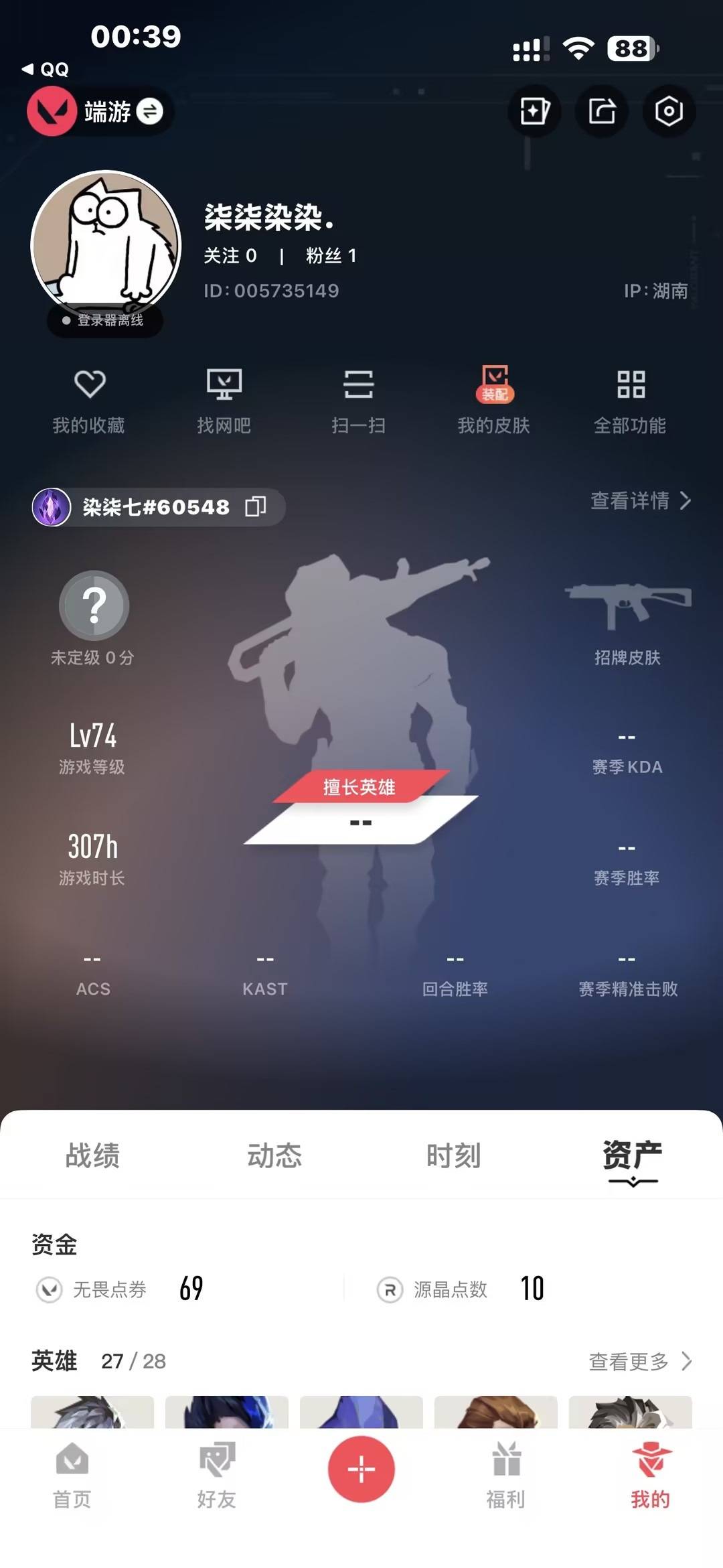 12橙皮 1金皮 38皮肤 27英雄 67卡面 660已用源晶 未定级段位 【套装】千灵华绽套装奇点//2.0套装 【近战武器皮肤】落英飞旋爪刀-rgx 11z pro 3.0匕首-超限闪存短剑-流星兵团蝴蝶刀-奇点//2.0 【佩呛皮肤】鬼魅-奇点//2.0正义-千灵华绽标配-