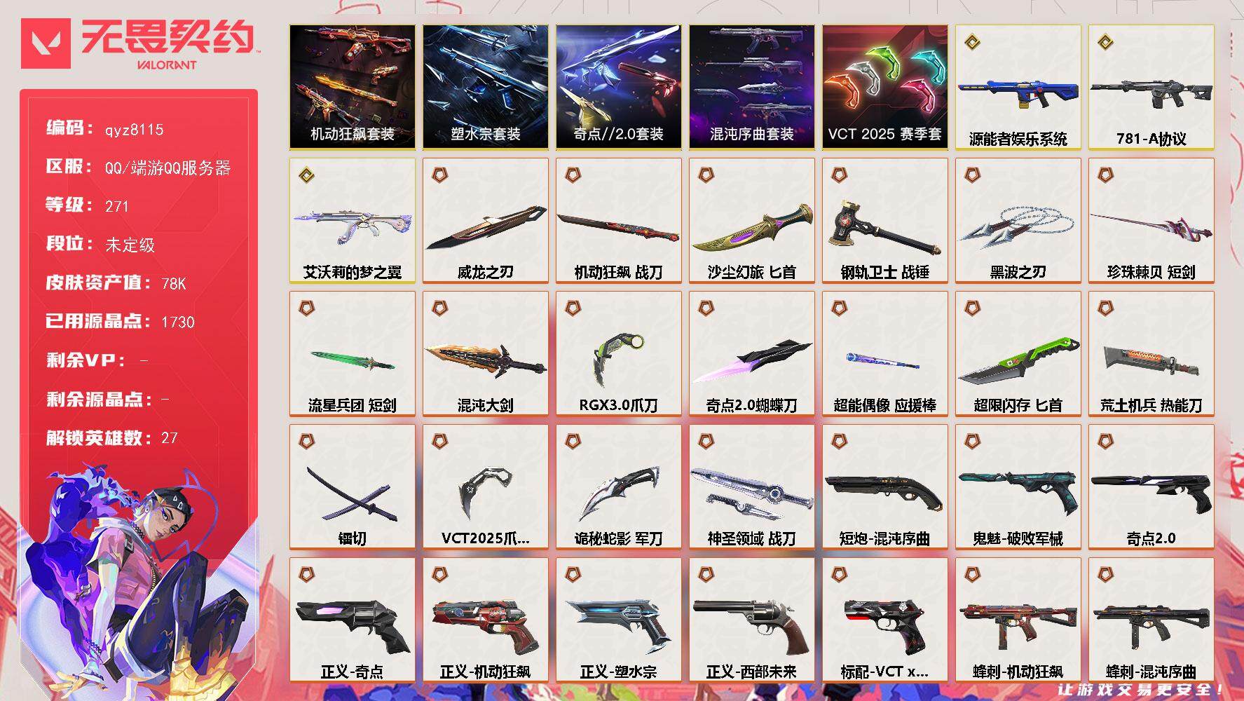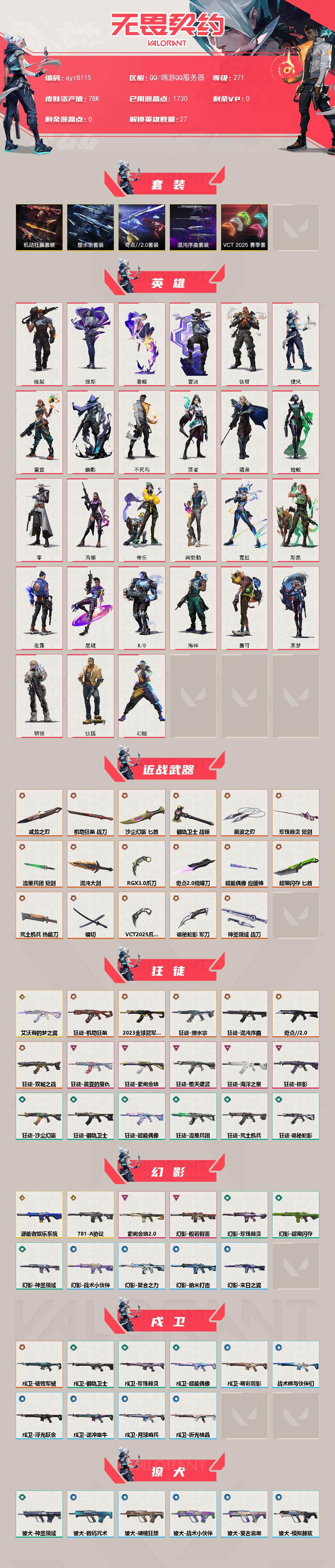 精品特价号-喜欢的来吧-嘎嘎合适-qyz8115-亮点皮肤:-狂徒-2023全球冠军赛-套装:-机动狂飙套装塑水宗套装混沌序曲套装奇点//20套装vct-2025赛季礼包-近战武器皮肤:-匕首-沙尘幻旅机动狂飙战刀黑波之刃威龙之刃短剑-珍珠棘贝超能偶像-应援棒爪刀-rgx-11z-pro-30混沌大剑短剑-流星兵团战锤-钢轨卫士匕首-超限闪存蝴蝶刀-奇点//20荒土机兵热能刀镭切神圣领域-战刀vct-2025-爪刀诡秘蛇影-步呛皮肤:-狂徒-紫阙金琅狂徒-盖亚的复仇狂徒-机动狂飙幻影-紫阙金琅20戍卫-破败军械狂徒-塑水宗幻影-781-a协议狂徒-堕天遗武幻影-般若假面狂徒-海洋之星幻影-源能者娱乐系统狂徒-艾沃莉的梦之翼狂徒-混沌序曲狂徒-奇点//20狂徒-掠影狂徒-双城之战-佩呛皮肤:-正义-奇点正义-机动狂飙鬼魅-破败军械正义-塑水宗标配-vctxg2短炮-混沌序曲鬼魅-奇点//20正义-西部未来-狙击呛皮肤:-飞将-塑水宗冥驹-离子武器冥驹-混沌序曲-冲锋呛皮肤:-蜂刺-机动狂飙骇灵-塑水宗蜂刺-混沌序曲-霰弹呛皮肤:-雄鹿-机动狂飙-机呛皮肤:-战神-奇点奥丁-砰砰x特攻队-亮点:-【qyz8115】【套装】:vct-2025-赛季套装,混沌序曲套装,塑水宗套装,奇点//20套装,机动狂飙套装【英雄】:幻棱,炼狱,维斯,暮蝶,钛狐,壹决,铁臂,捷风,雷兹,幽影,不死鸟,贤者,猎枭,蝰蛇,零,芮娜,奇乐,尚勃勒,霓虹,斯凯,夜露,星礈,k/o,海神,盖可,黑梦,钢锁【近战-武器】:近战武器-奇点//20-蝴蝶刀,近战武器-vct-2025-爪刀,近战武器-rgx-11z-pro//30-爪刀,近战武器-黑波之刃,近战武器-镭切,近战武器-威龙之刃,近战武器-珍珠棘贝-短剑,近战武器-混沌大剑,近战武器-流星兵团-短剑,近战武器-超能偶像-应援棒,近战武器-超限闪存-匕首,近战武器-钢轨卫士-战锤,近战武器-荒土机兵-热能刀,近战武器-机动狂飙-战刀,近战武器-沙尘幻旅-匕首,近战武器-诡秘蛇影-军刀,近战武器-神圣领域-战刀【狂徒】:狂徒-艾沃莉的梦之翼,狂徒-2023全球冠军赛,狂徒-混沌序曲,狂徒-机动狂飙,狂徒-奇点//20,狂徒-双城之战,狂徒-塑水宗,狂徒-堕天遗武,狂