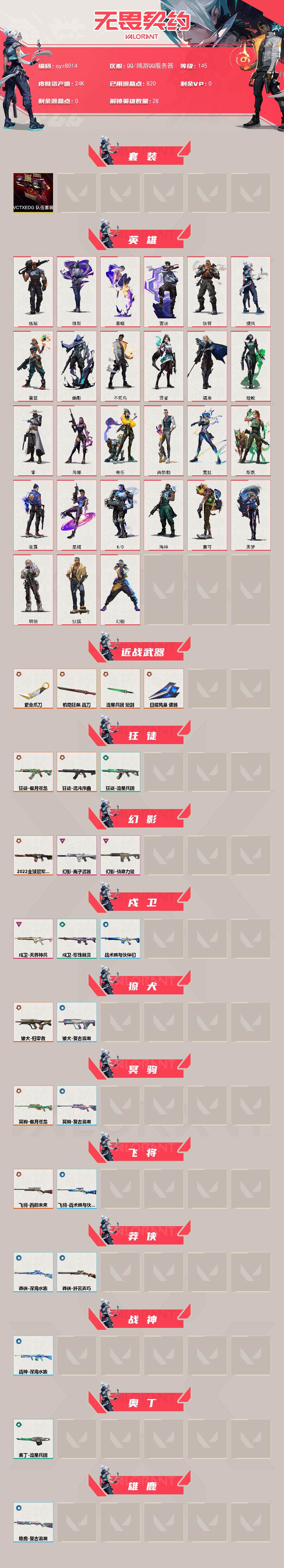 22冠军-紫金爪-混沌ak-qyz8014-亮点皮肤:-幻影-2022全球冠军赛-套装:-vctcn2025套装-近战武器皮肤:-机动狂飙战刀紫金爪刀短剑-流星兵团-步呛皮肤:-狂徒-偃月苍龙幻影-侦察力量獠犬-归零者戍卫-天界神兵幻影-离子武器狂徒-混沌序曲-佩呛皮肤:-鬼魅-天界神兵正义-塑水宗标配-vctxedg-狙击呛皮肤:-冥驹-偃月苍龙飞将-西部未来-亮点:-【qyz8014】【套装】:vctxedg-队伍套装【英雄】:幻棱,炼狱,维斯,暮蝶,钛狐,壹决,铁臂,捷风,雷兹,幽影,不死鸟,贤者,猎枭,蝰蛇,零,芮娜,奇乐,尚勃勒,霓虹,斯凯,夜露,星礈,k/o,海神,盖可,黑梦,钢锁【近战-武器】:近战武器-紫金爪刀,近战武器-流星兵团-短剑,近战武器-机动狂飙-战刀,近战武器-日耀风暴-遗器【狂徒】:狂徒-混沌序曲,狂徒-偃月苍龙,狂徒-流星兵团【幻影】:幻影-2022全球冠军赛,幻影-离子武器,幻影-侦察力量【戍卫】:戍卫-天界神兵,戍卫-珍珠棘贝,戍卫-战术熊与伙伴们【獠犬】:獠犬-归零者,獠犬-复古浪潮【冥驹】:冥驹-偃月苍龙,冥驹-复古浪潮【飞将】:飞将-西部未来,飞将-战术熊与伙伴们【莽侠】:莽侠-深海水族,莽侠-纤云弄巧【战神】:战神-深海水族【奥丁】:奥丁-流星兵团【雄鹿】:雄鹿-复古浪潮【骇灵】:骇灵-流星兵团,骇灵-珍珠棘贝【蜂刺】:蜂刺-深海水族,蜂刺-纤云弄巧【标配】:标配-超能偶像,标配-战术熊与伙伴们【vct手呛】:标配-vct-x-edg【正义】:正义-塑水宗,正义-纤云弄巧【鬼魅】:鬼魅-天界神兵,鬼魅-流星兵团,鬼魅-星云暗涌【狂怒】:狂怒-珍珠棘贝,狂怒-战术熊与伙伴们【短炮】:短炮-深海水族,短炮-纤云弄巧【卡面】:南瓜盛典-卡面,vct-cn首冠-卡面,修车达人-卡面,热舞环节-卡面,正义的化身-卡面,终章:生意人麦宝-卡面,铁之华-卡面,时间到-卡面,最高舞台-卡面,树懒大作战-卡面,声感陷阱设计图-卡面,梦幻奶茶-卡面,终章:打造专属狂徒-卡面,趁热吃-卡面,西装暴徒-卡面,失控边缘-卡面,哨卫者之领域-卡面,暮蝶工牌-卡面,战术熊与伙伴们-卡面,源能反应-卡面,流星兵团-卡面,纤云弄巧-卡面,暂别喧嚣-卡面,打造专属狂徒-卡面,零点嗅探设计图-卡面,脚踝终结者-卡面-,夜