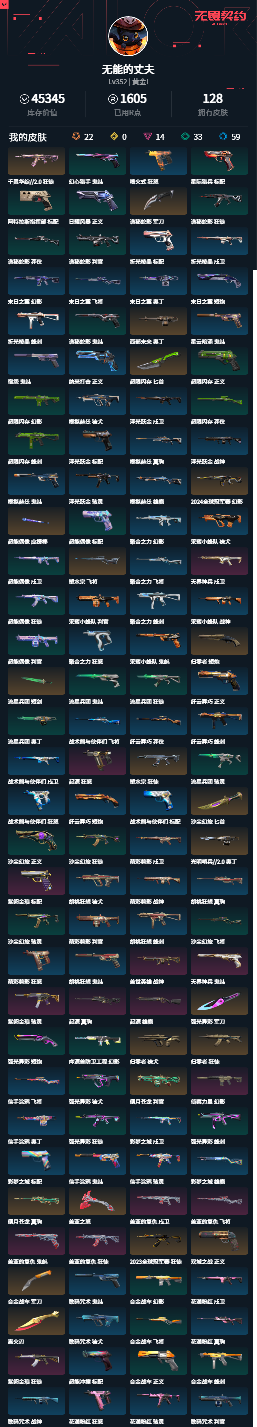599/【区服】qq/【游戏等级】lv352/【游戏段位】黄金i/【剩余v点】28/【剩余r点】185/【皮肤资产价值】45345/【使用r点】1605/【英雄数量】28/【皮肤数量】128/【卡面数量】193/【喷漆数量】180/【挂件数量】140/【拥有套装】盖亚的复仇套装(盖亚的复仇-狂徒
