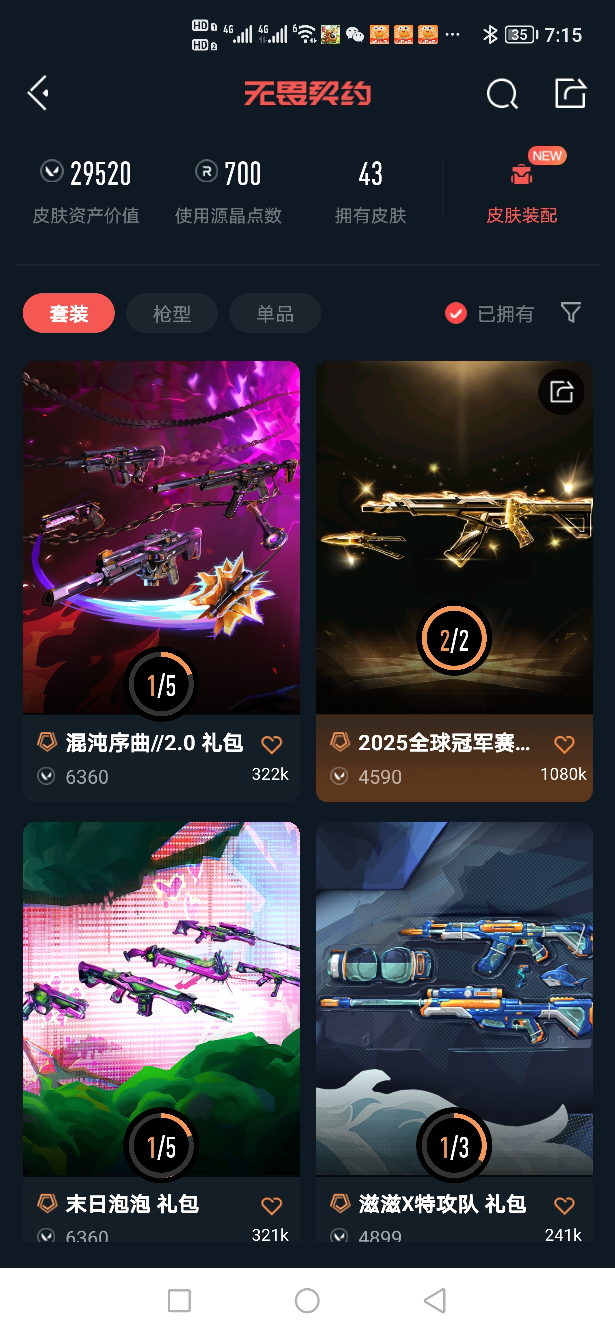 【25冠军套】【游戏等级】lv125 【段位】 黄金i 【r点】700 【皮肤总价值】29520 【英雄数量】28 【皮肤数量】43 【挂饰数量】48 【卡面数量】62 【喷漆数量】53 【近战武器】近战武器-碎心裂刃 近战武器-嘟昂嘟昂超弹力水球拳套 近战武器-星际猎兵短剑 近战武器-2025全球冠军赛蝴蝶刀 近战武器-影钩 【鬼魅】鬼魅-幻心猎手 鬼魅-天界神兵 鬼魅-瑰梦艺语 鬼魅-诡秘