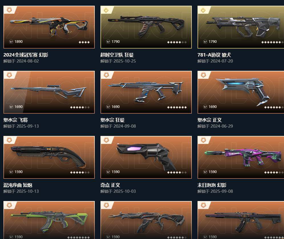 【1233】欢 248006【套装】:2025全球冠军赛套装,2024全球冠军赛套装,掠影套装 【英雄】:幻棱,炼狱,维斯,暮蝶,钛狐,壹决,铁臂,捷风,雷兹,幽影,不死鸟,贤者,猎枭,蝰蛇,零,芮娜,奇乐,尚勃勒,霓虹,斯凯,夜露,星礈,k/o,海神,盖可,黑梦,钢锁 【近战 武器】:近战武器-2025全球冠军赛 蝴蝶刀,近战武器-2024全球冠军赛 战刀,近战武器-rgx 11z pro//3.0 爪刀,近战武器-黑波之刃,近战武器-艾沃莉的魔法棒,近战武器-鬼丸国纲,近战武器-超能偶像 应援棒,近战武器-超限闪存 匕首,近战武器-荒土机兵 热能刀,近战武器-魄月玄刃,近战武器-影刃,近战武器-神圣领域 战刀 【狂徒】:狂徒-超时空卫队,狂徒-2025全球冠军赛,狂徒-洪荒怒焰,狂徒-混沌序曲,狂徒-机动狂飙,狂徒-塑水宗,狂徒-rgx 11z pro,狂徒-掠影,狂徒-盖世英雄,狂徒-盖亚的复仇,狂徒-日冕雄师,狂徒-超能偶像,狂徒-荒土机兵 【幻影】:幻影-2024全球冠军赛,幻影-末日泡泡,幻影-侦察力量,幻影-超限闪存,幻影-神圣领域,幻影-聚合之力,幻影-纳米打击 【戍卫】:戍卫-掠影,戍卫-海洋之星,戍卫-超能偶像,戍卫-浮光跃金,戍卫-逆冲蛮牛,戍卫-月球哨兵 【獠犬】:獠犬-781-a协议,獠犬-神圣领域,獠犬-采蜜小蜂队,獠犬-模拟赫兹,獠犬-逆冲蛮牛 【冥驹】:冥驹-堕天遗武,冥驹-掠影,冥驹-荒土机兵,冥驹-模拟赫兹,冥驹-星云暗涌 【飞将】:飞将-塑水宗,飞将-聚合之力 【莽侠】:莽侠-超限闪存,莽侠-月球哨兵 【战神】:战神-神圣领域,战神-采蜜小蜂队,战神-浮光跃金 【奥丁】:奥丁-纳米打击 【判官】:判官-超能偶像,判官-采蜜小蜂队,判官-纳米打击x 【雄鹿】:雄鹿-模拟赫兹,雄鹿-逆冲蛮牛,雄鹿-月球哨兵 【骇灵】:骇灵-荒土机兵,骇灵-浮光跃金,骇灵-星云暗涌 【蜂刺】:蜂刺-超限闪存,蜂刺-聚合之力,蜂刺-星云暗涌 【标配】:标配-堕天遗武,标配-超能偶像,标配-荒土机兵,标配-浮光跃金 【正义】:正义-奇点,正义-塑水宗,正义-掠影,正义-超限闪存,正义-复古浪潮,正义-纳米打击,正义-月球哨兵 【鬼魅】:鬼魅-天界神兵,鬼魅-诡秘蛇影,鬼魅-采蜜小蜂队,鬼魅-模拟赫兹,鬼魅-数码咒术,鬼魅-星云暗涌 【狂怒】:狂怒-神圣领域,狂怒-聚合之力,狂怒-逆冲蛮牛 【短炮】:短炮-混沌序曲,短炮-好搭档 【卡面】:终章:激斗汉堡 卡面,进入射程 卡面,分崩离析 卡面,纳米打击 卡面,抑制技术 卡面,激斗汉堡 卡面,瓦娃脸雪糕 p2 卡面,从黄昏到黎明 卡面,荒土机兵 卡面,银弹猎手 卡面,逆冲蛮牛 卡面,《双城之战》拥抱 卡面,精灵大战 卡面,欢迎来到底城 卡面,南瓜盛典 卡面,唱片的故事 卡面,钢弓与箭弦 卡面,排除故障 卡面,战术桌游 卡面,悠享食光 卡面,修车达人 卡面,模拟赫兹 卡面,浮光跃金 卡面,超限闪存 卡面,维斯工牌 卡面,正义的化身 卡面,铁之华 卡面,2024全球冠军赛 卡面,失而复得 卡面,时间到 卡面,最高舞台 卡面,复活专家 卡面,归乡 // 蝰蛇 卡面,超能偶像 卡面,生意人麦宝 卡面,声感陷阱设计图 卡面,钢锁工牌 卡面,战术小伙伴的夏日 卡面,采蜜小蜂队 卡面,聚合之力 卡面,梦幻奶茶 卡面,源能反应 卡面,零点嗅探设计图 卡面,表象之下 卡面,沙雕爆能器 卡面,无畏契约go!第一卷:芮娜 卡面,清除名单 卡面,无畏契约go!第一卷:零 卡面,龍记 卡面,《双城之战》金克丝 卡面,完美调谐 卡面 ,暗呛 卡面,夯实根基 卡面,热烈欢迎 卡面,铁臂设计图 卡面,代号红色 卡面,冰淇淋店 卡面,新兵报到 卡面,友军火力 卡面,v契约 卡面,无畏契约 卡面 【喷漆】:小小心意 喷漆,战“素”兔 喷漆,宇宙的指引 喷漆,请求重启 喷漆,逆冲蛮牛 喷漆,纳米打击 喷漆,鼻尖上的蝴蝶 喷漆,简笔画黯兽 喷漆,独守蝰腹 喷漆,他们将落荒而逃 喷漆,通缉:战术企鹅 喷漆,荒土机兵 喷漆,别挡我吃球! 喷漆,嗨宝南瓜灯 喷漆,嘭! 喷漆,都算到了 喷漆,控场勿近 喷漆,皮蛋呼呼 喷漆,像素星礈 喷漆,图谋不轨的零 喷漆,小丑猫 喷漆,模拟赫兹 喷漆,高丽风情小熊 喷漆,蹲到一个 喷漆,全力集中 喷漆,超限闪存 喷漆,rua一下 喷漆,熊抱 喷漆,高丽风情小虎 喷漆,记在小本本 喷漆,防弹企鹅 喷漆,高丽风情小蛙 喷漆,2024全球冠军赛 喷漆,又被闪了 喷漆,终极羞辱 喷漆,超级粉丝 喷漆,黯兽卖萌 喷漆,捷风差距 喷漆,惊声尖叫 喷漆,五人成星 喷漆,超能偶像 喷漆,放我出去 喷漆,掩护我 喷漆,大佬发呛 喷漆,边缘试探 喷漆,拼一呛 喷漆,聚合之力 喷漆,采蜜小蜂队 喷漆,梦幻小队 喷漆,五个全都齐了 喷漆,我的刀呢? 喷漆,uwu 喷漆,新潮流 喷漆,双击点赞 喷漆,买装还是存钱 喷漆,醒狮贺春 喷漆,无畏契约go!第一卷:芮娜 喷漆,红鳞 喷漆,无畏契约go!第一卷:零 喷漆,无畏契约go!第一卷:捷风 喷漆,无畏契约go!第一卷:贤者 喷漆,暴走萝莉 喷漆,松叶 喷漆,无畏契约go!第一卷:奇乐 喷漆,旅行小熊 喷漆,蕊形灯 喷漆,老铁困了 喷漆,口袋贤者 喷漆,胜利属于无畏契约 喷漆,glhf 喷漆,无畏契约 喷漆 【挂饰】:终章:猫猫木乃伊 挂饰,荒土机兵 挂饰,悠闲鸡块 挂饰,猫猫木乃伊 挂饰,水壶 挂饰,纳米打击 挂饰,逆冲蛮牛 挂饰,可爱糖糖 挂饰,伞绳 挂饰,《双城之战》小蛋糕 挂饰,第九季//第三幕 纪念币 挂饰,拳击战术熊 挂饰,工具腰带 挂饰,无畏契约go!第一卷 芮娜 挂饰,无畏契约go!第一卷 零 挂饰,暗藏猫腻 挂饰,高丽风情 挂饰,鱼骨头 挂饰,熔岩灯 挂饰,超限闪存 挂饰,迷你k/o 挂饰,模拟赫兹 挂饰,第九季//第二幕 纪念币 挂饰,终章:这瓜保熟 挂饰,2