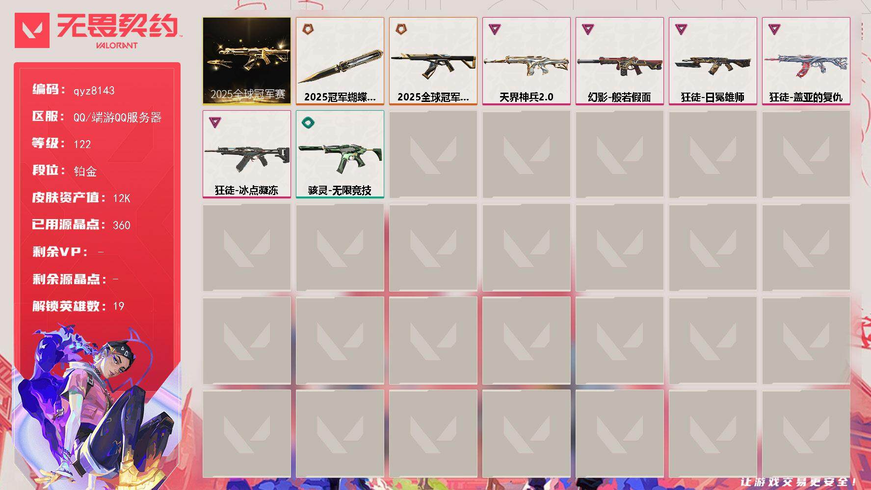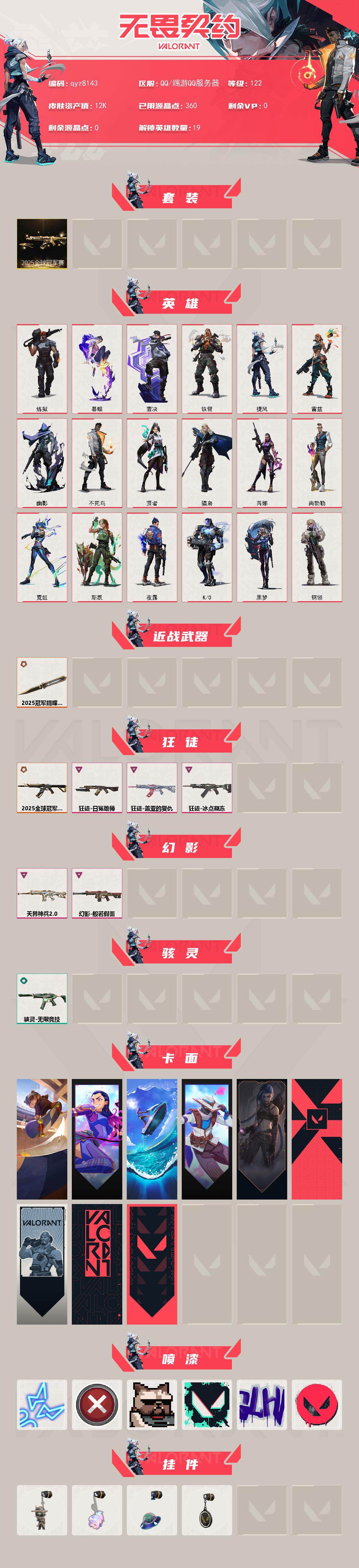 25套装-盖亚-狮子ak-天界般若m4-qyz8143-套装:-2025全球冠军赛-近战武器皮肤:-2025全球冠军赛-蝴蝶刀-步呛皮肤:-狂徒-盖亚的复仇狂徒-冰点凝冻幻影-天界神兵20幻影-般若假面狂徒-日冕雄师2025全球冠军赛-狂徒-亮点:-【qyz8143】【套装】:2025全球冠军赛套装【英雄】:炼狱,暮蝶,壹决,铁臂,捷风,雷兹,幽影,不死鸟,贤者,猎枭,芮娜,尚勃勒,霓虹,斯凯,夜露,k/o,黑梦,钢锁【近战-武器】:近战武器-2025全球冠军赛-蝴蝶刀【狂徒】:狂徒-2025全球冠军赛,狂徒-冰点凝冻,狂徒-盖亚的复仇,狂徒-日冕雄师【幻影】:幻影-般若假面,幻影-天界神兵//20【骇灵】:骇灵-无限竞技【卡面】:clutch-卡面,无畏契约go!第一卷:芮娜-卡面,复古浪潮-卡面,无畏契约go!第一卷:零-卡面,《双城之战》金克丝-卡面,代号红色-卡面,新兵报到-卡面,v契约-卡面,无畏契约-卡面【喷漆】:霓光四射-喷漆,买装还是存钱-喷漆,关门放狗-喷漆,胜利属于无畏契约-喷漆,glhf-喷漆,无畏契约-喷漆【挂饰】:无畏契约go!第一卷-零-挂饰,超能偶像-挂饰,天外飞客-挂饰,无畏契约-纪念币-挂饰