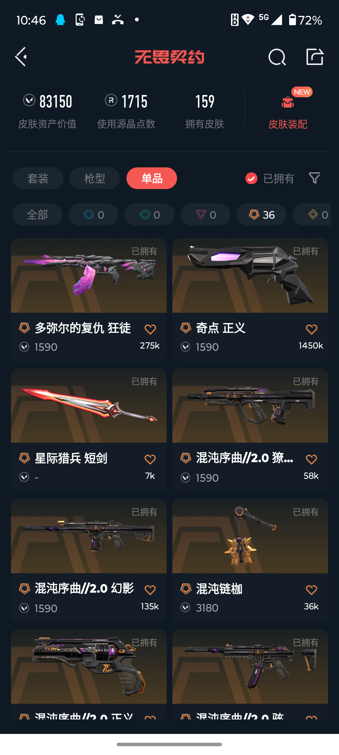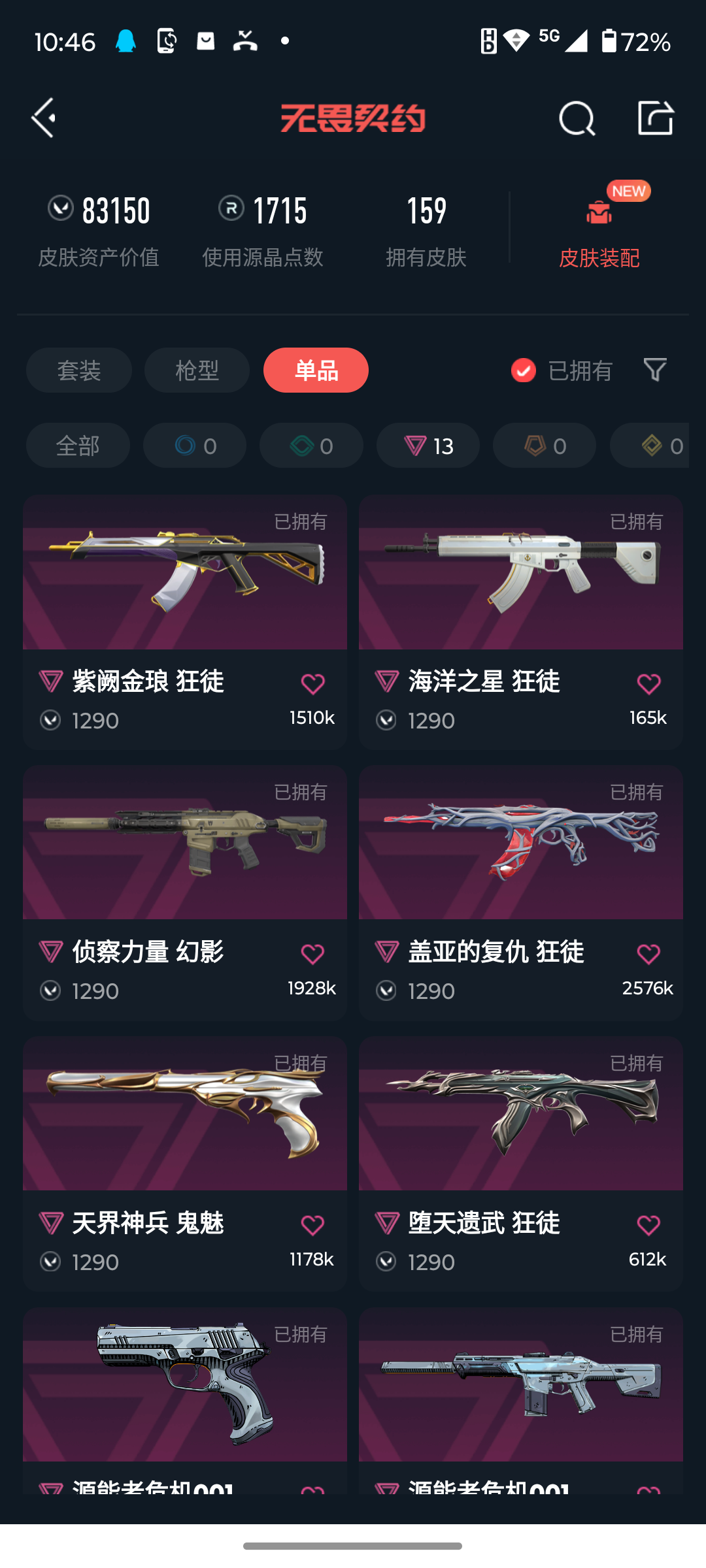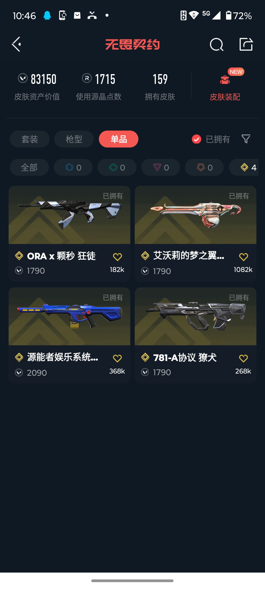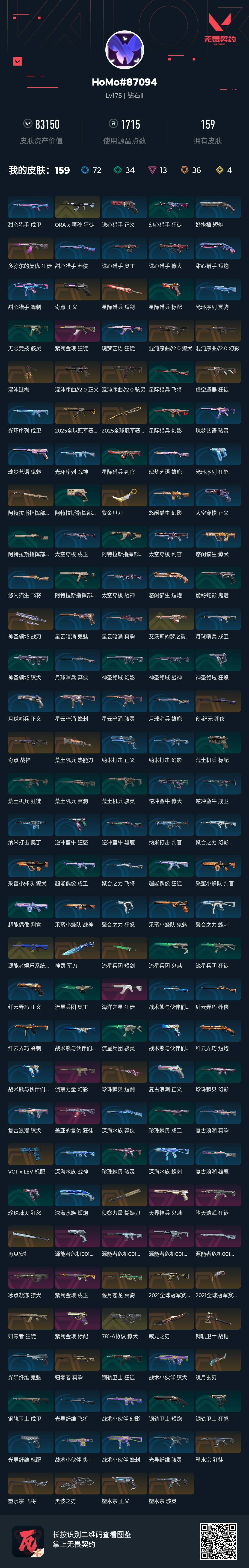 [14723824]q192183 (2021全球冠军赛套装/塑水宗套装/2025全球冠军赛套装/源能者危机001套装)无畏契约/等级175/段位钻石2/英雄28/皮肤159/资产83150/已使用r点1715/剩余r点50/2021全球冠军赛-狂徒2021全球冠军赛-爪刀,塑水宗-骇灵塑水宗-狂徒塑水宗-飞将塑水宗-正义黑波之刃,2025全球冠军赛-狂徒2025全球冠军赛-蝴蝶刀,源能者危机001-幻影源能者危机001-骇灵源能者危机001-雄鹿源能者危机001-标配再见安打,星际猎兵-短剑,阿特拉斯指挥部-甩棍,神圣领域-战刀,荒土机兵-热能刀,神罚-军刀,流星兵团-短剑,珍珠棘贝-短剑,钢轨卫士-战锤,魄月玄刃,紫金爪刀,侦察力量-蝴蝶刀,威龙之刃,多弥尔的复仇-狂徒,虚空遗器-狂徒,归零者-狂徒,a-x-颗秒-狂徒,781-a协议-獠犬,源能者娱乐系统-幻影,堕天遗武-狂徒,紫阙金琅-狂徒,紫阙金琅-戍卫,盖亚的复仇-狂徒,侦察力量-幻影,冰点凝冻-獠犬,海洋之星-狂徒,创·纪元-莽侠,归零者-冥驹,偃月苍龙-冥驹,奇点-战神,艾沃莉的梦之翼-奥丁,vct-x-lev-标配,奇点-正义,天界神兵-鬼魅,紫阙金琅-标配