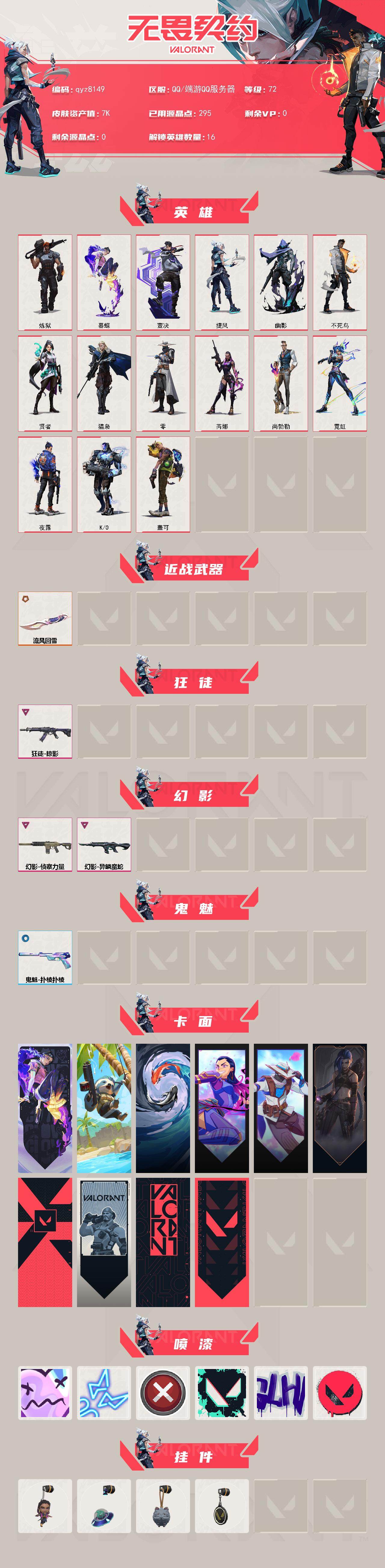 【qyz8149】侦察力量-幻影-异鳞魔蛇-幻影-掠影-狂徒-qyz8149-步呛皮肤:-幻影-侦察力量狂徒-掠影幻影-异鳞魔蛇-亮点:-【qyz8149】【英雄】:炼狱,暮蝶,壹决,捷风,幽影,不死鸟,贤者,猎枭,零,芮娜,尚勃勒,霓虹,夜露,k/o,盖可【近战-武器】:近战武器-流风回雪【狂徒】:狂徒-掠影【幻影】:幻影-侦察力量,幻影-异鳞魔蛇【鬼魅】:鬼魅-扑棱扑棱【卡面】:无畏契约:暮蝶-卡面,树懒大作战-卡面,红鳞松叶-卡面,无畏契约go!第一卷:芮娜-卡面,无畏契约go!第一卷:零-卡面,《双城之战》金克丝-卡面,代号红色-卡面,新兵报到-卡面,v契约-卡面,无畏契约-卡面【喷漆】:伤心心-喷漆,霓光四射-喷漆,买装还是存钱-喷漆,胜利属于无畏契约-喷漆,glhf-喷漆,无畏契约-喷漆【挂饰】:无畏契约go!第一卷-芮娜-挂饰,天外飞客-挂饰,《双城之战》魄罗-挂饰,无畏契约-纪念币-挂饰