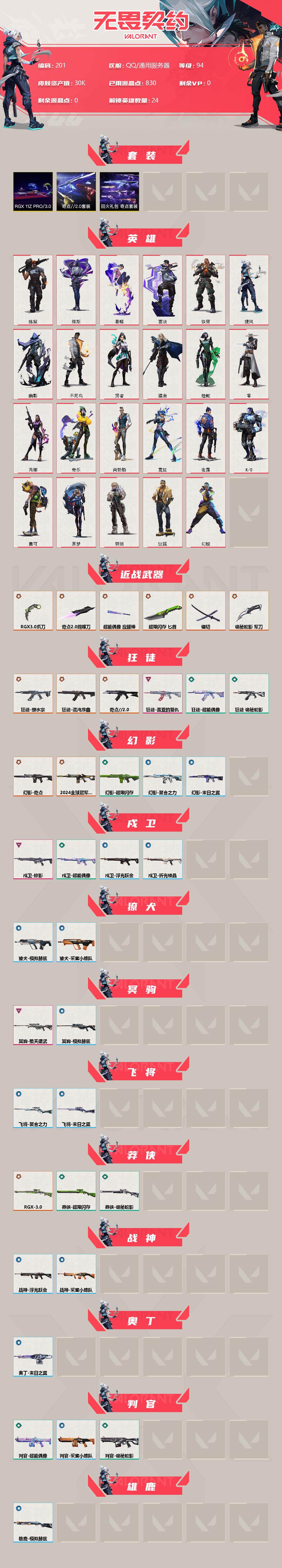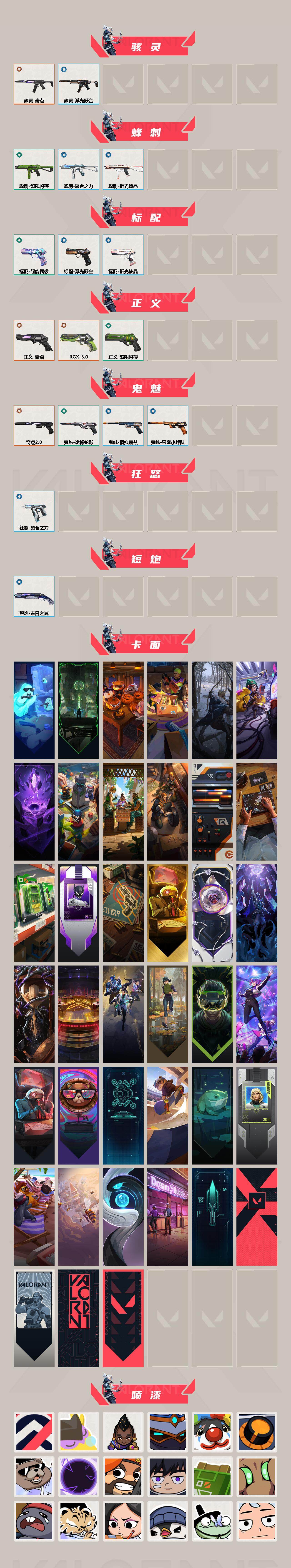 【201】【套装】:rgx 11z pro//3.0套装,奇点//2.0套装,回火礼包:奇点套装 【英雄】:幻棱,炼狱,维斯,暮蝶,钛狐,壹决,铁臂,捷风,幽影,不死鸟,贤者,猎枭,蝰蛇,零,芮娜,奇乐,尚勃勒,霓虹,夜露,k/o,盖可,黑梦,钢锁 【近战 武器】:近战武器-奇点//2.0 蝴蝶刀,近战武器-rgx 11z pro//3.0 爪刀,近战武器-镭切,近战武器-超能偶像 应援棒,近战武器-超限闪存 匕首,近战武器-诡秘蛇影 军刀 【狂徒】:狂徒-混沌序曲,狂徒-奇点//2.0,狂徒-塑水宗,狂徒-盖亚的复仇,狂徒-超能偶像,狂徒-诡秘蛇影 【幻影】:幻影-2024全球冠军赛,幻影-奇点,幻影-超限闪存,幻影-聚合之力,幻影-末日之翼 【戍卫】:戍卫-掠影,戍卫-超能偶像,戍卫-浮光跃金,戍卫-折光棱晶 【獠犬】:獠犬-采蜜小蜂队,獠犬-模拟赫兹 【冥驹】:冥驹-堕天遗武,冥驹-模拟赫兹 【飞将】:飞将-聚合之力,飞将-末日之翼 【莽侠】:莽侠-rgx 11z pro//3.0,莽侠-超限闪存,莽侠-诡秘蛇影 【战神】:战神-采蜜小蜂队,战神-浮光跃金 【奥丁】:奥丁-末日之翼 【判官】:判官-超能偶像,判官-诡秘蛇影,判官-采蜜小蜂队 【雄鹿】:雄鹿-模拟赫兹 【骇灵】:骇灵-奇点,骇灵-浮光跃金 【蜂刺】:蜂刺-超限闪存,蜂刺-聚合之力,蜂刺-折光棱晶 【标配】:标配-超能偶像,标配-浮光跃金,标配-折光棱晶 【正义】:正义-rgx 11z pro//3.0,正义-奇点,正义-超限闪存 【鬼魅】:鬼魅-奇点//2.0,鬼魅-诡秘蛇影,鬼魅-采蜜小蜂队,鬼魅-模拟赫兹 【狂怒】:狂怒-聚合之力 【短炮】:短炮-末日之翼 【卡面】:精灵大战 卡面,欢迎来到底城 卡面,南瓜盛典 卡面,唱片的故事 卡面,钢弓与箭弦 卡面,排除故障 卡面,奇点//2.0 卡面,战术桌游 卡面,悠享食光 卡面,修车达人 卡面,模拟赫兹 卡面,浮光跃金 卡面,超限闪存 卡面,维斯工牌 卡面,正义的化身 卡面,终章:生意人麦宝 卡面,铁之华 卡面,失而复得 卡面,时间到 卡面,最高舞台 卡面,复活专家 卡面,归乡 // 蝰蛇 卡面,rgx 11z pro//3.0 卡面,超能偶像 卡面,生意人麦宝 卡面,音熊登场 卡面,声感陷阱设计图 卡面,clutch 卡面,霓帧牛蛙 卡面,钢锁工牌 卡面,战术小伙伴的夏日 卡面,采蜜小蜂队 卡面,聚合之力 卡面,梦幻奶茶 卡面,零点嗅探设计图 卡面,代号红色 卡面,新兵报到 卡面,v契约 卡面,无畏契约 卡面 【喷漆】:控场勿近 喷漆,皮蛋呼呼 喷漆,像素星礈 喷漆,图谋不轨的零 喷漆,小丑猫 喷漆,模拟赫兹 喷漆,高丽风情小熊 喷漆,奇点//2.0 喷漆,蹲到一个 喷漆,全力集中 喷漆,超限闪存 喷漆,rua一下 喷漆,熊抱 喷漆,高丽风情小虎 喷漆,记在小本本 喷漆,防弹企鹅 喷漆,高丽风情小蛙 喷漆,又被闪了 喷漆,终极羞辱 喷漆,超级粉丝 喷漆,黯兽卖萌 喷漆,捷风差距 喷漆,惊声尖叫 喷漆,2021冠军巡回赛花火 喷漆,五人成星 喷漆,超能偶像 喷漆,rgx 11z pro//3.0 喷漆,放我出去 喷漆,战术熊的巴拉莱卡琴 喷漆,掩护我 喷漆,大佬发呛 喷漆,边缘试探 喷漆,拼一呛 喷漆,聚合之力 喷漆,采蜜小蜂队 喷漆,梦幻小队 喷漆,五个全都齐了 喷漆,胜利属于无畏契约 喷漆,glhf 喷漆,无畏契约 喷漆 【挂饰】:伞绳 挂饰,第九季//第三幕 纪念币 挂饰,拳击战术熊 挂饰,工具腰带 挂饰,无畏契约go!第一卷 芮娜 挂饰,无畏契约go!第一卷 零 挂饰,暗藏猫腻 挂饰,高丽风情 挂饰,奇点//2.0 挂饰,熔岩灯 挂饰,超限闪存 挂饰,迷你k/o 挂饰,模拟赫兹 挂饰,第九季//第二幕 纪念币 挂饰,终章:这瓜保熟 挂饰,炼狱雪糕 挂饰,糖葫芦 挂饰,袖珍捷风 挂饰,冲上云霄 挂饰,超能偶像 挂饰,rgx 11z pro//3.0 挂饰,丢麦 挂饰,迷你浓缩 挂饰,尤克里里 挂饰,这瓜保熟 挂饰,采蜜小蜂队 挂饰,第九季//第一幕 纪念币 挂饰,聚合之力 挂饰,无畏契约 纪念币 挂饰