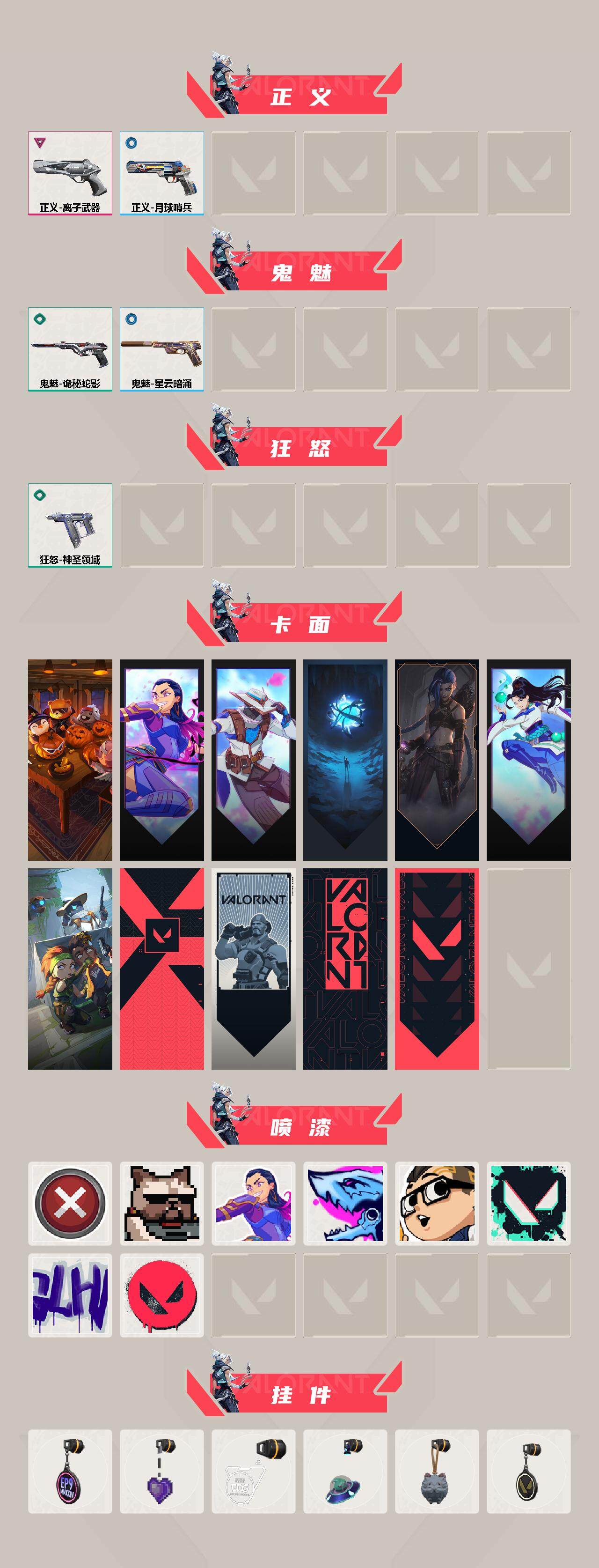 [14739677]【英雄】:幻棱,炼狱,维斯,暮蝶,钛狐,壹决,铁臂,捷风,雷兹,幽影,不死鸟,贤者,猎枭,零,芮娜,奇乐,尚勃勒,霓虹,斯凯,夜露,星礈,k/o,盖可,黑梦,钢锁 【近战 武器】:近战武器-侦察力量 蝴蝶刀,近战武器-神圣领域 战刀 【狂徒】:狂徒-洪荒怒焰,狂徒-盖亚的复仇 【幻影】:幻影-盖亚的复仇//2.0,幻影-神圣领域 【戍卫】:戍卫-月球哨兵 【獠犬】:獠犬-神圣领域 【冥驹】:冥驹-千灵华绽,冥驹-星云暗涌 【莽侠】:莽侠-月球哨兵,莽侠-神罚//2.0 【战神】:战神-奇点,战神-神圣领域 【雄鹿】:雄鹿-月球哨兵 【骇灵】:骇灵-无限竞技,骇灵-星云暗涌 【蜂刺】:蜂刺-星云暗涌 【vct手呛】:标配-vct25 x edg 【正义】:正义-离子武器,正义-月球哨兵 【鬼魅】:鬼魅-诡秘蛇影,鬼魅-星云暗涌 【狂怒】:狂怒-神圣领域 【卡面】:南瓜盛典 卡面,无畏契约go!第一卷:芮娜 卡面,无畏契约go!第一卷:零 卡面,无垠星环 卡面,《双城之战》金克丝 卡面,无畏契约go!第一卷:贤者 卡面,别冒尖 卡面,代号红色 卡面,新兵报到 卡面,v契约 卡面,无畏契约 卡面 【喷漆】:买装还是存钱 喷漆,关门放狗 喷漆,无畏契约go!第一卷:芮娜 喷漆,暴走萝莉 喷漆,省钱大师 喷漆 ,胜利属于无畏契约 喷漆,glhf 喷漆,无畏契约 喷漆 【挂饰】:第九季//第三幕 纪念币 挂饰,薰衣草之心 挂饰,vct x edg 挂饰,天外飞客 挂饰,《双城之战》魄罗 挂饰,无畏契约 纪念币 挂饰