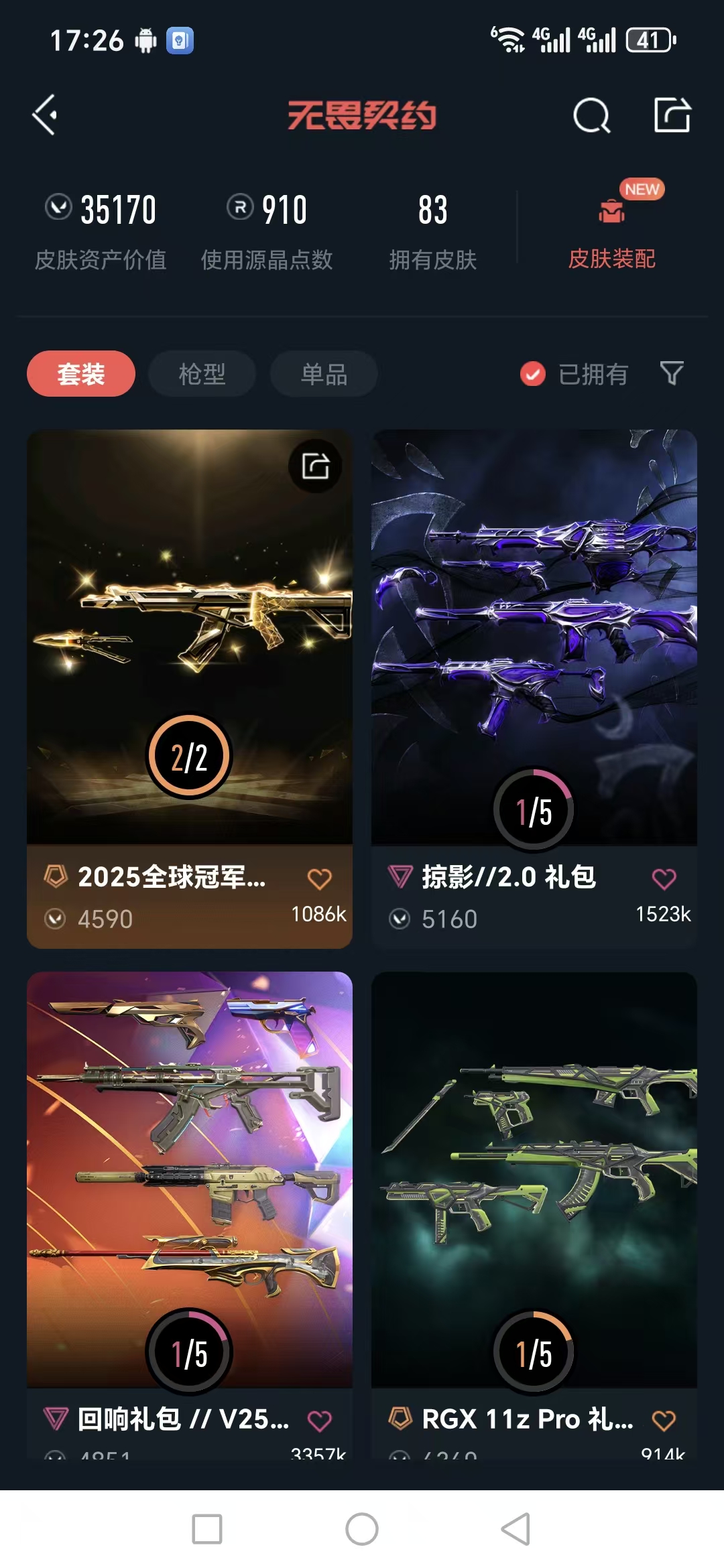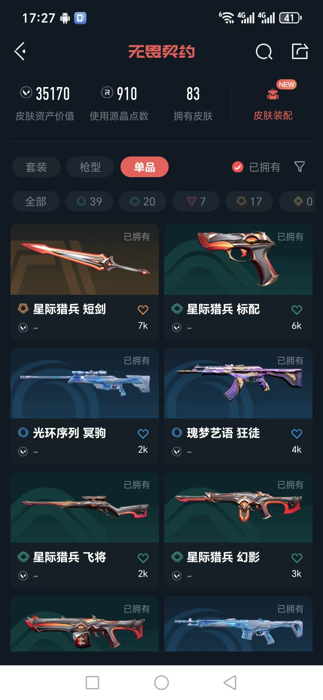 【价值35170 25冠军套 双生獠牙 剥皮小刀 影钩】【游戏等级】lv174 【段位】 黄金ii 【r点】910 【皮肤总价值】35170 【英雄数量】28 【皮肤数量】83 【挂饰数量】70 【卡面数量】101 【喷漆数量】99 【近战武器】近战武器-星际猎兵短剑 近战武器-2025全球冠军赛蝴蝶刀 近战武器-影钩 近战武器-阿特拉斯指挥部甩棍 近战武器-日耀风暴遗器 近战武器-剥皮小刀