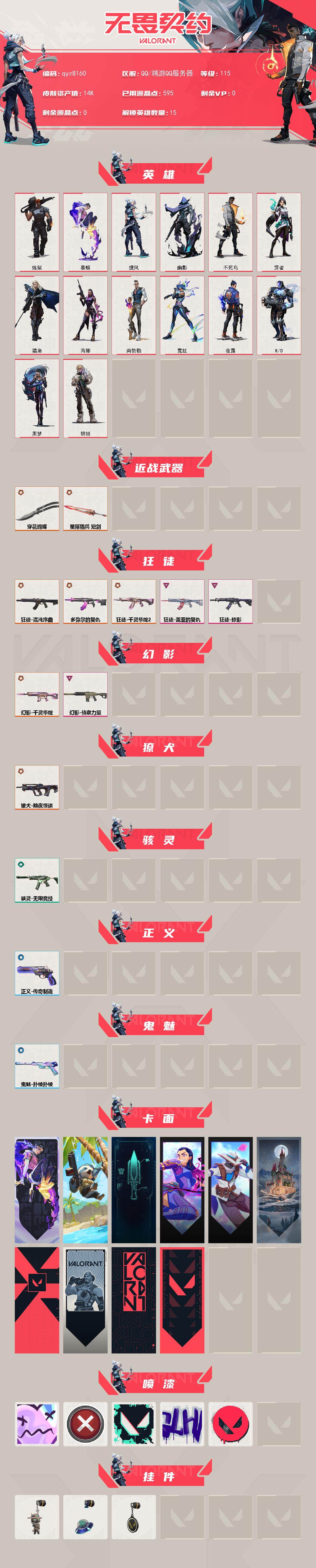 莲华狂徒幻影-混沌盖亚掠影石头狂徒-蝴蝶刀侦查力量幻影-qyz8160-近战武器皮肤:-穿花蝴蝶-步呛皮肤:-狂徒-盖亚的复仇幻影-侦察力量幻影-千灵华绽狂徒-混沌序曲獠犬-黯夜怪谈狂徒-掠影狂徒-千灵华绽//20-亮点:-【qyz8160】【英雄】:炼狱,暮蝶,捷风,幽影,不死鸟,贤者,猎枭,芮娜,尚勃勒,霓虹,夜露,k/o,黑梦,钢锁【近战-武器】:近战武器-穿花蝴蝶,近战武器-星际猎兵-短剑【狂徒】:狂徒-混沌序曲,狂徒-多弥尔的复仇,狂徒-千灵华绽//20,狂徒-掠影,狂徒-盖亚的复仇【幻影】:幻影-千灵华绽,幻影-侦察力量【獠犬】:獠犬-黯夜怪谈【骇灵】:骇灵-无限竞技【正义】:正义-传奇制造【鬼魅】:鬼魅-扑棱扑棱【卡面】:无畏契约:暮蝶-卡面,树懒大作战-卡面,零点嗅探设计图-卡面,无畏契约go!第一卷:芮娜-卡面,无畏契约go!第一卷:零-卡面,胡桃狂想-卡面,代号红色-卡面,新兵报到-卡面,v契约-卡面,无畏契约-卡面【喷漆】:伤心心-喷漆,买装还是存钱-喷漆,胜利属于无畏契约-喷漆,glhf-喷漆,无畏契约-喷漆【挂饰】:无畏契约go!第一卷-零-挂饰,天外飞客-挂饰,无畏契约-纪念币-挂饰