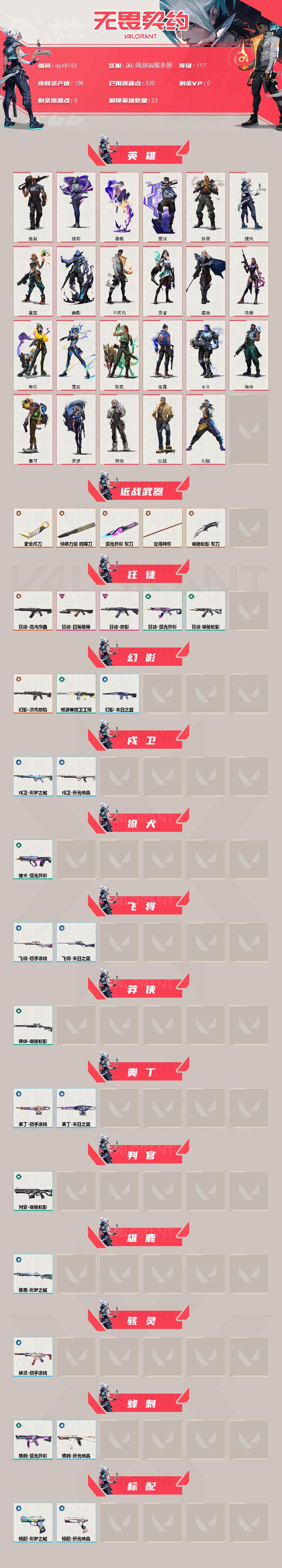 紫金爪刀-侦查蝴蝶刀-定海神针-混沌掠影狂徒-流脓幻影-qyz8163-近战武器皮肤:-军刀-弧光异彩蝴蝶刀-侦察力量定海神珍紫金爪刀诡秘蛇影-步呛皮肤:-幻影-洪荒怒焰狂徒-日冕雄师狂徒-混沌序曲狂徒-掠影-佩呛皮肤:-正义-西部未来-亮点:-【qyz8163】【英雄】:幻棱,炼狱,维斯,暮蝶,钛狐,壹决,铁臂,捷风,雷兹,幽影,不死鸟,贤者,猎枭,芮娜,奇乐,霓虹,斯凯,夜露,k/o,海神,盖可,黑梦,钢锁【近战-武器】:近战武器-侦察力量-蝴蝶刀,近战武器-紫金爪刀,近战武器-定海神珍,近战武器-弧光异彩-军刀,近战武器-诡秘蛇影-军刀【狂徒】:狂徒-混沌序曲,狂徒-掠影,狂徒-日冕雄师,狂徒-弧光异彩,狂徒-诡秘蛇影【幻影】:幻影-洪荒怒焰,幻影-噬源兽防卫工程,幻影-末日之翼【戍卫】:戍卫-彩梦之城,戍卫-折光棱晶【獠犬】:獠犬-弧光异彩【飞将】:飞将-信手涂鸦,飞将-末日之翼【莽侠】:莽侠-诡秘蛇影【奥丁】:奥丁-信手涂鸦,奥丁-末日之翼【判官】:判官-诡秘蛇影【雄鹿】:雄鹿-彩梦之城【骇灵】:骇灵-信手涂鸦【蜂刺】:蜂刺-弧光异彩,蜂刺-折光棱晶【标配】:标配-彩梦之城,标配-折光棱晶【正义】:正义-西部未来【鬼魅】:鬼魅-流星兵团,鬼魅-诡秘蛇影,鬼魅-信手涂鸦,鬼魅-星云暗涌【短炮】:短炮-弧光异彩,短炮-末日之翼【卡面】:《双城之战》拥抱-卡面,欢迎来到底城-卡面,南瓜盛典-卡面,正义的化身-卡面,最高舞台-卡面,声感陷阱设计图-卡面,梦幻奶茶-卡面,终章:打造专属狂徒-卡面,趁热吃-卡面,源能反应-卡面,零点嗅探设计图-卡面,无畏契约go!第一卷:芮娜-卡面,清除名单-卡面,无畏契约go!第一卷:零-卡面,铁臂设计图-卡面,代号红色-卡面,冰淇淋店-卡面,新兵报到-卡面,友军火力-卡面,v契约-卡面,无畏契约-卡面,809特遣队-卡面【喷漆】:都算到了-喷漆,超级粉丝-喷漆,捷风差距-喷漆,拼一呛-喷漆,我觉得不行-喷漆,我的刀呢?-喷漆,新潮流-喷漆,买装还是存钱-喷漆,胜利属于无畏契约-喷漆,glhf-喷漆,无畏契约-喷漆【挂饰】:第九季//第三幕-纪念币-挂饰,第九季//第二幕-纪念币-挂饰,袖珍捷风-挂饰,迷你浓缩-挂饰,z世代特饮-挂饰,第九季//第一幕-纪念币-挂饰,终章:迷你机甲-挂饰,战术河童