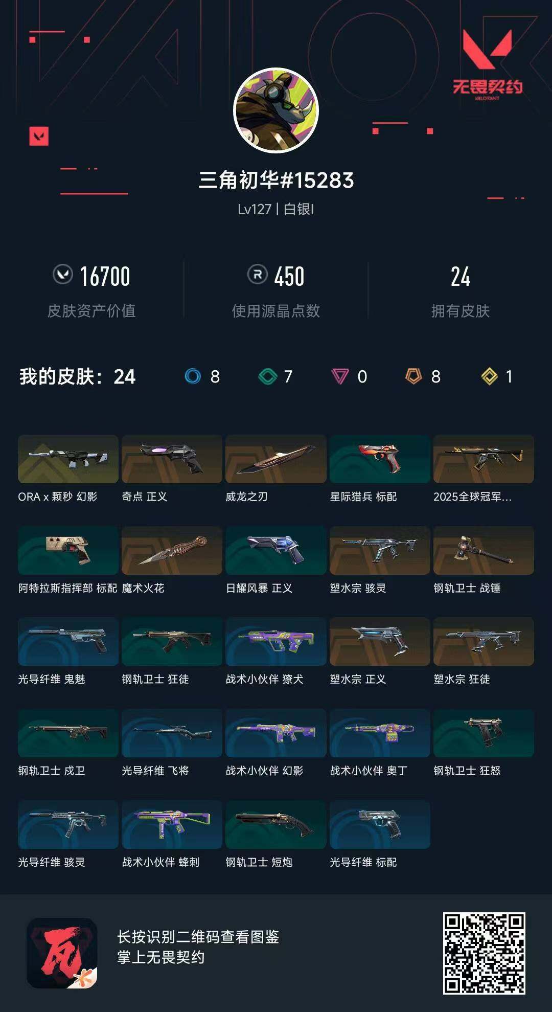 [14753356]8橙皮 1金皮 24皮肤 16700皮肤总价值 450已用源晶 w1923