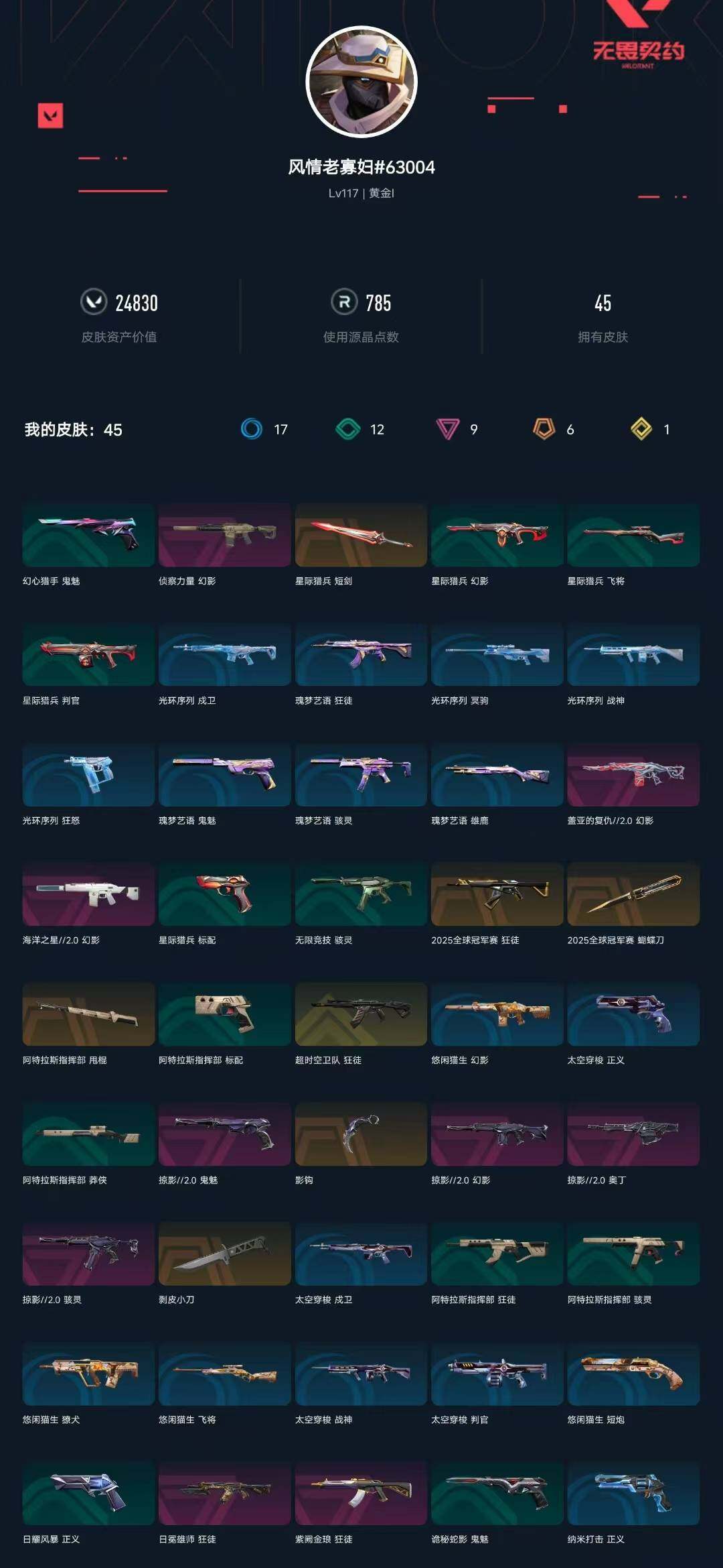 [14754652]【套装】:2025全球冠军赛套装,掠影//2.0套装 【英雄】:幻棱,炼狱,维斯,暮蝶,钛狐,壹决,铁臂,捷风,雷兹,幽影,不死鸟,贤者,猎枭,蝰蛇,零,芮娜,奇乐,尚勃勒,霓虹,斯凯,夜露,星礈,k/o,海神,盖可,黑梦,钢锁 【近战 武器】:近战武器-2025全球冠军赛 蝴蝶刀,近战武器-影钩,近战武器-剥皮小刀,近战武器-阿特拉斯指挥部 甩棍,近战武器-星际猎兵 短剑 【狂徒】:狂徒-超时空卫队,狂徒-2025全球冠军赛,狂徒-日冕雄师,狂徒-紫阙金琅 【幻影】:幻影-盖亚的复仇//2.0,幻影-侦察力量,幻影-海洋之星//2.0,幻影-掠影//2.0 【奥丁】:奥丁-掠影//2.0 【骇灵】:骇灵-掠影//2.0,骇灵-无限竞技 【正义】:正义-纳米打击 【鬼魅】:鬼魅-掠影//2.0,鬼魅-诡秘蛇影 【卡面】:终章:激斗汉堡 卡面,进入射程 卡面,《双城之战》拥抱 卡面,精灵大战 卡面,欢迎来到底城 卡面,南瓜盛典 卡面,无畏契约:暮蝶 卡面,树懒大作战 卡面,clutch 卡面,无畏契约go!第一卷:芮娜 卡面,无畏契约go!第一卷:零 卡面,《双城之战》金克丝 卡面,完美调谐 卡面 ,无畏契约go!第一卷:贤者 卡面,钢锁vs盖可 卡面,天台狂欢 卡面,代号红色 卡面,新兵报到 卡面,v契约 卡面,无畏契约 卡面 【喷漆】:嗨宝南瓜灯 喷漆,嘭! 喷漆,都算到了 喷漆,控场勿近 喷漆,伤心心 喷漆,买装还是存钱 喷漆,无畏契约go!第一卷:芮娜 喷漆,暴走萝莉 喷漆,胜利属于无畏契约 喷漆,glhf 喷漆,无畏契约 喷漆 【挂饰】:终章:猫猫木乃伊 挂饰,悠闲鸡块 挂饰,伞绳 挂饰,《双城之战》小蛋糕 挂饰,第九季//第三幕 纪念币 挂饰,z世代特饮 挂饰,天外飞客 挂饰,《双城之战》魄罗 挂饰,海豹的认可 挂饰,无畏契约 纪念币 挂饰