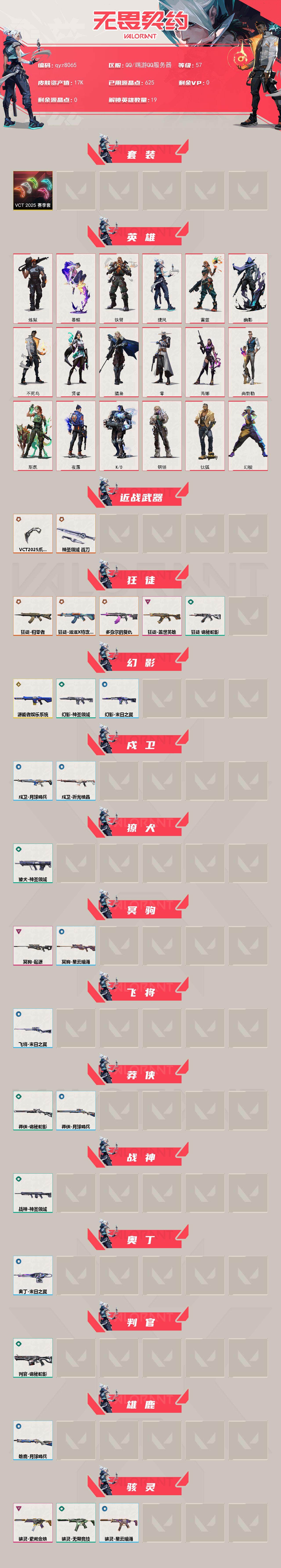 精品57级青铜25vct爪刀小号-喜欢的来吧-qyz8065-套装:-vct-2025赛季礼包-近战武器皮肤:-神圣领域-战刀vct-2025-爪刀-步呛皮肤:-狂徒-归零者狂徒-盖世英雄幻影-源能者娱乐系统狂徒-滋滋x特攻队-佩呛皮肤:-正义-千灵华绽标配-vct25xedg-狙击呛皮肤:-冥驹-起源-冲锋呛皮肤:-骇灵-紫阙金琅-亮点:-【qyz8065】精品57级青铜25vct爪刀小号-喜欢的来吧-qyz8065-套装:-vct-2025赛季礼包-近战武器皮肤:-神圣领域-战刀vct-2025-爪刀-步呛皮肤:-狂徒-归零者狂徒-盖世英雄幻影-源能者娱乐系统狂徒-滋滋x特攻队-佩呛皮肤:-正义-千灵华绽标配-vct25xedg-狙击呛皮肤:-冥驹-起源-冲锋呛皮肤:-骇灵-紫阙金琅-亮点:-【qyz8065】【套装】:vct-2025-赛季套装【英雄】:幻棱,炼狱,暮蝶,钛狐,铁臂,捷风,雷兹,幽影,不死鸟,贤者,猎枭,零,芮娜,尚勃勒,斯凯,夜露,k/o,钢锁【近战-武器】:近战武器-vct-2025-爪刀,近战武器-神圣领域-战刀【狂徒】:狂徒-归零者,狂徒-滋滋x特攻队,狂徒-多弥尔的复仇,狂徒-盖世英雄,狂徒-诡秘蛇影【幻影】:幻影-源能者娱乐系统,幻影-神圣领域,幻影-末日之翼【戍卫】:戍卫-月球哨兵,戍卫-折光棱晶【獠犬】:獠犬-神圣领域【冥驹】:冥驹-起源,冥驹-星云暗涌【飞将】:飞将-末日之翼【莽侠】:莽侠-诡秘蛇影,莽侠-月球哨兵【战神】:战神-神圣领域【奥丁】:奥丁-末日之翼【判官】:判官-诡秘蛇影【雄鹿】:雄鹿-月球哨兵【骇灵】:骇灵-紫阙金琅,骇灵-无限竞技,骇灵-星云暗涌【蜂刺】:蜂刺-星云暗涌,蜂刺-折光棱晶【标配】:标配-折光棱晶【vct手呛】:标配-vct25-x-edg【正义】:正义-千灵华绽,正义-月球哨兵【鬼魅】:鬼魅-星云暗涌【狂怒】:狂怒-神圣领域【短炮】:短炮-末日之翼【卡面】:无畏契约:暮蝶-卡面,无畏契约go!第一卷:零-卡面,代号红色-卡面,新兵报到-卡面,v契约-卡面,无畏契约-卡面【喷漆】:伤心心-喷漆,酷熊冲浪-喷漆,胜利属于无畏契约-喷漆,glhf-喷漆,无畏契约-喷漆【挂饰】:vct-x-edg-挂饰,无畏契约-纪念币-挂饰